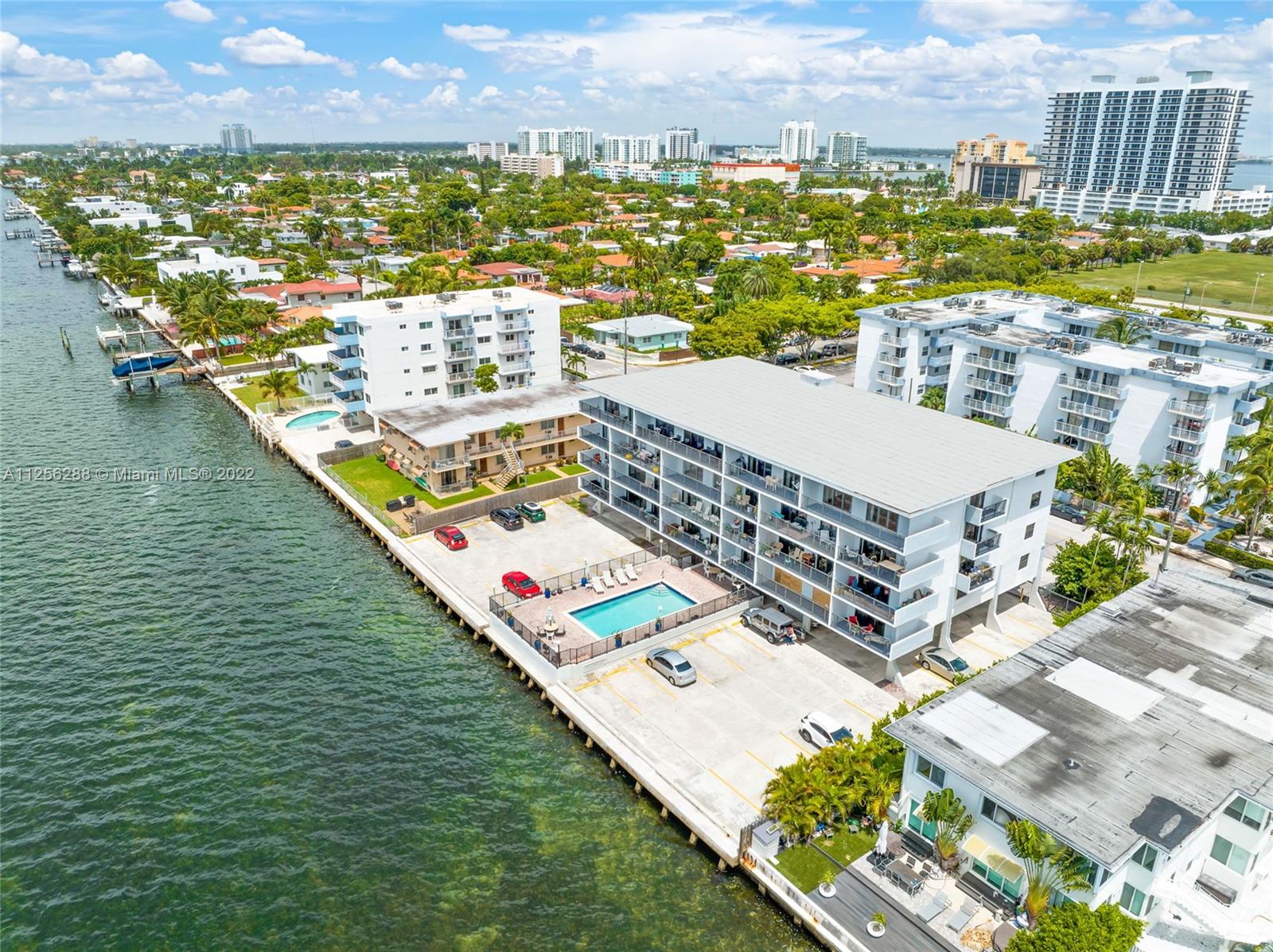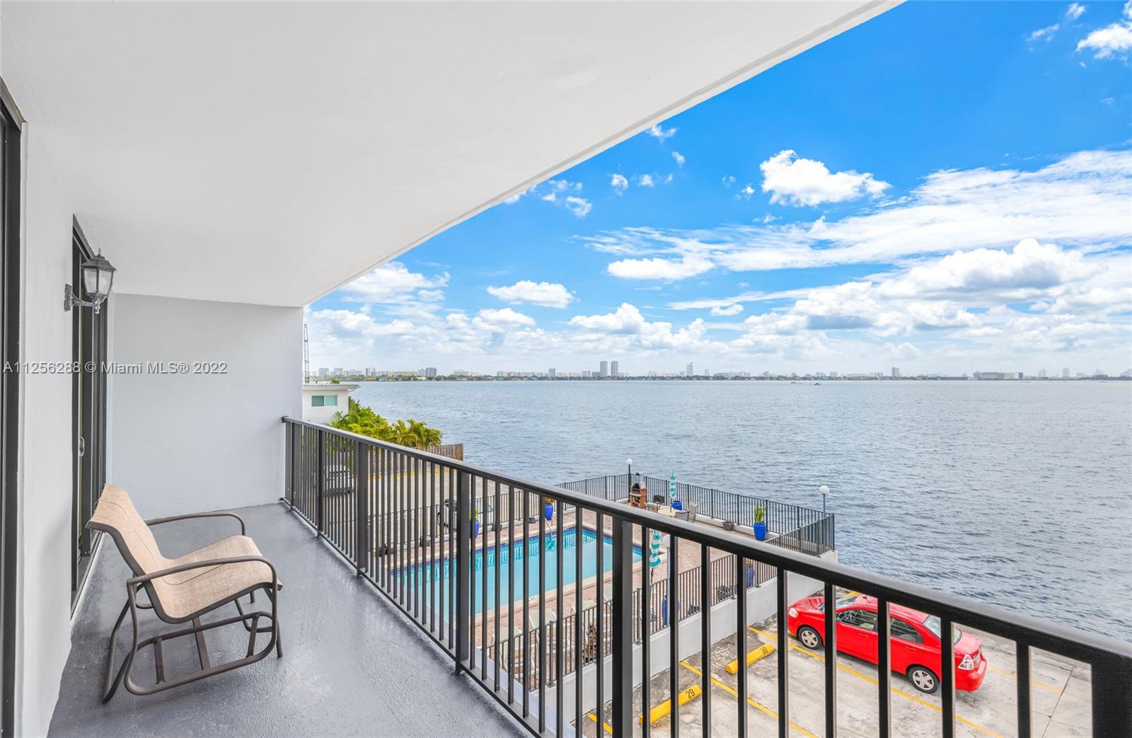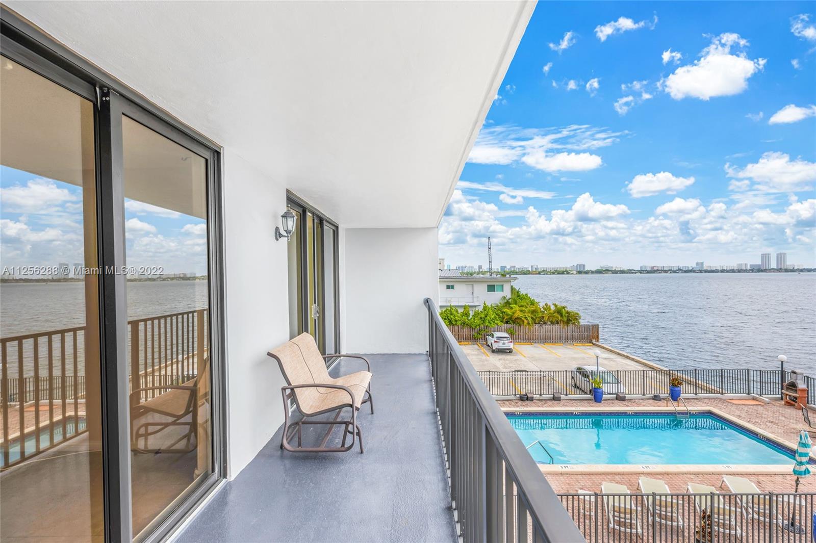 Rarely available, boutique style, waterfront condo with a MILLION DOLLAR VIEW! Unit features close to 800 sq/ft of living space with tile flooring thru out & panoramic views of Biscayne Bay & the Miami Skyline. This unit also boasts a full length balcony with impact windows to enjoy some of the best views Miami has to offer. Building offers a secured lobby entrance with a waterfront pool that makes you feel as if you are on vacation all year round. The Unit comes with one assigned/covered parking space. Located in the prestigious city of North Bay Village with close proximity to the Beaches. This is an opportunity of a lifetime to own a piece of paradise. PLEASE NOTE: No Renting allowed the 1st year of ownership.