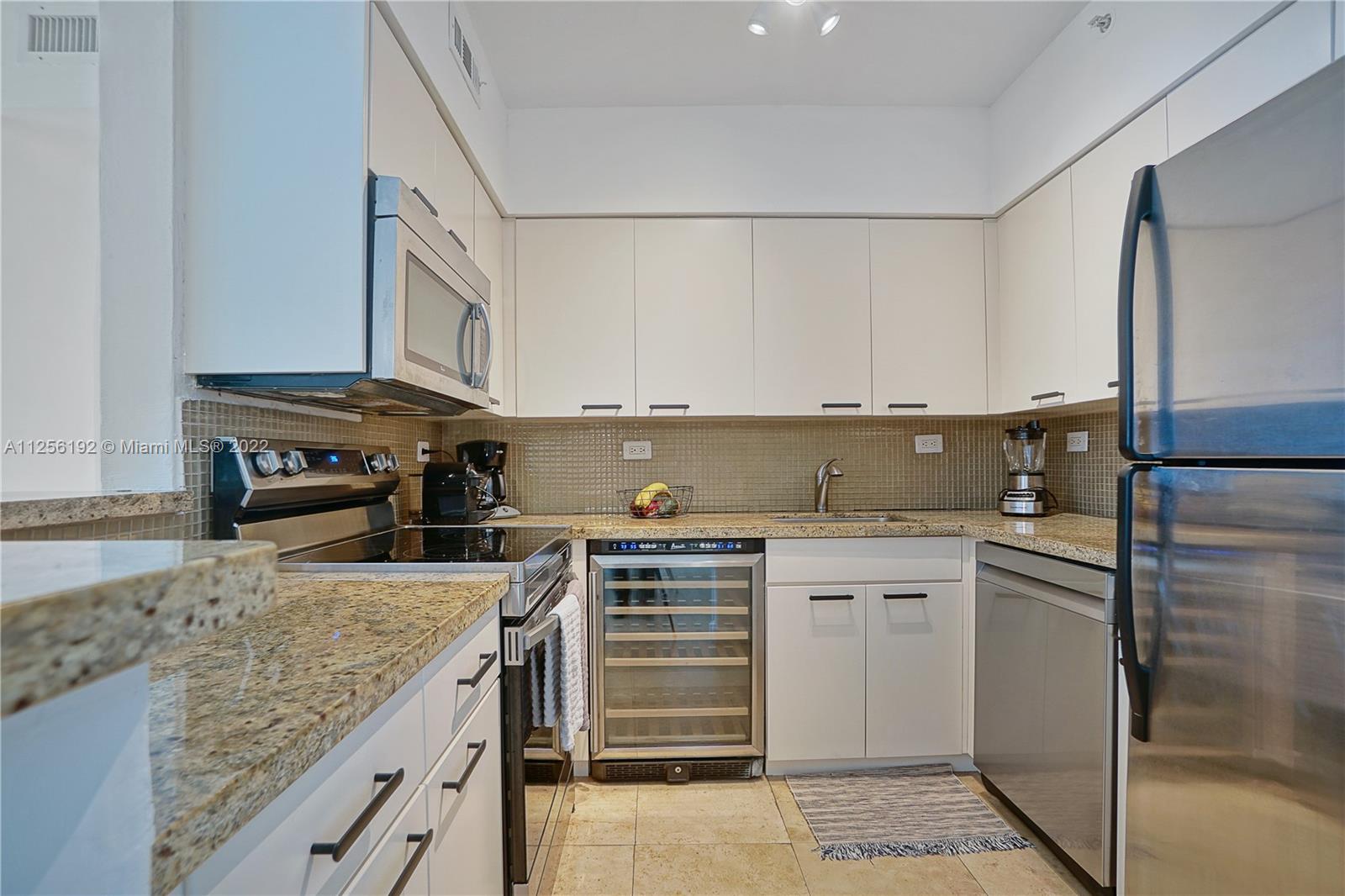 Resort Style Building with best views and amenities. This Condominium was remodeled in 2021, has a Balcony. Enjoy water views and Miami skyline views at nights. The kitchen has all stainless steel appliances, wine refrigerator and new stove and dishwasher. Terrazzo flooring through out the living area and wood imitation laminate in the bedroom. Huge bedroom with a wide open windows for lots of natural light. LOCATION!! Building by Miami Bay facing the beautiful Water and Miami View. Close distance to Lincoln Road & walk distance the the white Miami Beach Beaches. Amenities include 2 infinity pools, great jacuzzi, world-class fitness center. Yoga, spinning, boot camp classes, basketball, day spa/salon, restaurant with full pool lounge service, on-site dry cleaners. Invest, live, enjoy!
