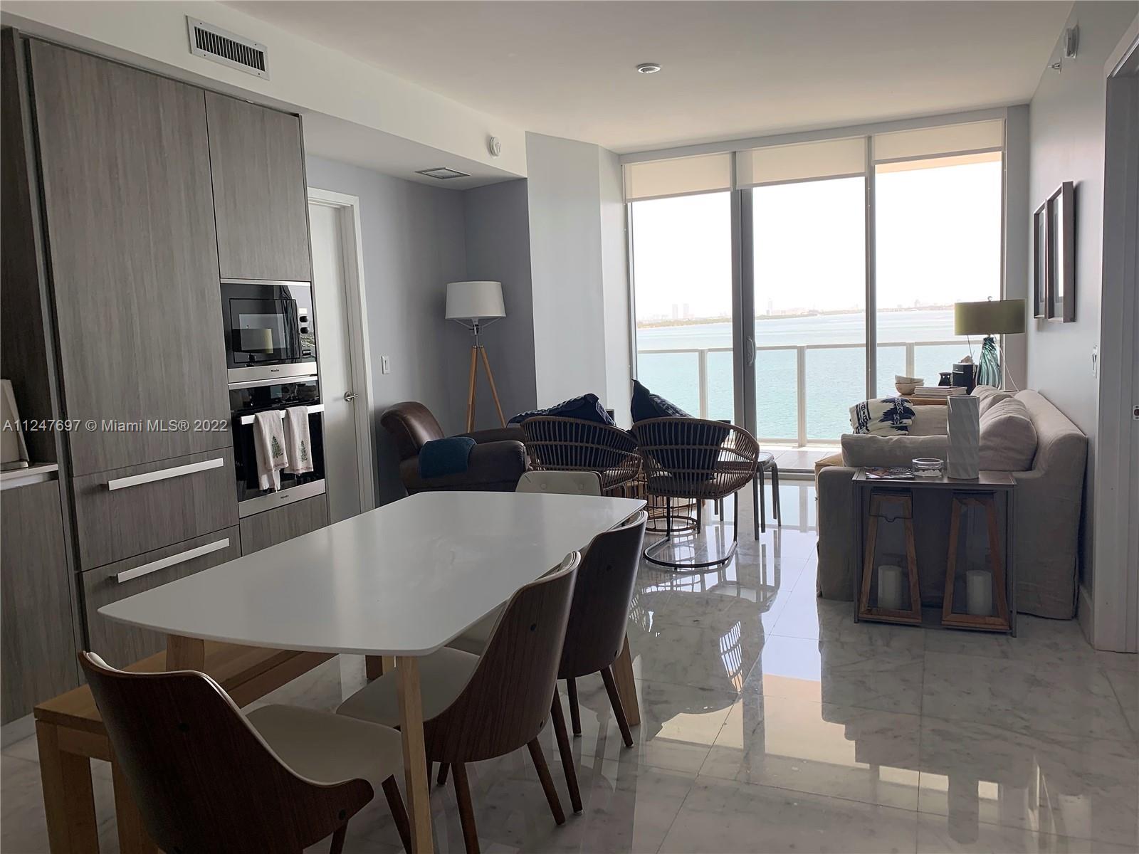 Spectacular 2 Bedrooms + Den with direct water views from everywhere. Private Elevator/foyer. Unit comes with a Storage and Parking space on the same 4th floor. All furnished. Den is set up as an office or could be a 3rd bedroom for guests as has a convertible bed. Top of the line appliances and building amenities such as: tennis courts, half basketball court, spa, business center, children play area, two pools, cabanas, etc. Edgewater neighborhood is located in the heart of it all: easy access to the causeways to Miami Beach, walking distance to Midtown and Design District, very close to Wynwood.