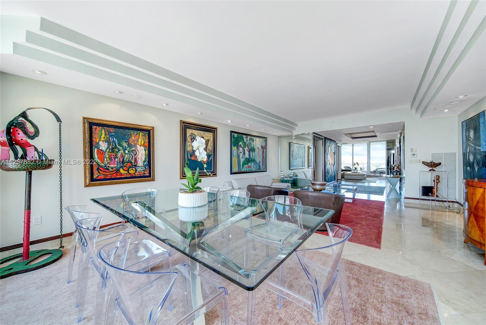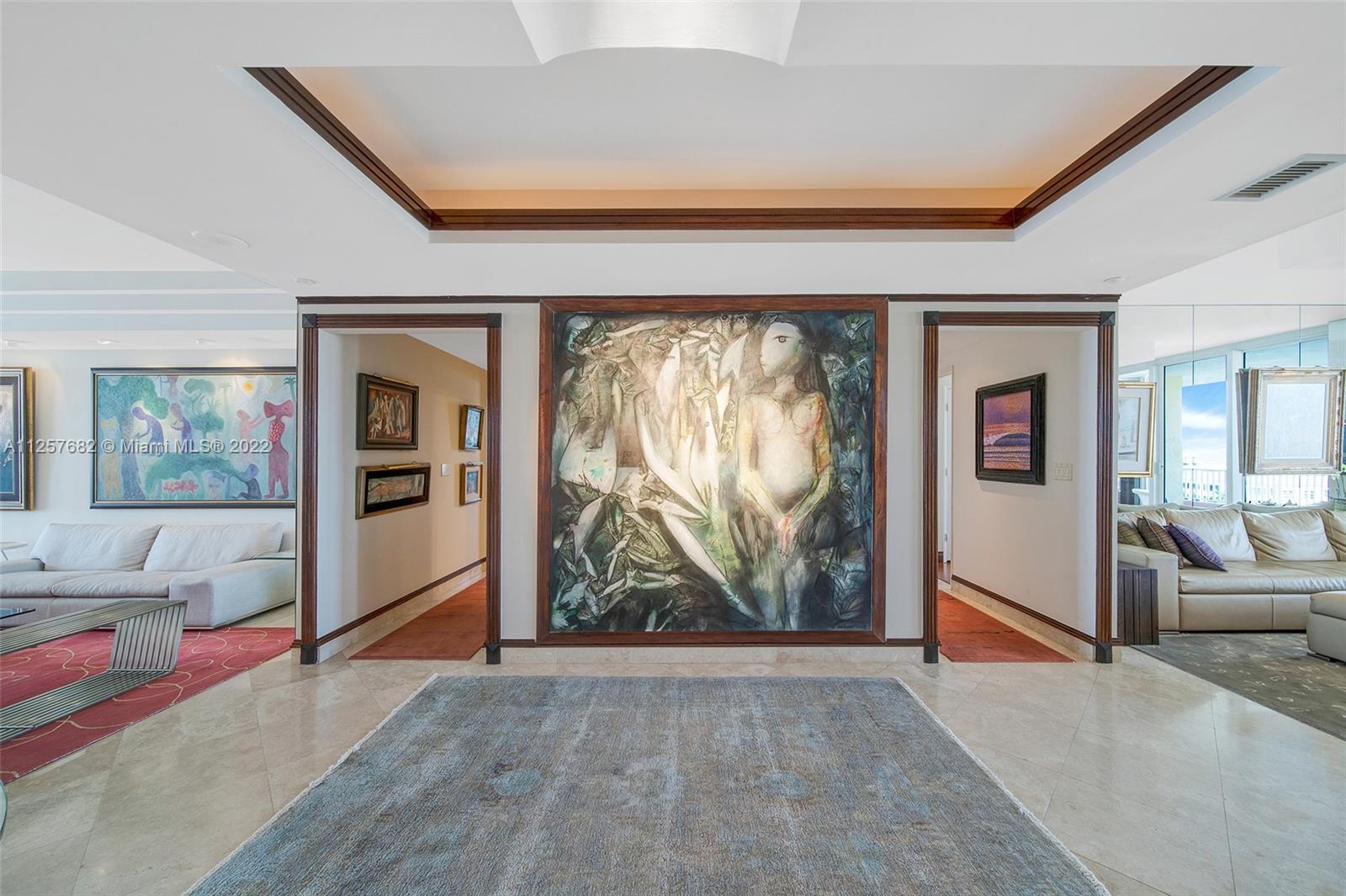 Spectacular Corner unit with stunning Ocean/Beach and Downtown Miami Skyline Views. This spacious apartment offers 3 in-suite bedrooms PLUS staff quarters with full bathroom, Plus a den/office that can be used as 4th bedroom, his and hers master bathrooms plus podwer room totaling 5.5 bathrooms. The East/West exposure offers bright light throughout the day and afternoon, two large terraces with beautiful views, travertine marble floors in living areas and hardwood floors in bedrooms. Resort style living at prestigious Ocean Club, private club, 2 restaurants, private spa, gym, tennis courts, swimming pools and mcuh more. Two car garage, plus valet, storage, pet friendly building.