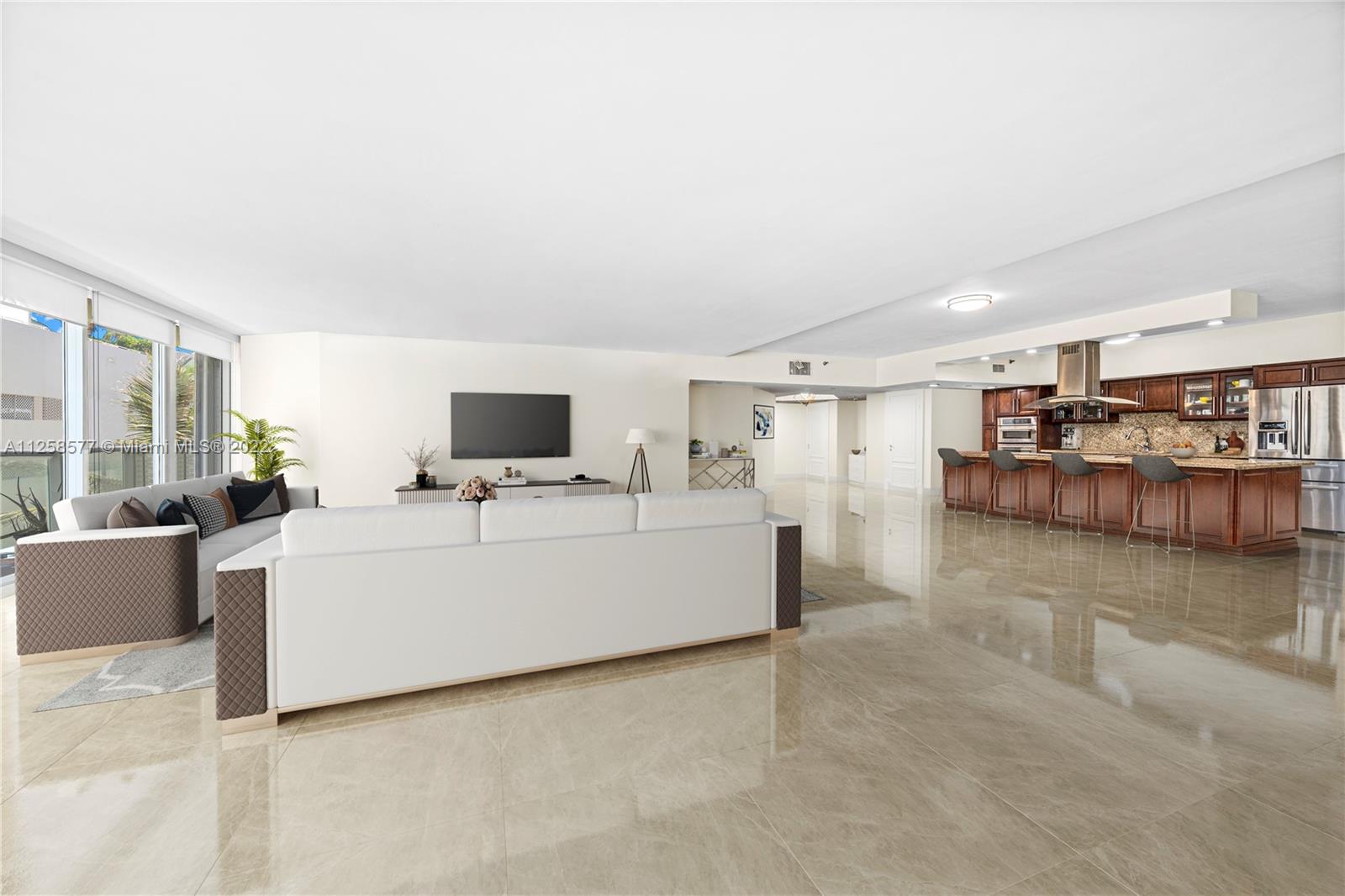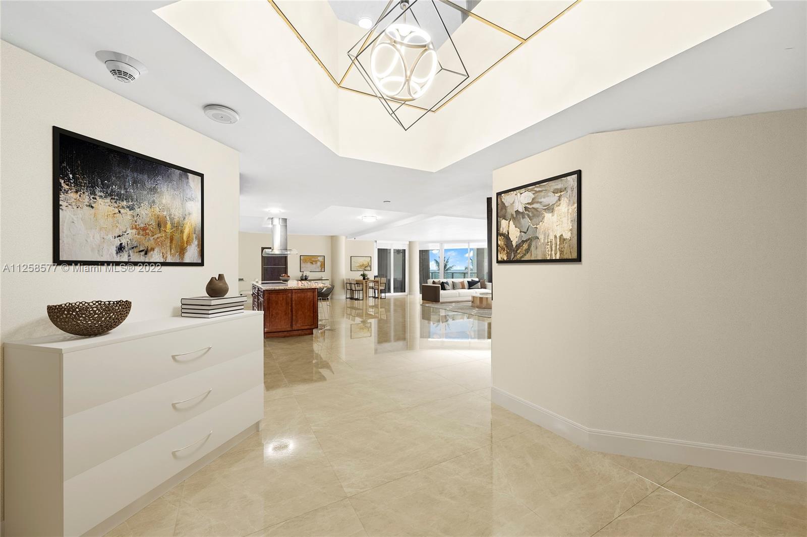 Oceanfront gem in an unbeatable location with oversized terrace in Sunny Isles Beach. Atlantic views and ample natural light throughout this remodeled 3-bed, 3.5-bath residence spanning 2,970 sq. ft. The spacious, remodeled unit in “Florida’s Riviera” features an open-concept floor plan with the living room and main master suite opening up to an expansive wraparound terrace with views of the ocean. Custom kitchen boasts large center island with breakfast bar, stainless-steel appliances and wine fridge. Master bathroom with travertine, dual-sinks and large jacuzzi tub, while second master bedroom includes an office nook. Resort-style living at Oceania offers amenities such as beach access, fitness center, spa, tennis, basketball and racquetball courts, private marina, and more.