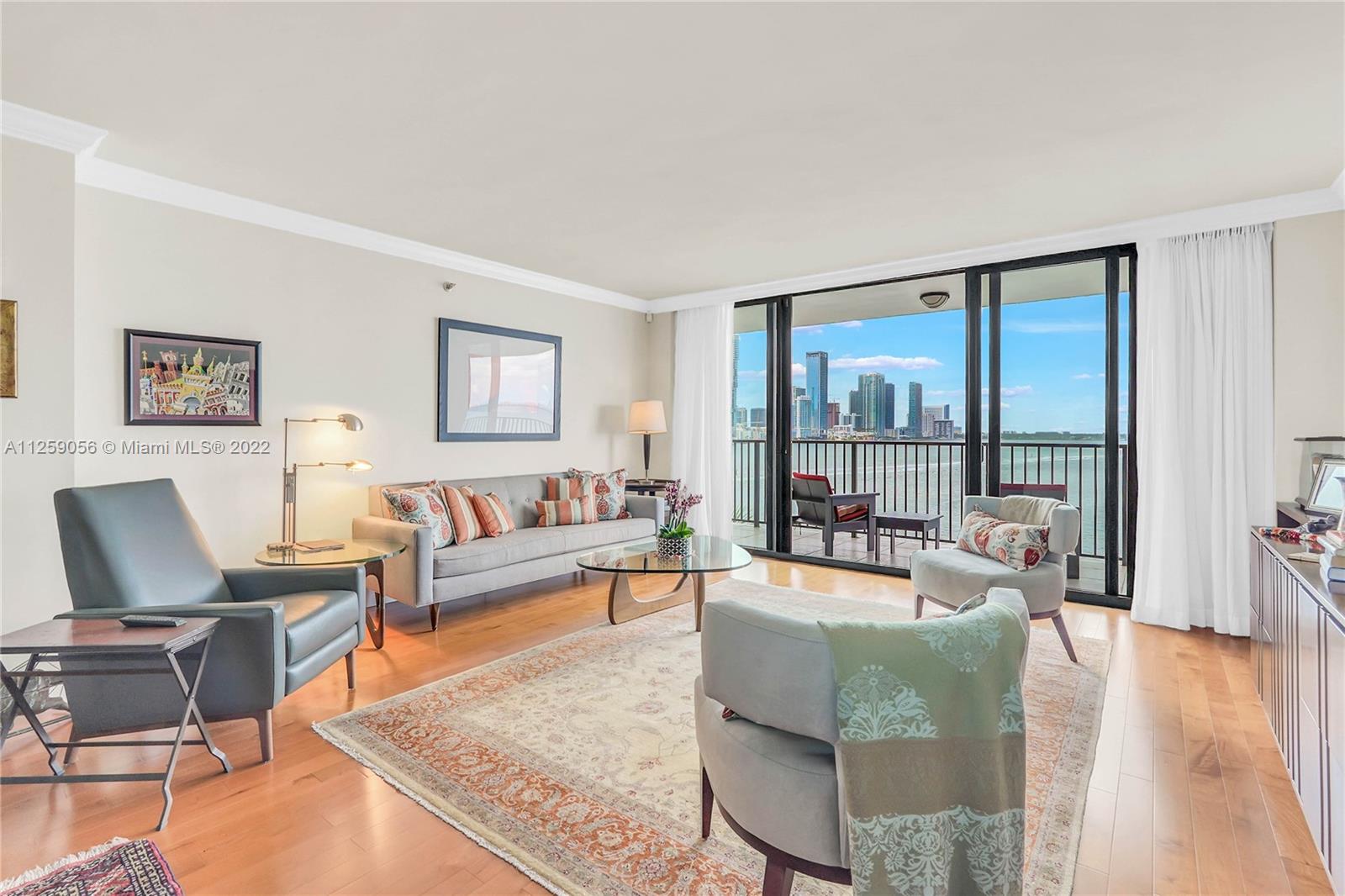 Unobstructed Biscayne Bay water views from all rooms! 2 Bedrooms, 2.5 Baths. Split bedroom floor plan. All rooms have direct access to large bay front balcony. Unit has been updated with newer kitchen and appliances. Impact doors and windows. Amenities include bay front pool, tennis court, day dock, party room, storage for paddle boards and new gym in the final stages of construction. Easy access to South Beach, DT Miami, Wynwood and Design District.