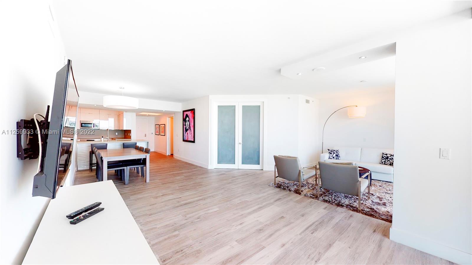 Direct Bay View w/ two large balconies overlooking Biscayne Bay & Belle Isla. This immaculate & updated 2 bedroom / 2 bath features updated modern Bosch SS appliances, washer/dryer & AC. Gorgeous wood floors and built out closets. Walking distance to Sunset Harbour featuring the best in restaurants, cafe's, attached private marina and several top gyms such as Barry's Bootcamp & Sweat 440. All Steps from this doorman building's front desk. The Grand Venetian is one of the best full service, inclusive of 24/7 valet and on-site management condominiums in Miami Beach.