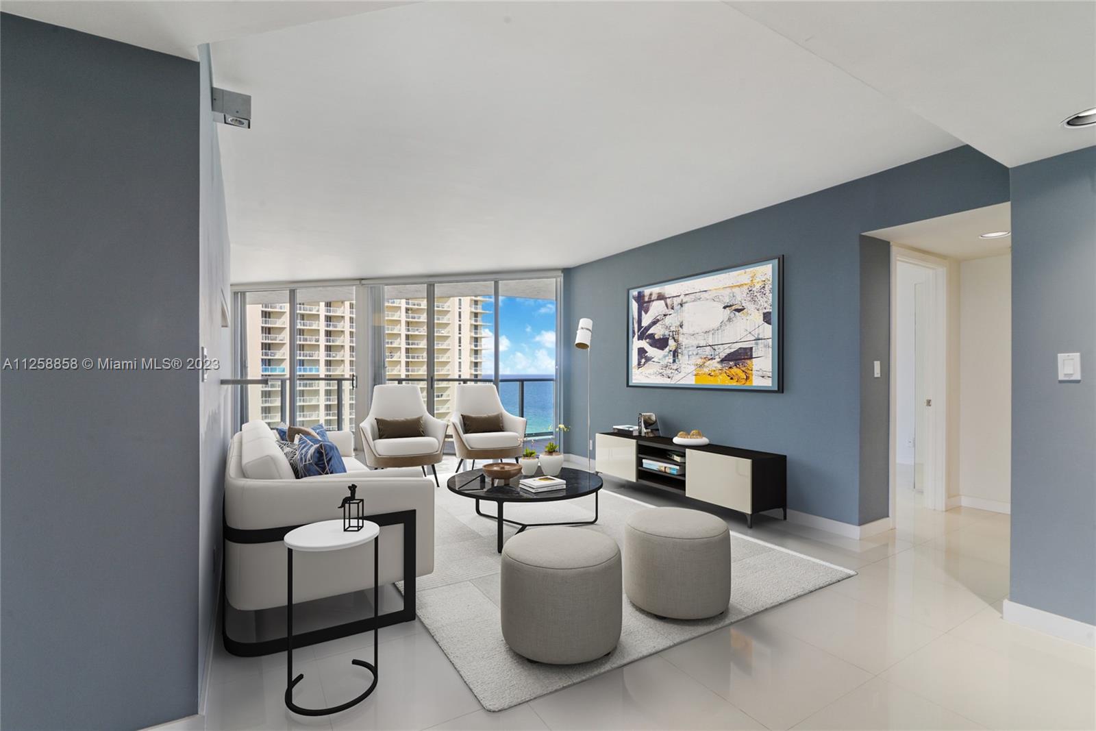 Remarkable opportunity to buy in oceanfront Sunny Isles Beach condominium for investment or personal use. This renovated 2 bedroom/2 bath unit is move-in ready and features floor to ceiling windows for spectacular ocean and city views from 2 separate balconies. Open kitchen with quartz counters, custom cabinetry, chrome and crystal light fixtures, white porcelain tile floors, smooth plaster ceilings. Accordion style room divider transforms your den into a private office or occasional guest room. Oceania has wonderful amenities including full service beach club, health spa with daily classes, tennis, ocean front dining, indoor racquet ball and half court basketball, Marina (Slip currently available) and so much more.