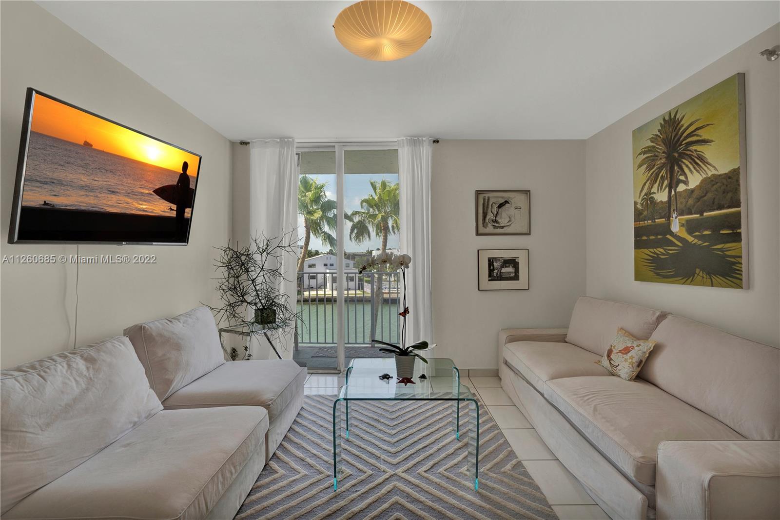 Spacious Unit in Normandy Isle within walking distance to the neighborhood's park, golf course, and the beach. This 1 bedroom, 1 bathroom condominium has an amazing water view from the balcony, lots of natural light, closet space and renovated kitchen and bathroom in 2018. It has tile floors throughout, and Corian countertop in the kitchen. The Boutique Building has a secured garage, an elevator, a pool with deck, and BBQ area. The Low Homeowner's Association Fee includes water, insurance, and maintenance of all common areas. The unit is being offered "as is".