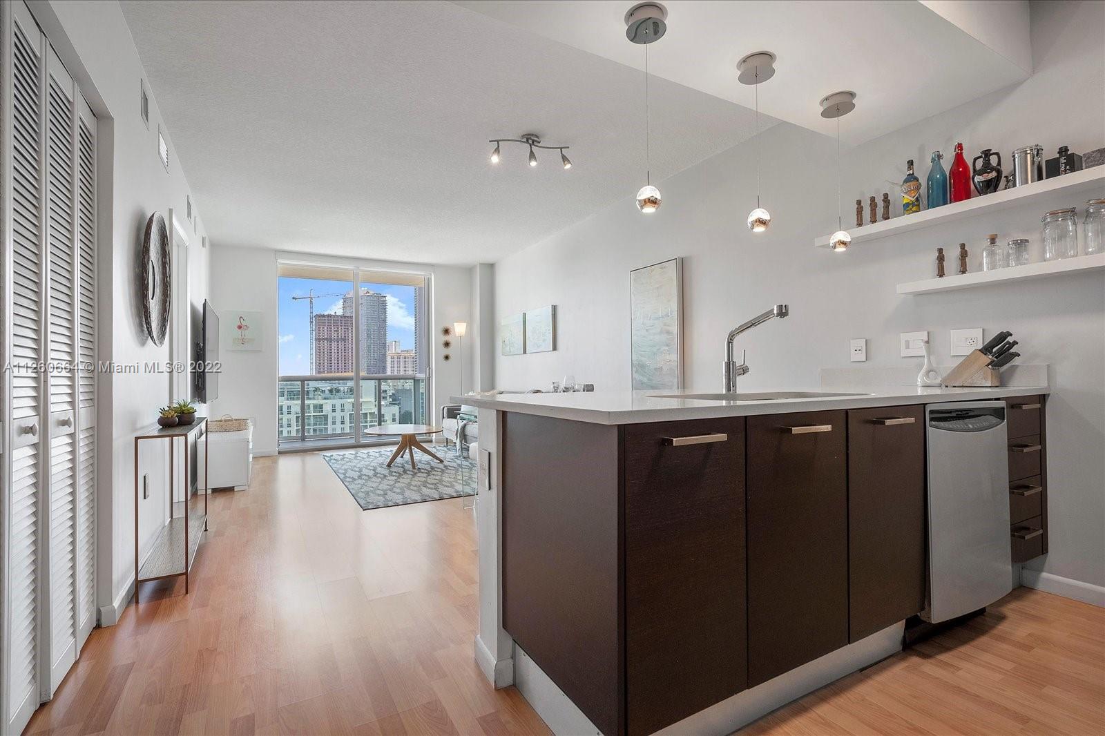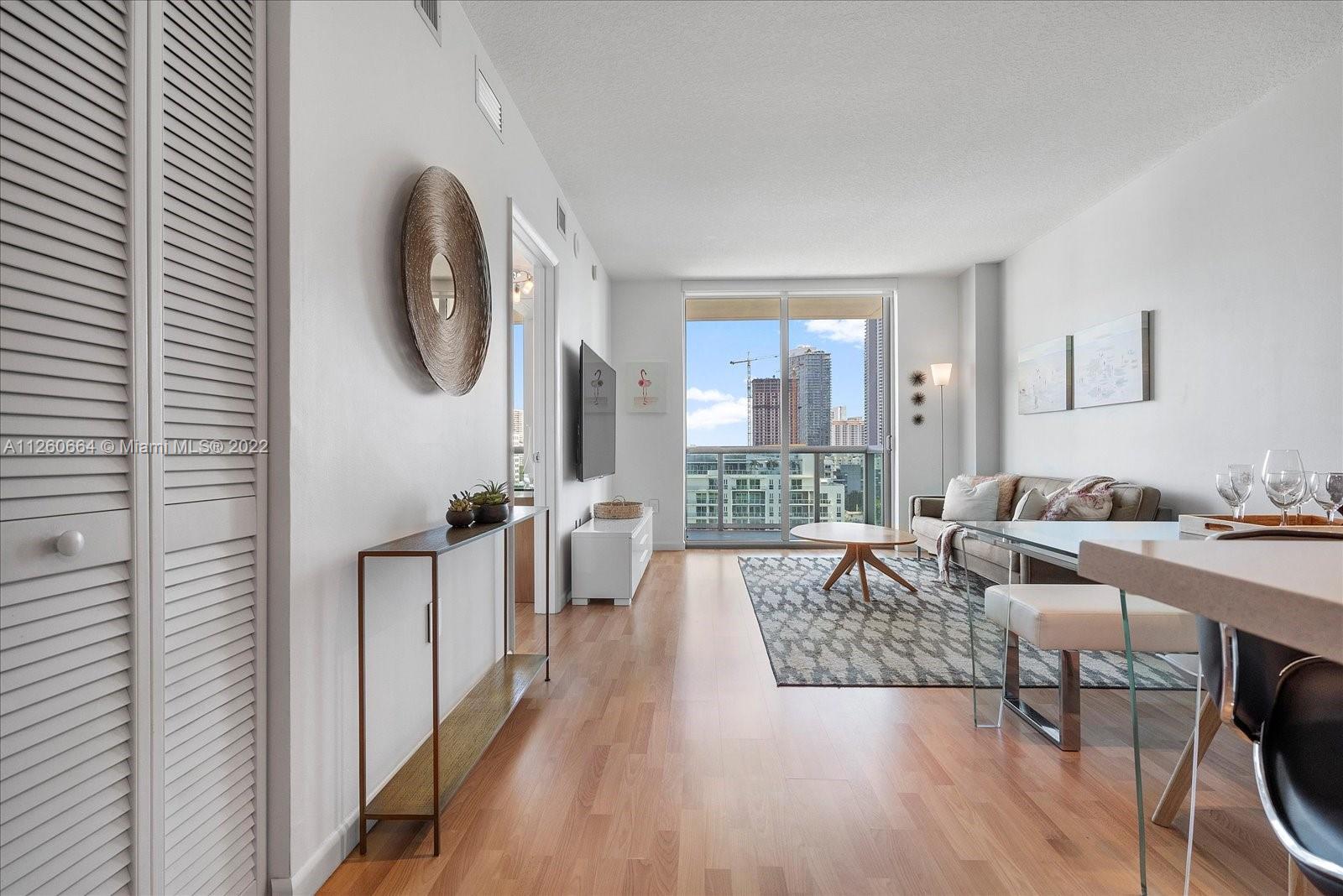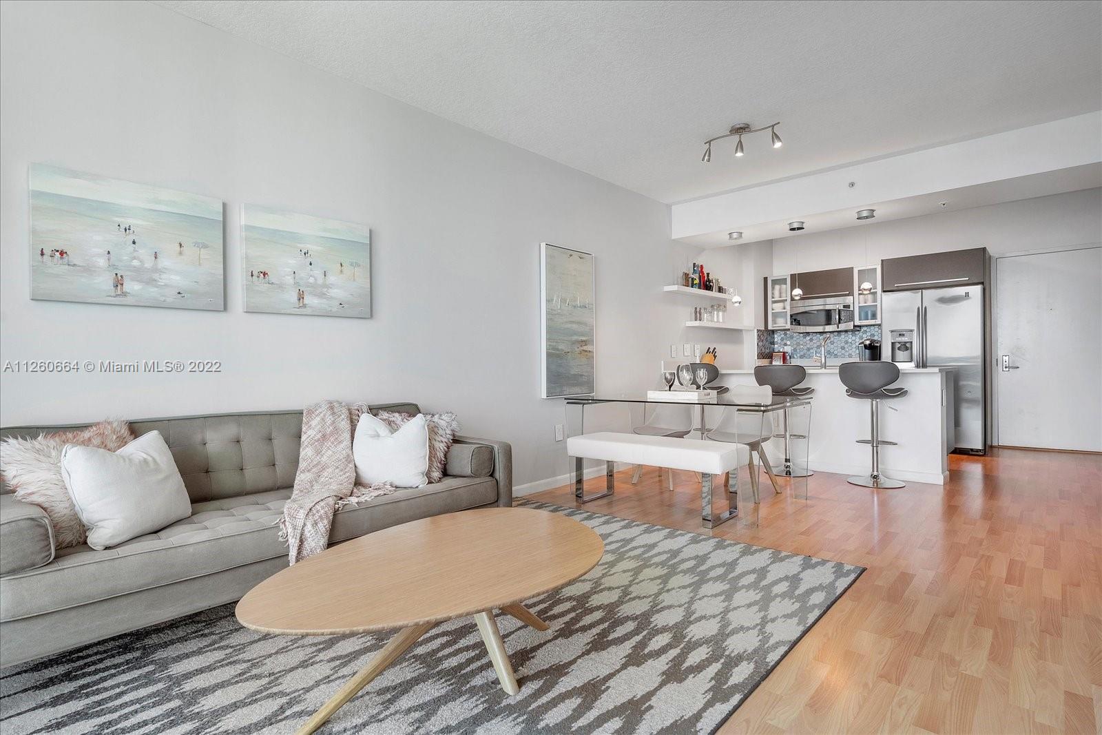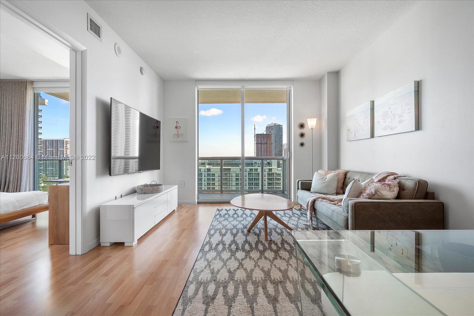 Beutiful one bedroom and one bathroom unit with nice views to the pool area . Open kitchen with steinless steel appliances and laminated floor, balcony, washer and dryer, one assigned parking space. Building offers upgraded gym, pool, sauna with excellent location closed to Miami Beach, Midtown, Downtown and Design District.