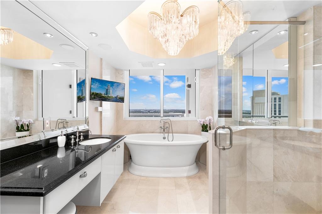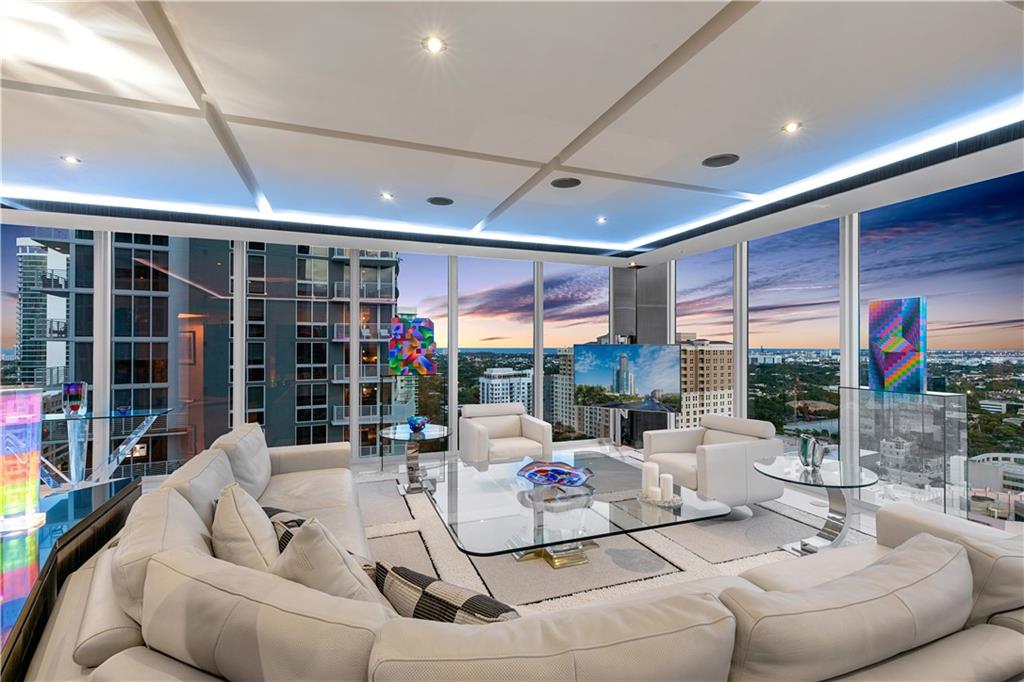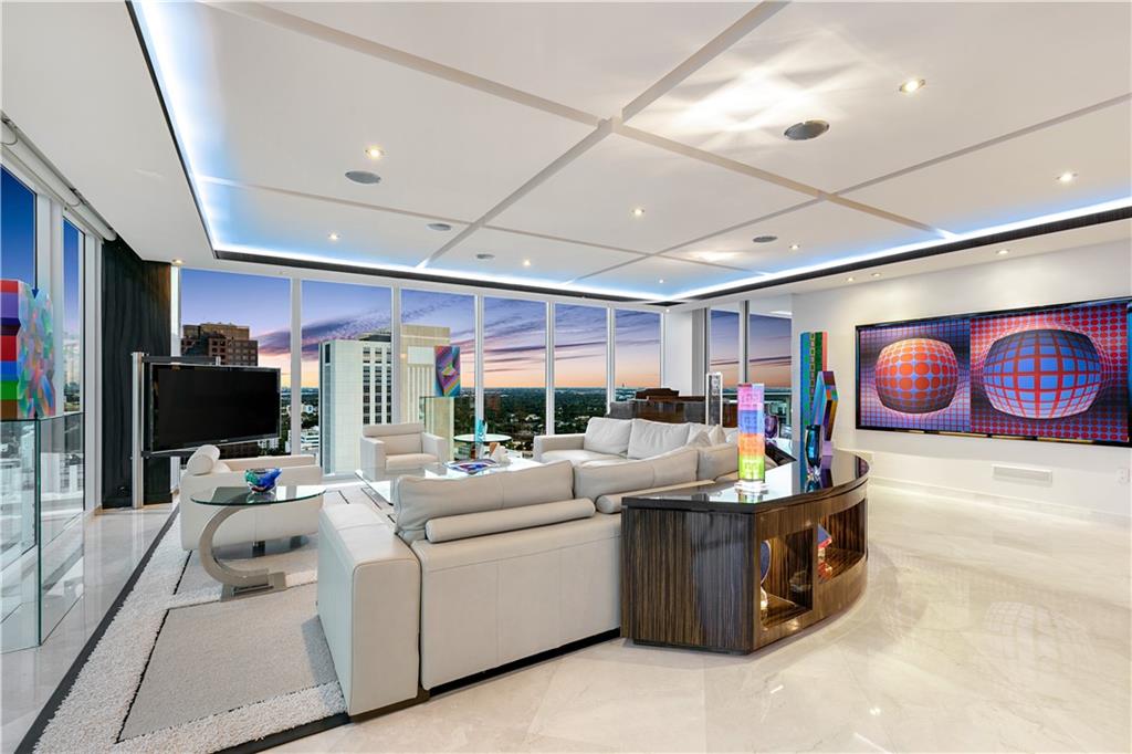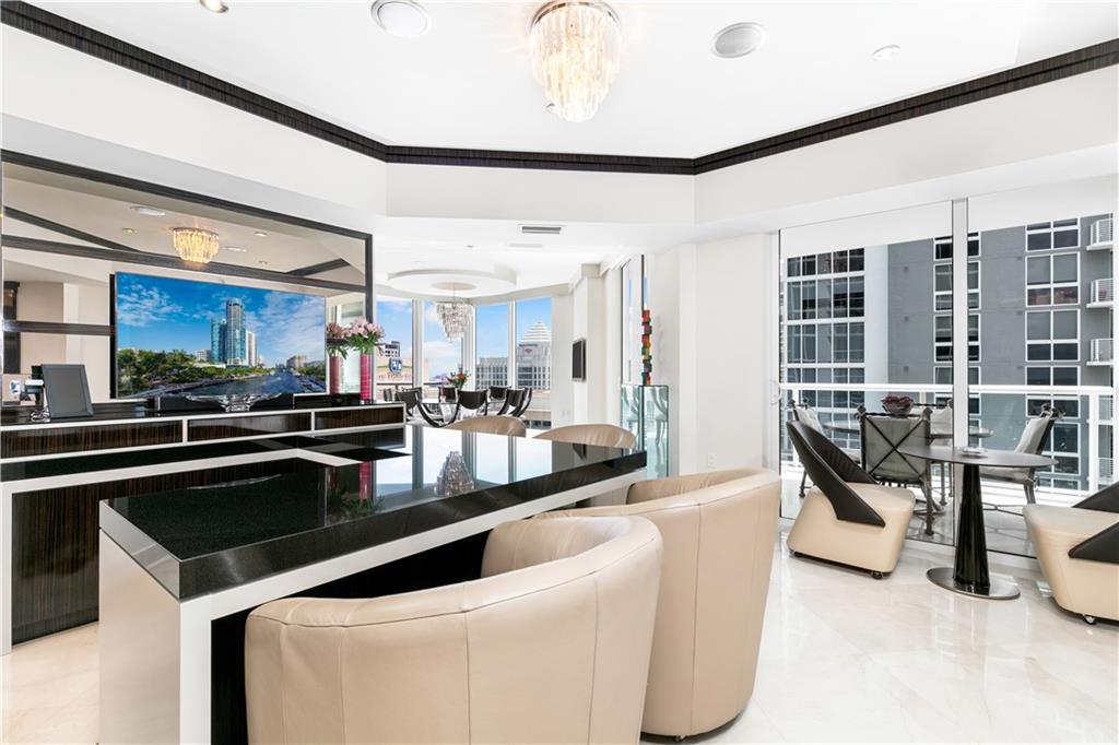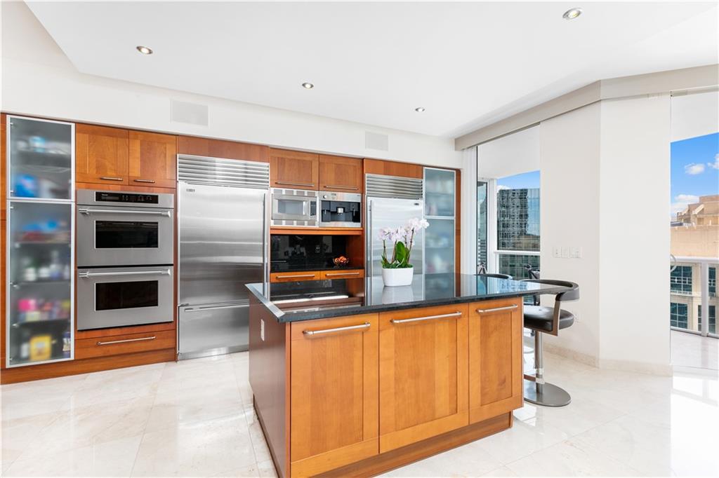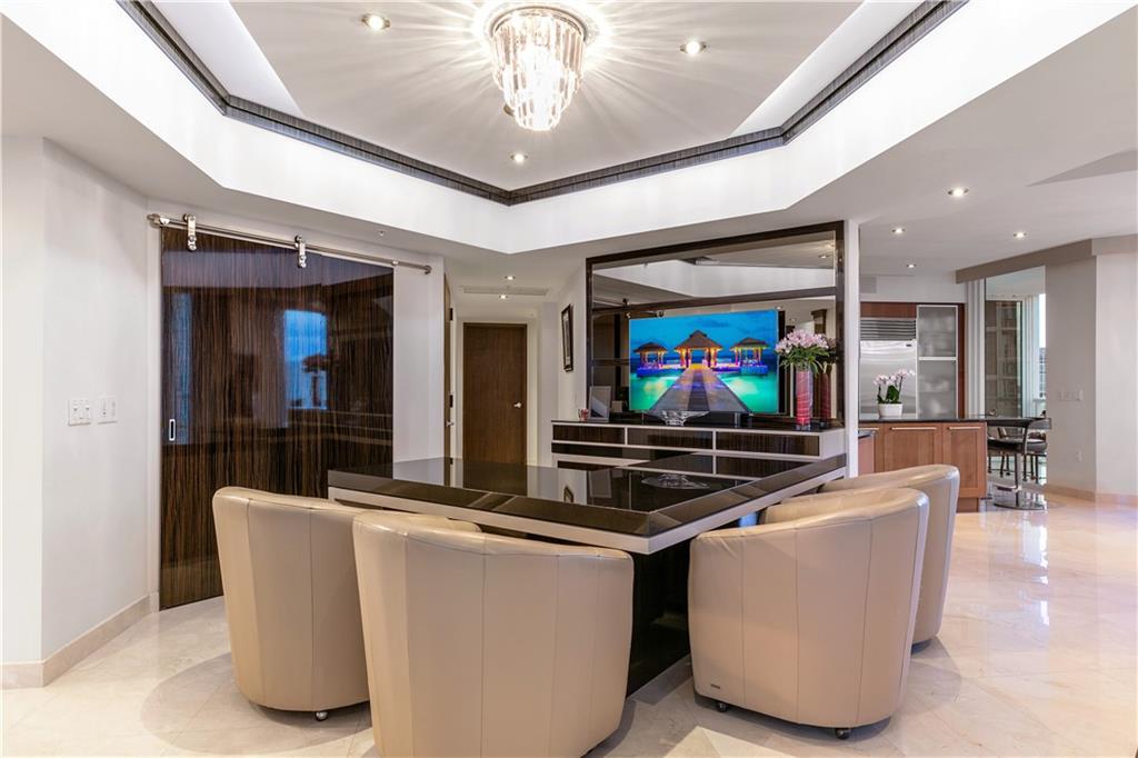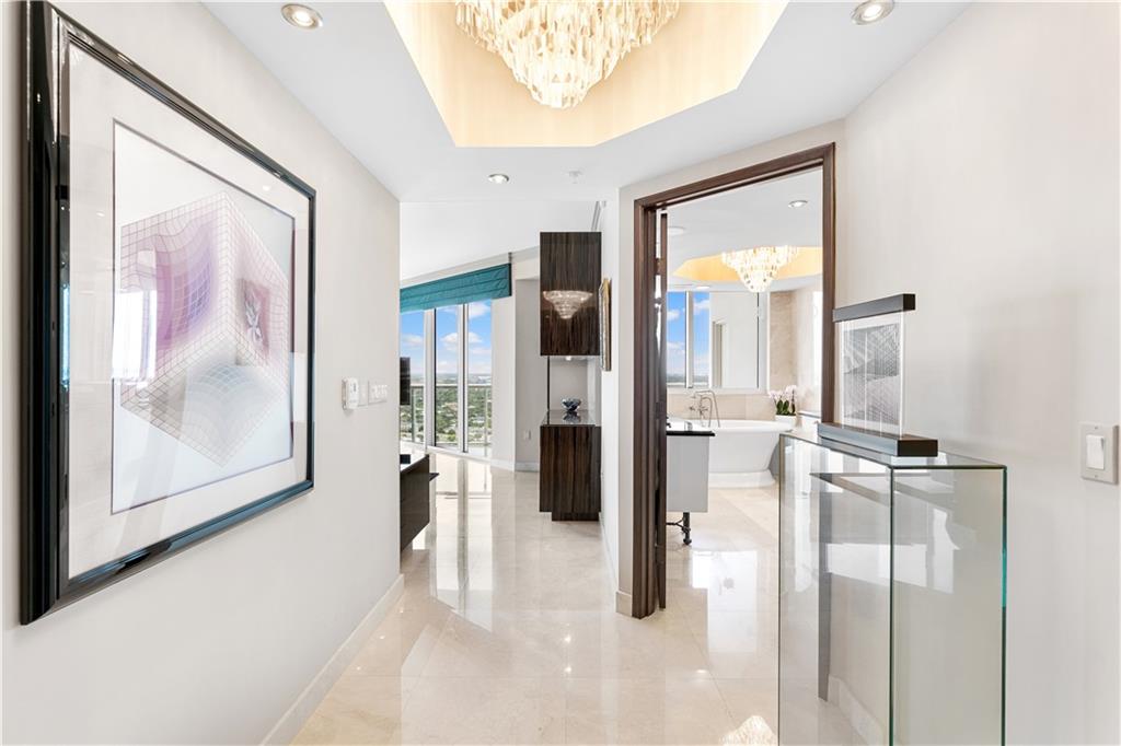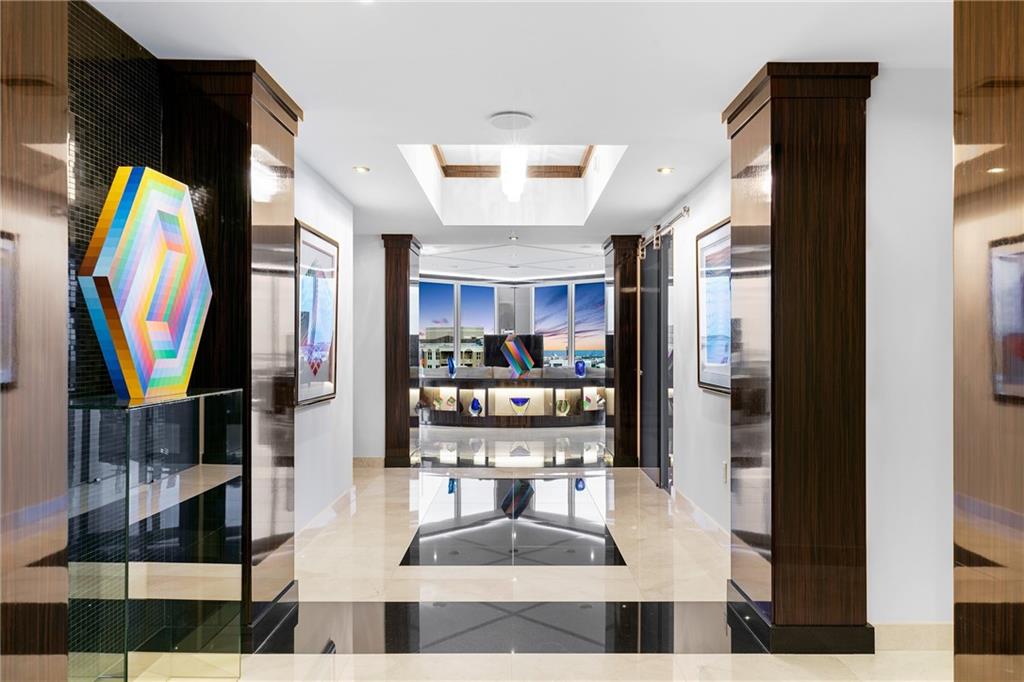 THIS PRISTINE PARK MODEL DELIVERS A MODERN SLEEK DESIGN BY STEVEN G W/ PRIVATE ELEVATOR ENTRY LEADING INTO A GALLERY LIKE FOYER SHOWCASING WALLS OF ARTWORK, CHANDELIERS, MARBLE FLOORING W/ CUSTOM INLAYS, WOOD PANELED COLUMNS, REFLECTING A KEEN EYE & APPRECIATION TO DETAIL. CUSTOM ILLUMINATED CEILINGS ANGLE OUT THE FLOOR PLAN OFFERING ANOTHER ASPECT OF ART IN ITSELF. RIVER & OCEAN VIEWS FROM THIS 3 BED 3 BATH RESIDENCE SPREAD OVER 3400 SQFT W/ 4 TERRACES. PREMIER FEATURES INCLUDE MOTORIZED WINDOW TREATMENTS, STATE OF THE ART SOUND SYSTEM, LOUNGE W/ BAR, CUSTOM DOORS, SPA-INSPIRED BATHS & AN OPEN KITCHEN WELL EQUIPPED W/ 2 SUBZERO REFRIGERATORS, WINE COOLER, LARGE ISLAND, SNAIDERO CABINETRY & AMPLE CABINET SPACE.