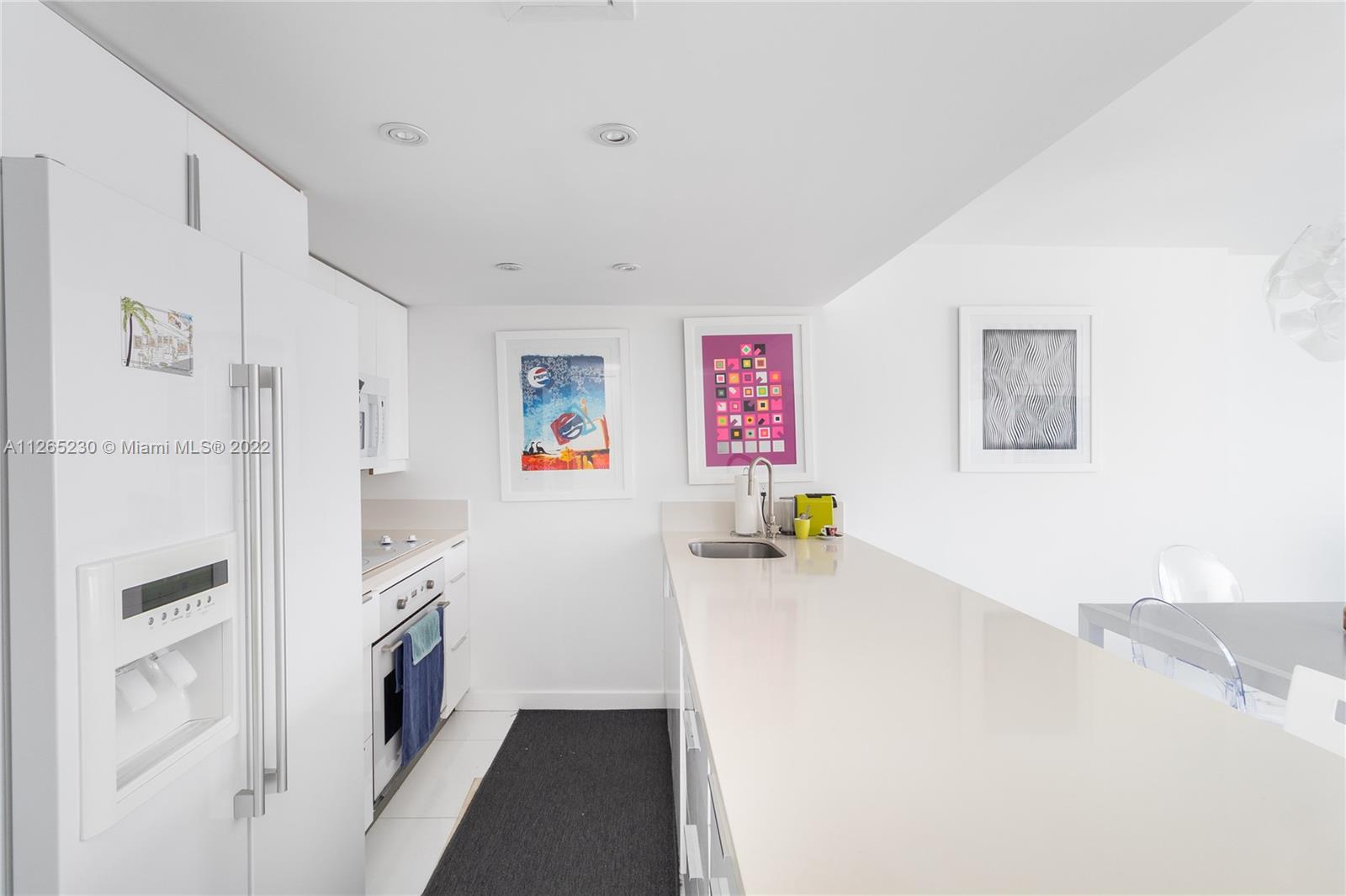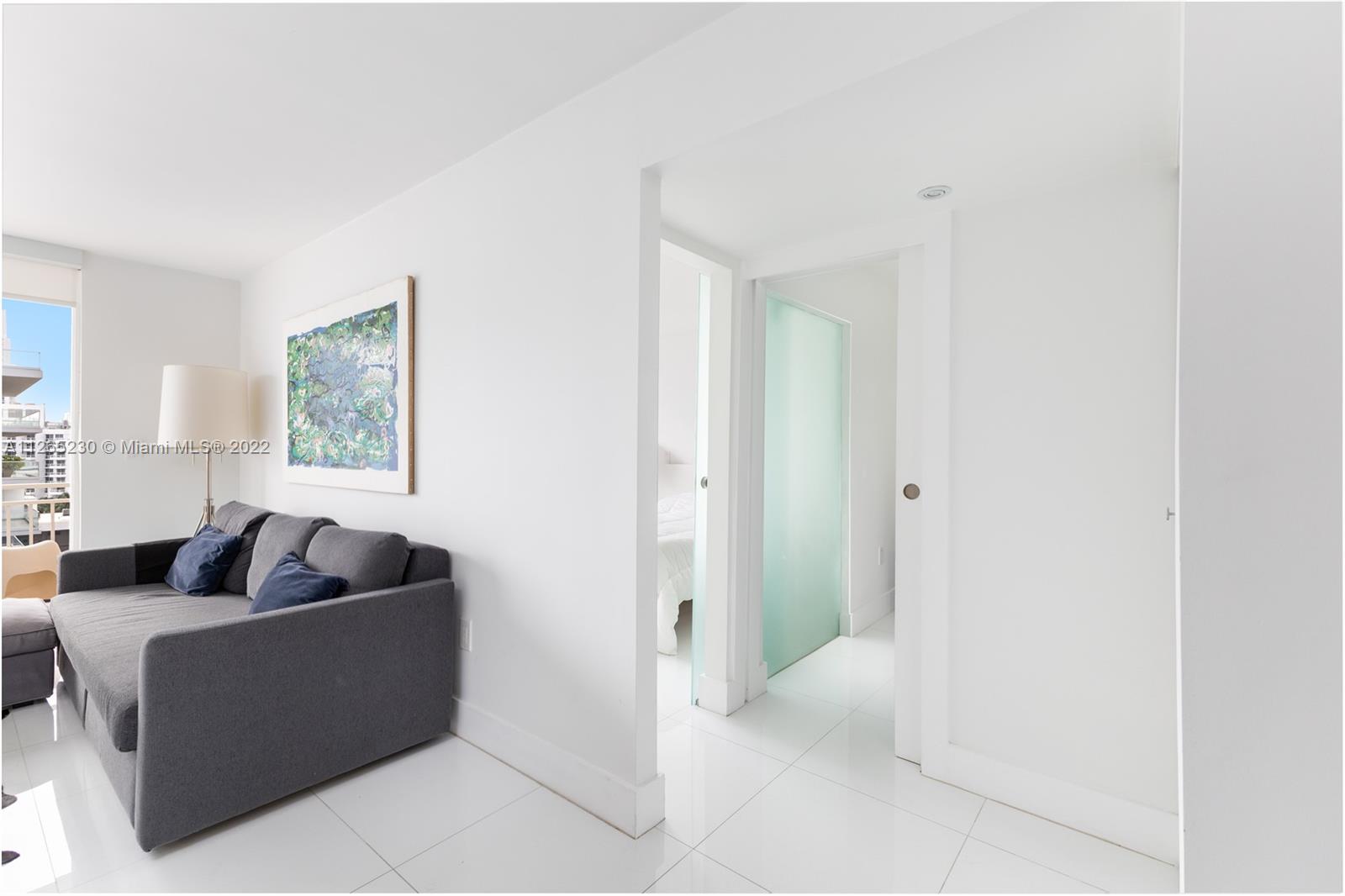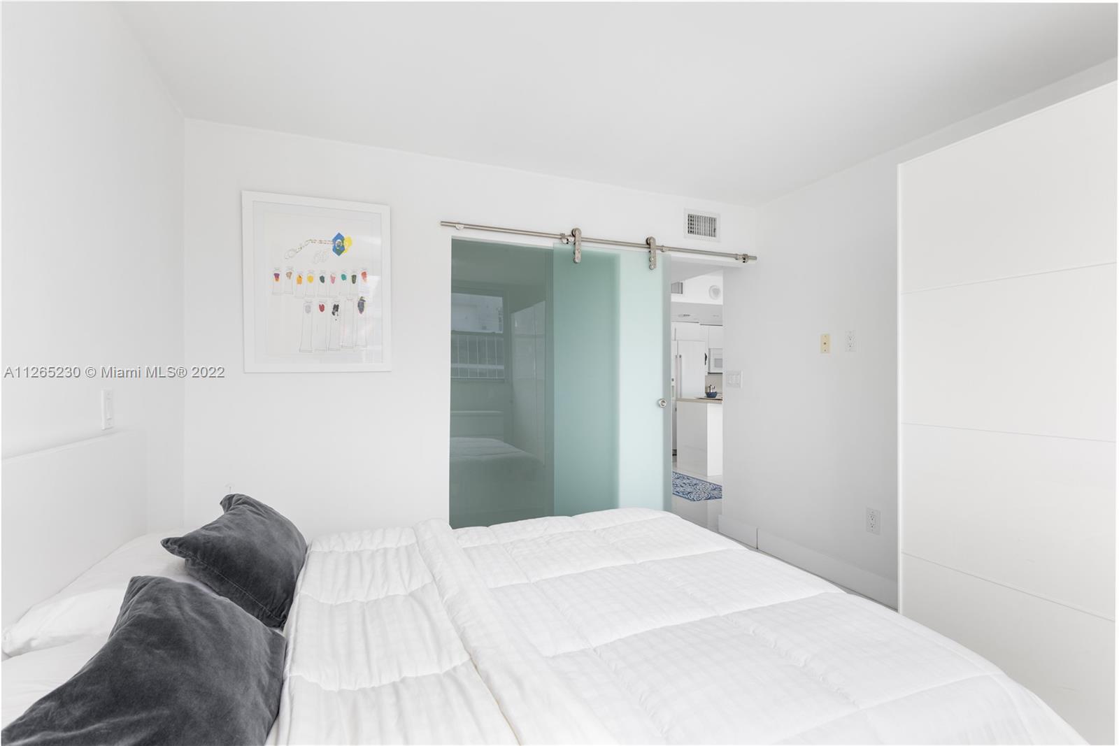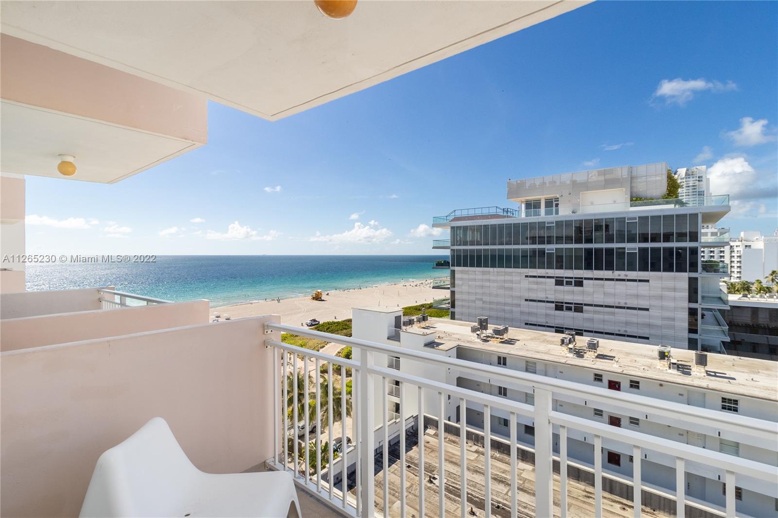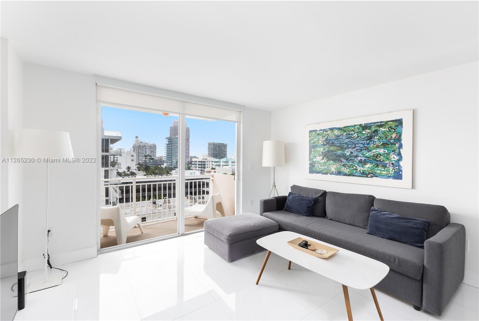 Spectacular unobstructed ocean & skyline views from this exquisitely renovated high floor 1 bed 1 bath w/den, balcony & covered parking in Oceanfront South of Fifth St. Stunning design w/all furnishings included- your perfect beach paradise: Beautiful open kitchen in white w/monochromatic appliances including flat-top range, microwave, dishwasher & side-by-side refrigerator, white floors throughout, oversized bathroom w/glass shower, impact glass leading to large balcony & more. Gorgeous designer flare from the modern furnishings & frosted glass doors to the custom Italian light fixture- wow. Includes rare & valuable 2nd floor garage parking. Oceanfront condo allows washer/dryer in unit, has new heated pool & 24 hr security. Perfect home or investment-great tenant paying $2875 until 2/23.