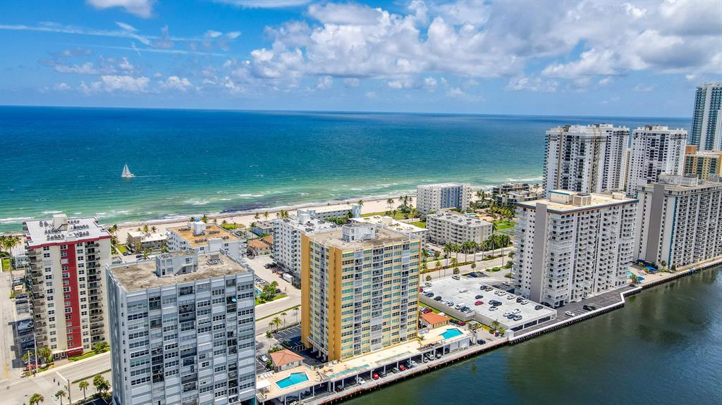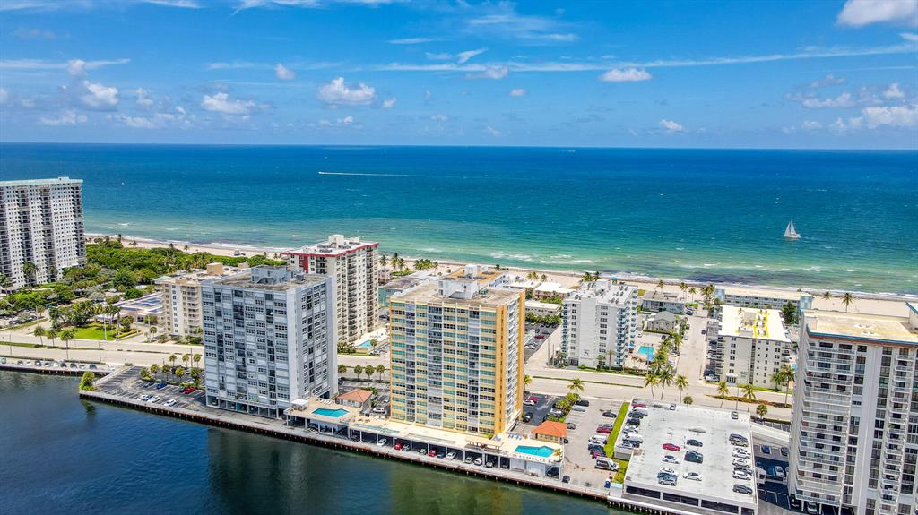 Spacious 2 Bedroom 2 Bathroom corner unit with direct Intracoastal views from living room, dining room, balcony and master bedroom. Excellent location with beach and Hollywood Boardwalk across the street. Master bedroom features a large walk-in closet and modern upgraded bathroom. Reserved Parking is #24The building amenities include a large pool deck along the intracoastal with BBQs, Gym and Shuffleboard. 40 Year Inspection Complete.