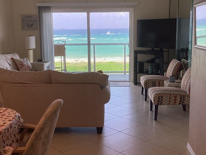 MASSIVE REDUCTION! OWNER SAYS SELL! Just pack your bags and move right into this fully furnished oceanfront condo with direct views of the beautiful Atlantic! Enjoy the balcony for unobstructed views of Hillsboro Inlet and Hillsboro Lighthouse! With Wahoo Bay at our doorstep and spacious lush grounds, Tiffany Gardens is unmatched by any other Oceanfront condo. Unit has been completely remodeled and has all high impact windows and doors. Kitchen, Dining Room, Living Room and Master bedroom face the ocean. Second bedroom has a queen Murphy bed with a wraparound office. Building is in the last few weeks of a $5,00,000 renovation to both modernize and ensure the integrity of the building. All new glass and aluminum rails on the balcony and catwalk promote a modern open concept.