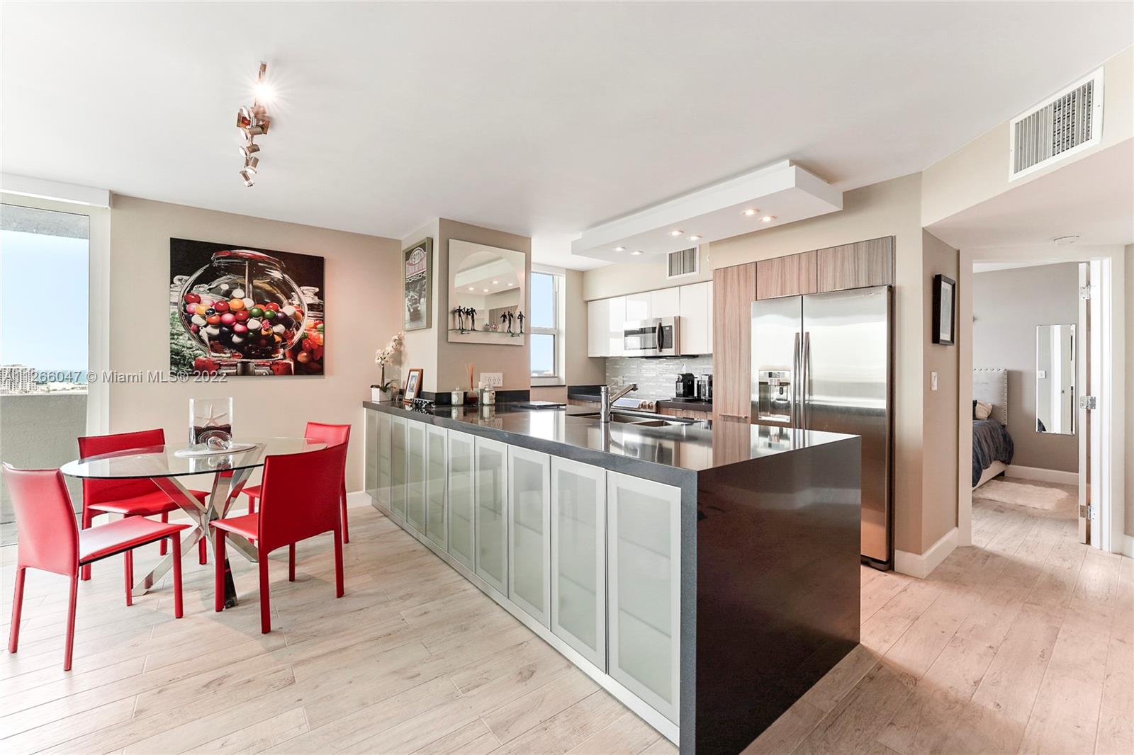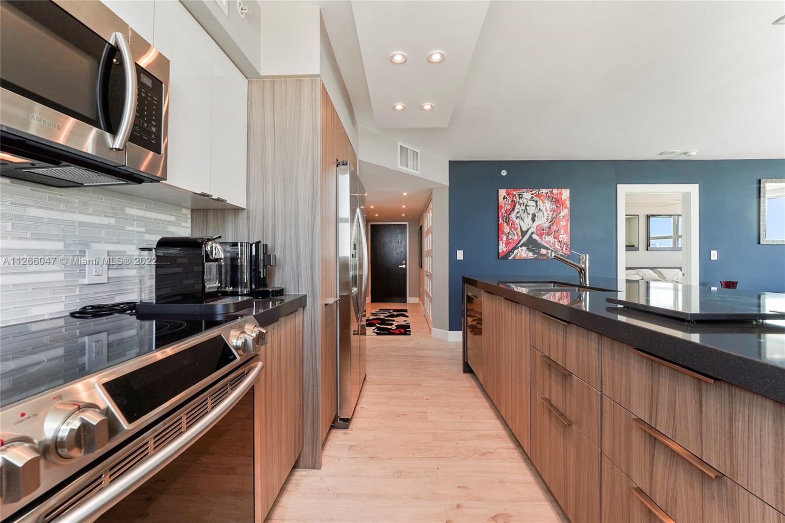 Gorgeous turn key corner unit with wrap around balcony. Views of the ocean, bay, and city. Enjoy the sunset and sunrise from your oversized balcony. Unit has been totally remodeled with extra large Cambria seamless waterfall island, stainless steel appliances, Porcelanosa vanities and faucets and Italian porcelain flooring throughout the unit. The unit also comes with electric blinds and custom closets. All windows have been changed to new hurricane impact windows and sliding doors. Furniture can be sold too. You will located in the best SOFI neighborhood, walking distance to Miami’s best restaurants and to the beach.