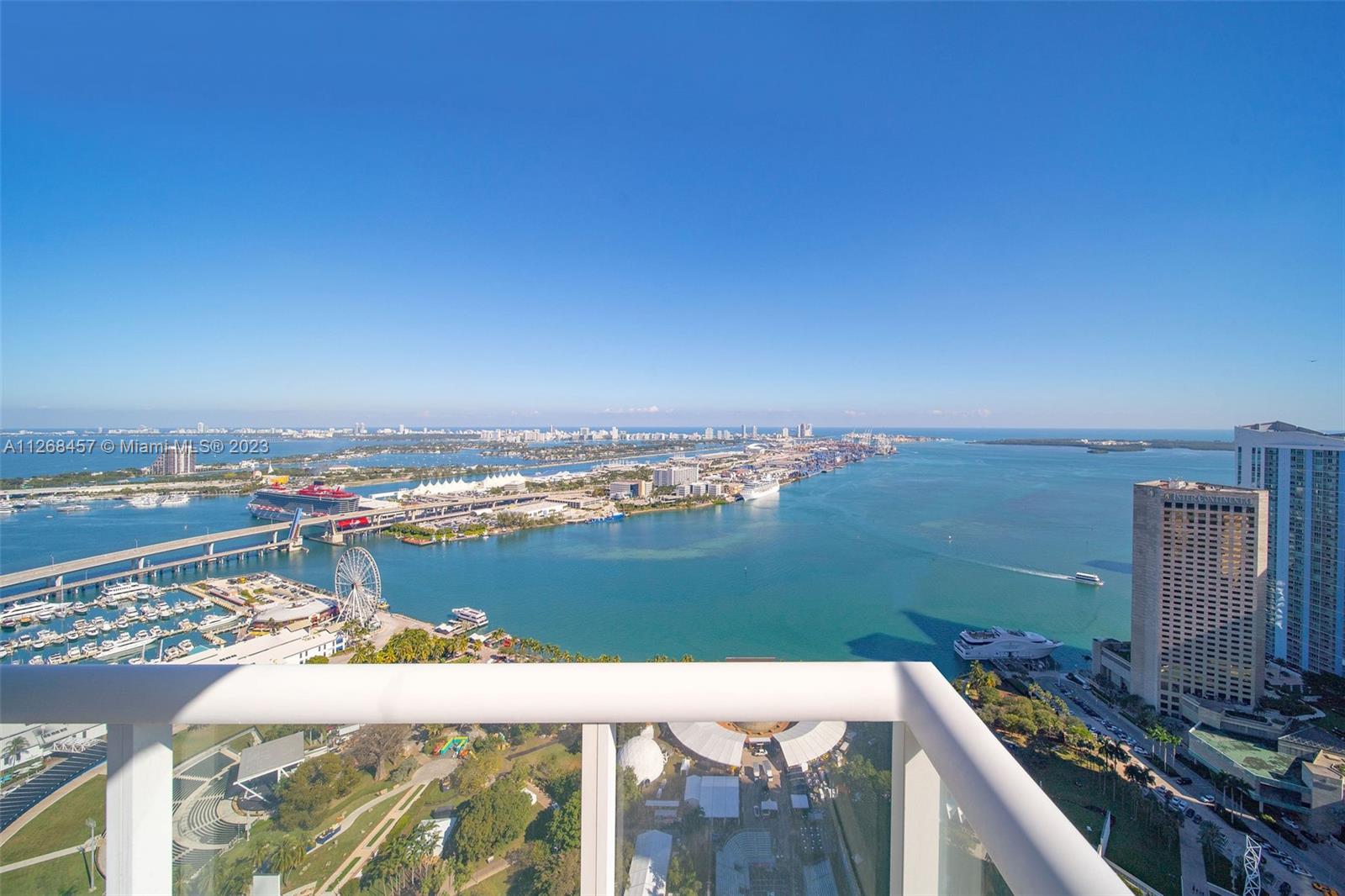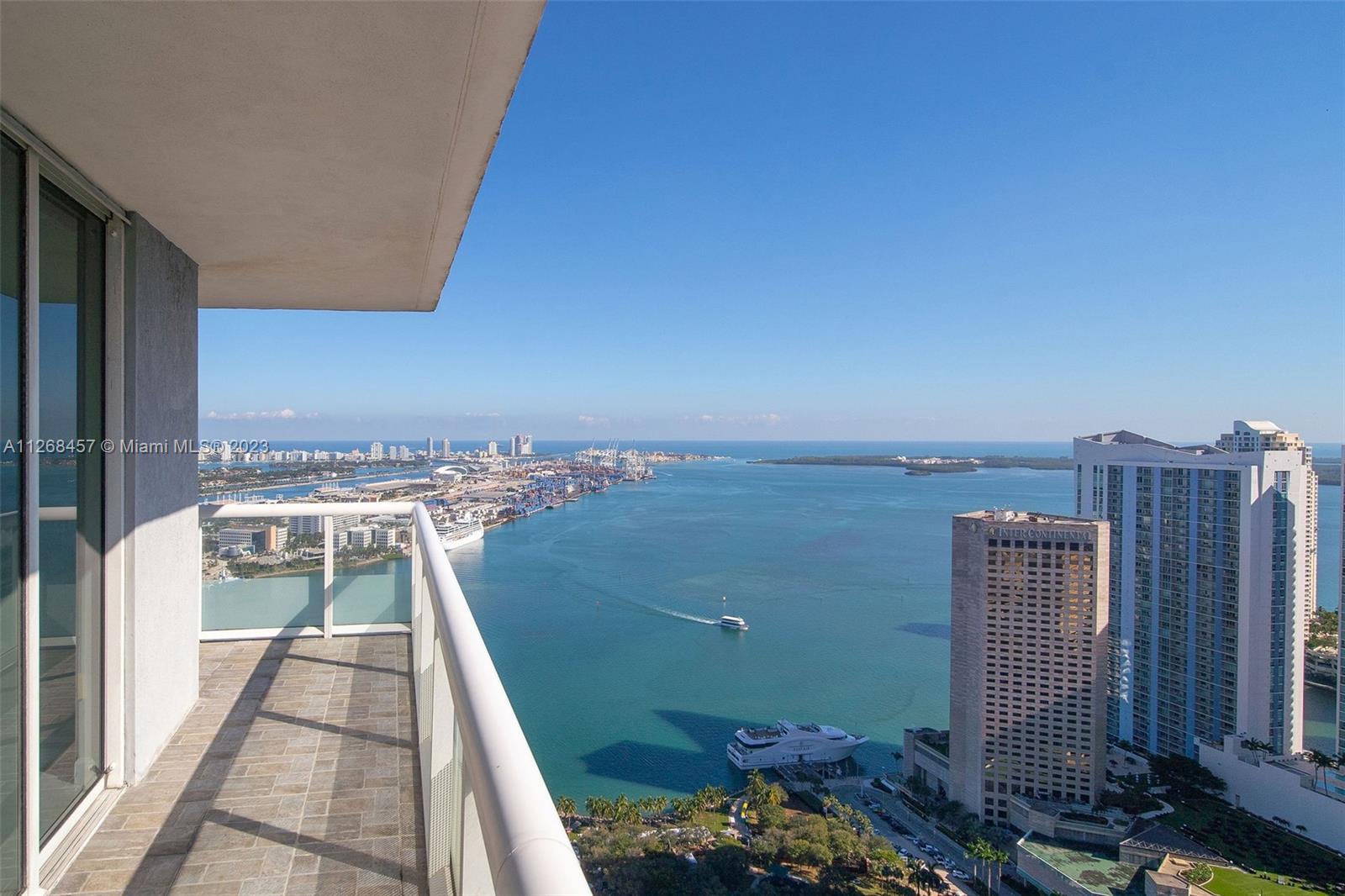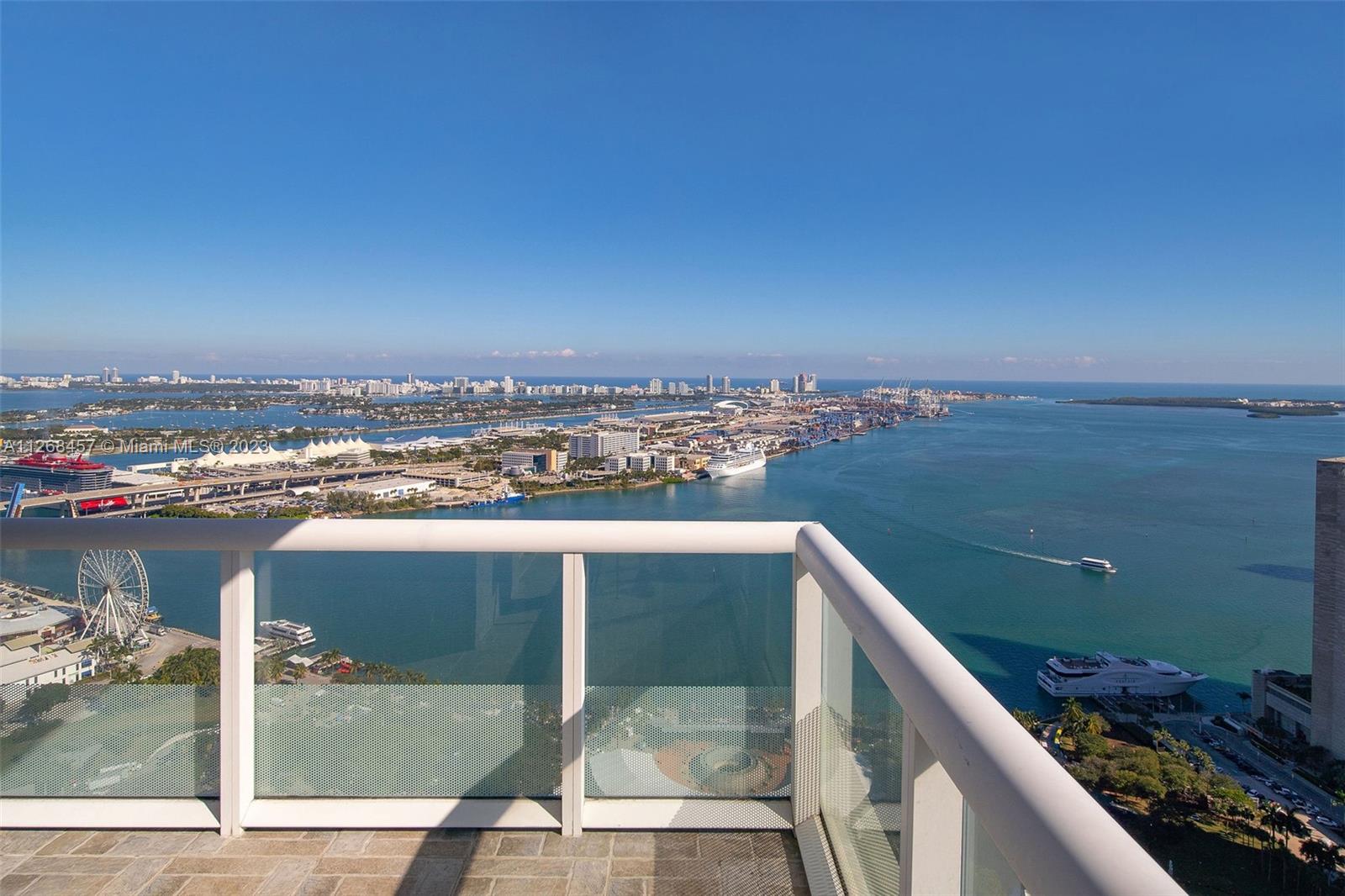 Enjoy spectacular views of Biscayne Bay, Port of Miami, and Miami Beach from this 3 bed/2 bath corner residence located in the heart of Miami. This Southeast corner unit features an open kitchen/living room layout, porcelain floors throughout, ample closet space, washer and dryer, tiled balcony and views from each room. 50 Biscayne is a full amenity building with an Olympic-size heated pool, state of the art spa, private fitness center, tennis, security valet parking and concierge service. Enjoy living across bay front park with the convenience of being minutes away from Miami’s top museums, restaurants, nightlife, financial district, best hospitals, public transit hubs and main highways.