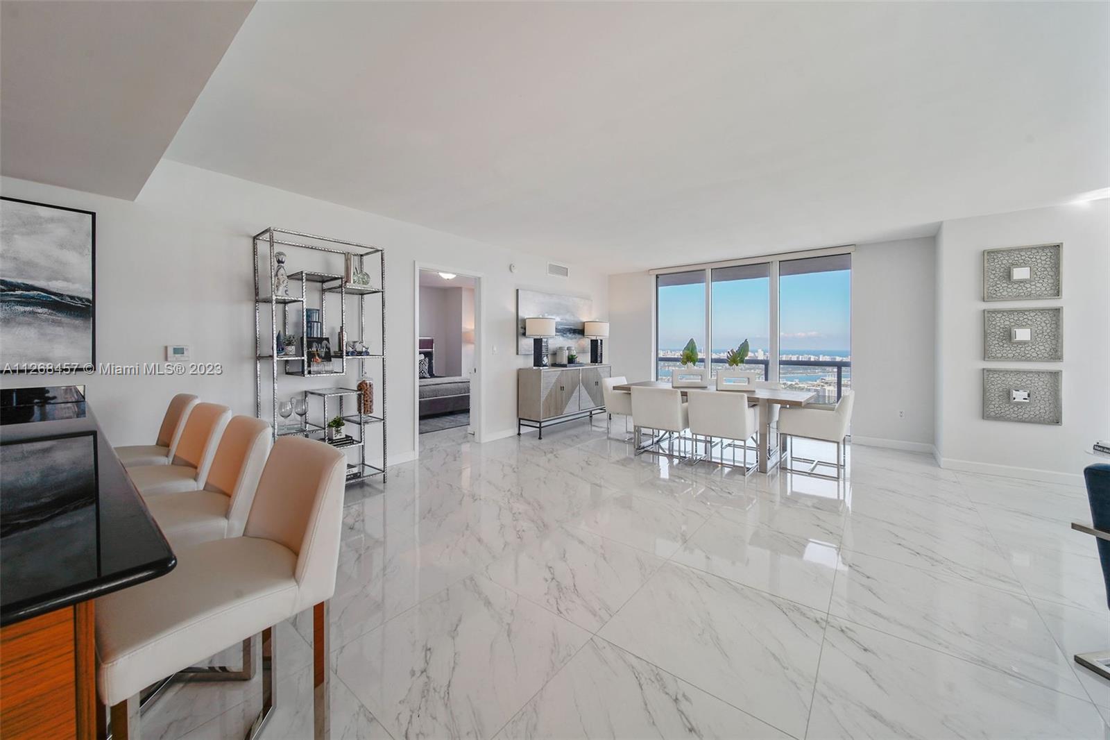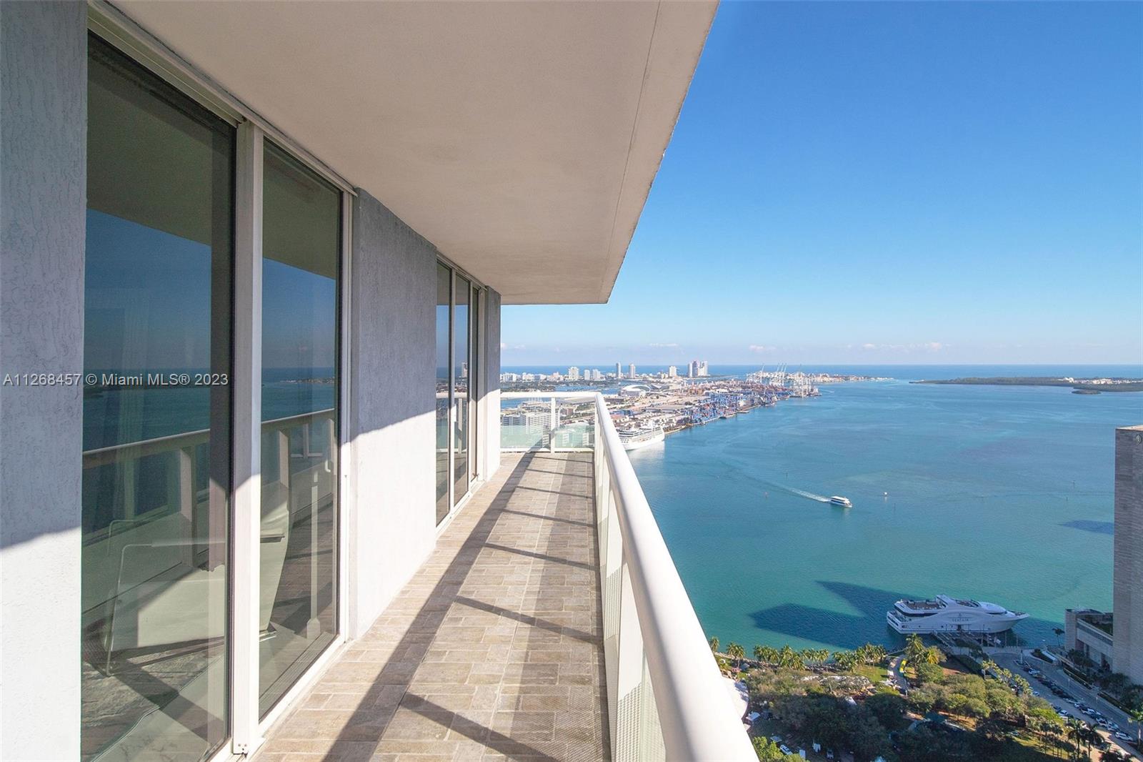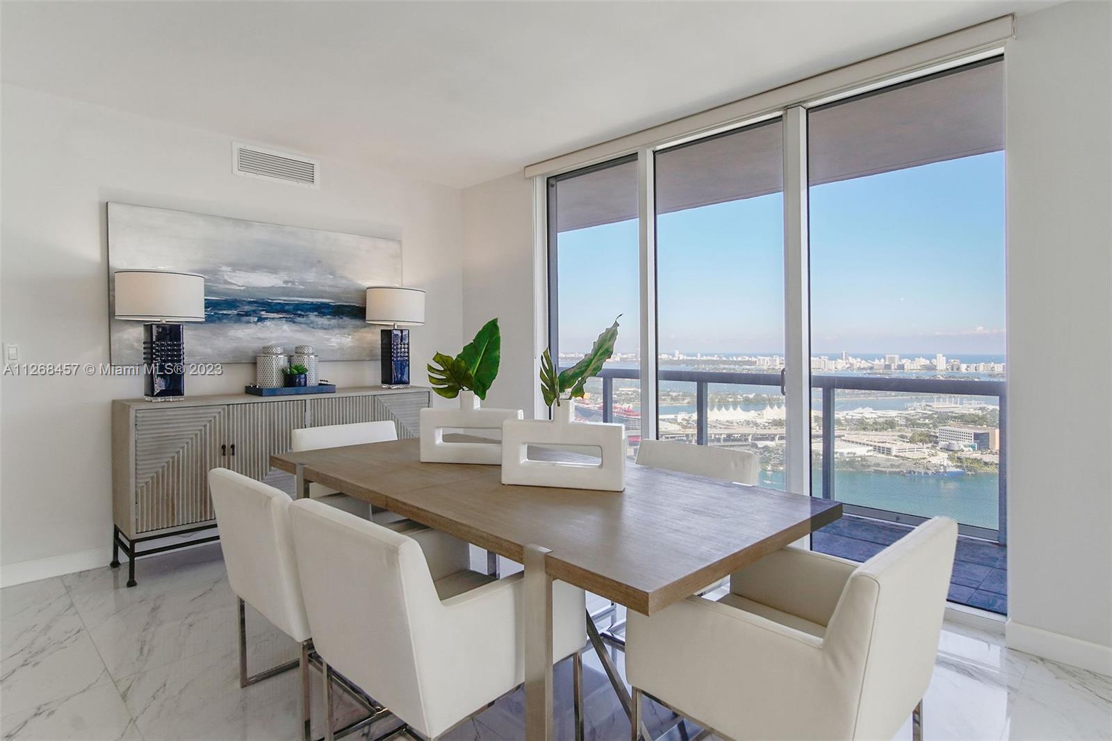 Enjoy spectacular views of Biscayne Bay, Port of Miami, and Miami Beach from this 3 bed/2 bath corner residence located in the heart of Miami. This Southeast corner unit features an open kitchen/living room layout, porcelain floors throughout, ample closet space, washer and dryer, tiled balcony and views from each room. 50 Biscayne is a full amenity building with an Olympic-size heated pool, state of the art spa, private fitness center, tennis, security valet parking and concierge service. Enjoy living across bay front park with the convenience of being minutes away from Miami’s top museums, restaurants, nightlife, financial district, best hospitals, public transit hubs and main highways.