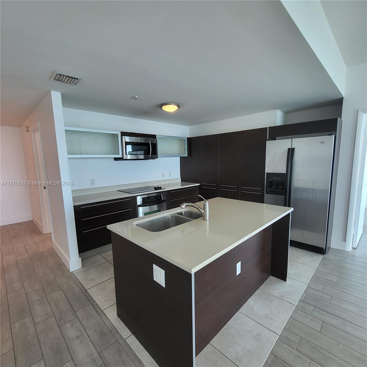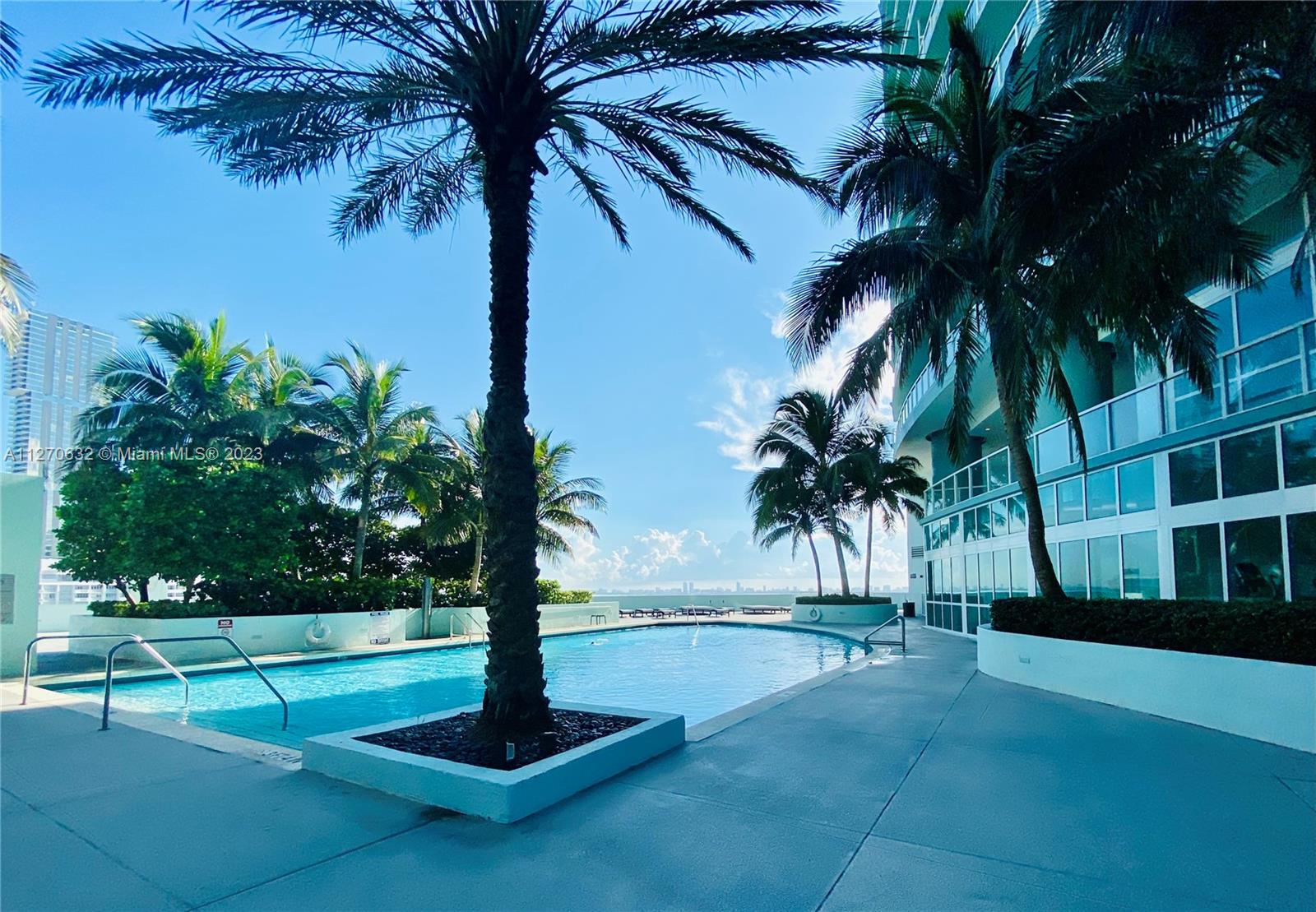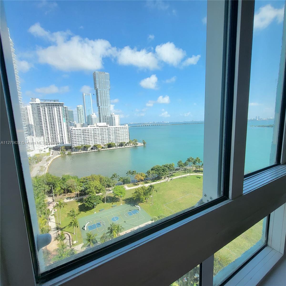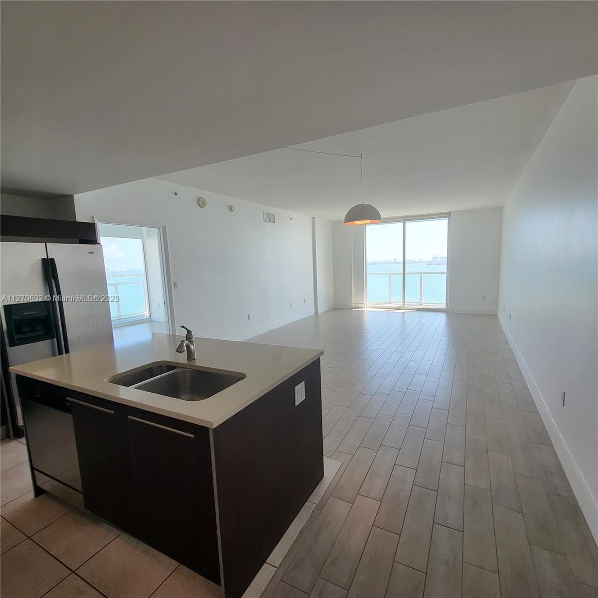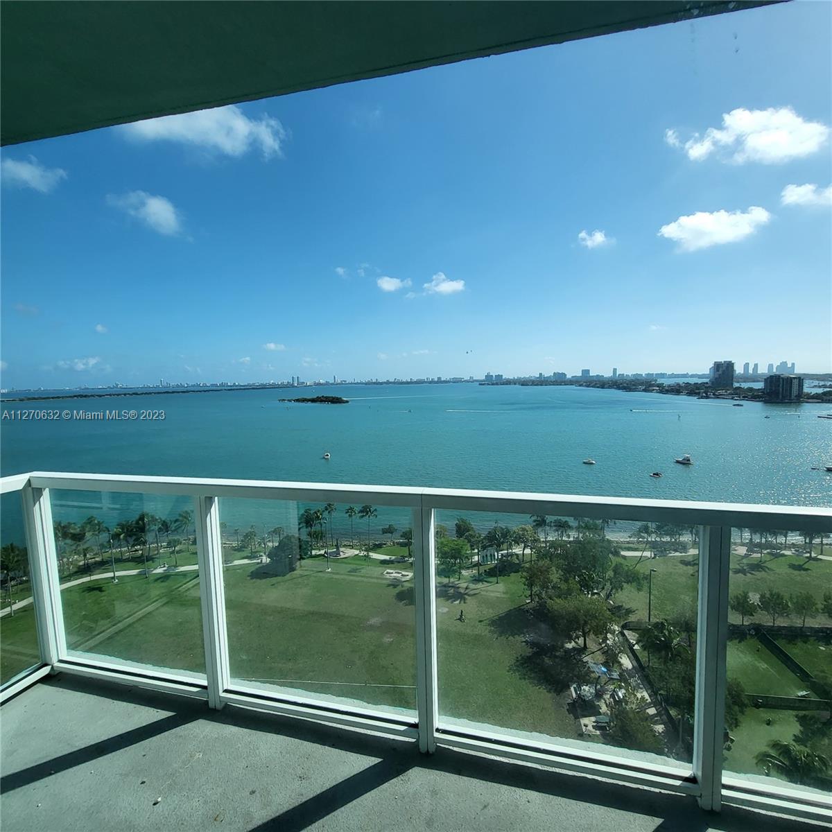 large unit featuring 2 bedrooms and 2.5 baths facing direct bay view and park. Grey tile floors, stainless steel appliances, two balconies. Building offers great amenities, suck as 2 pools, party room, well equipped exercise and yoga/stretching room and garage parking. Right in from of the park , walking distance to restaurants and supermarkets, very conveniente to access Venetian Cswy and I-95.