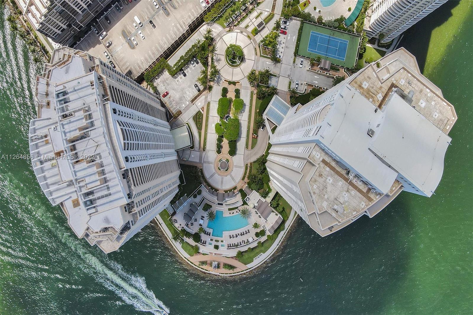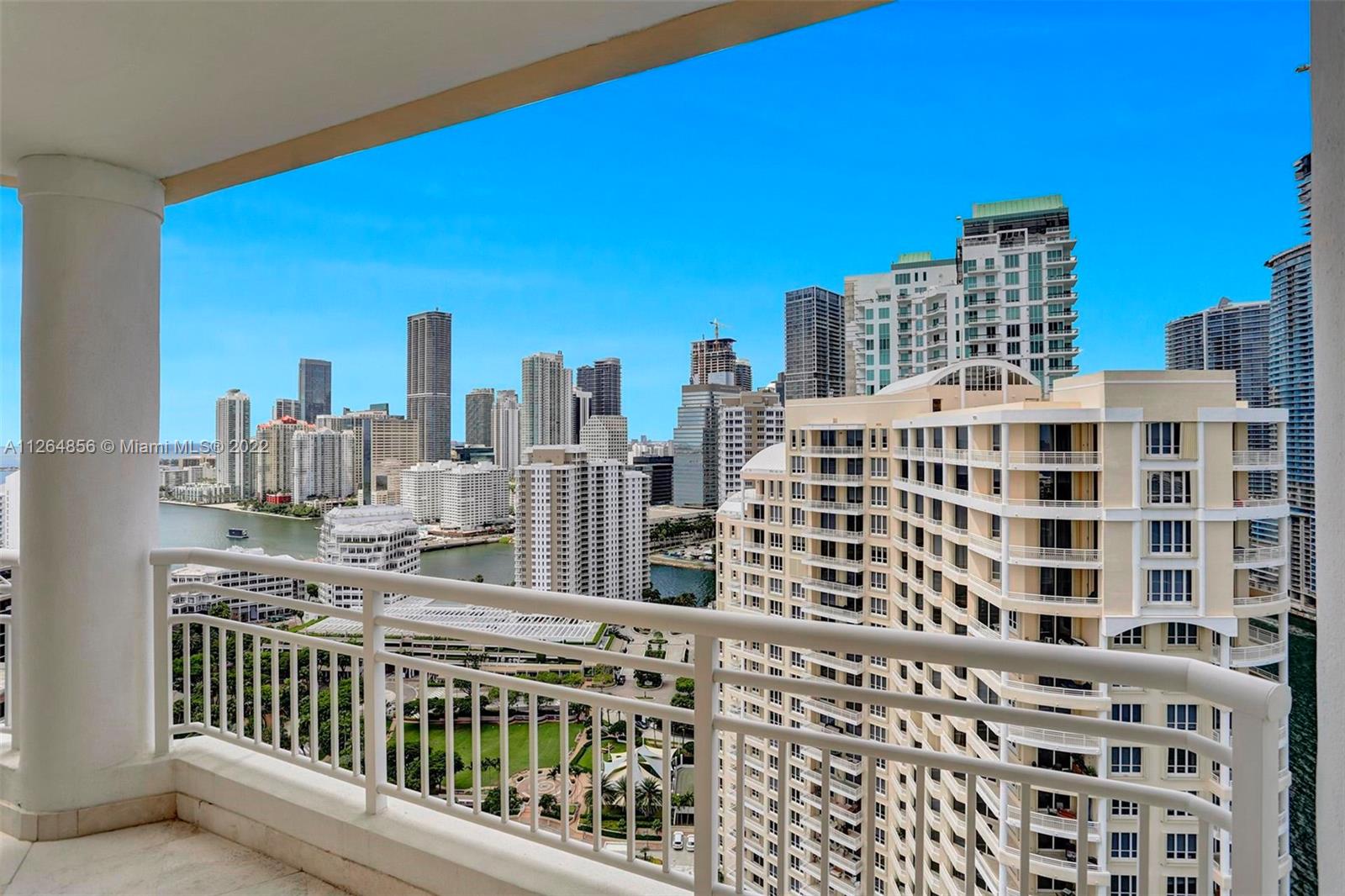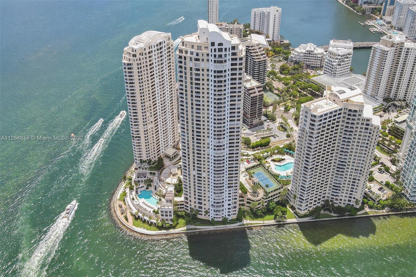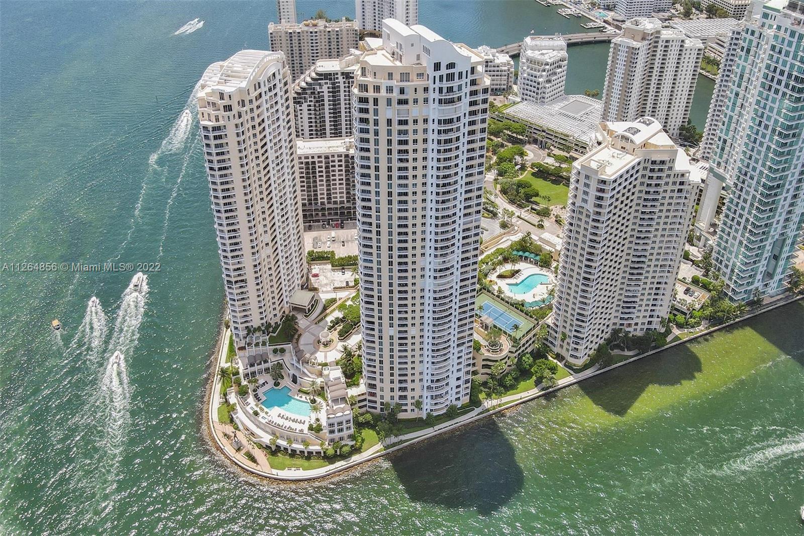 Extraordinary unobstructed views of the bay, river, and astonishing city lights from two wraparound huge balconies providing an 180 degree view. Do not miss out on this corner unit located at exclusive Brickell Key Island. With a well-designed split-floor plan and full of light, this unit provides a unique North and Southwest exposure. Only 6 apartments and 4 elevators per floor. Marble and wood floors, ss appliances, custom closets, laundry area, 2 side by side parking spaces and a storage area. Impact windows and shutters. Unit in excellent condition, ready to move in. Resort-style amenities, including a two-story, fully-equipped fitness center; a bay front pool; a bbq area; tennis, squash, and racquetball courts; a business center; concierge and valet parking services. Easy to show.