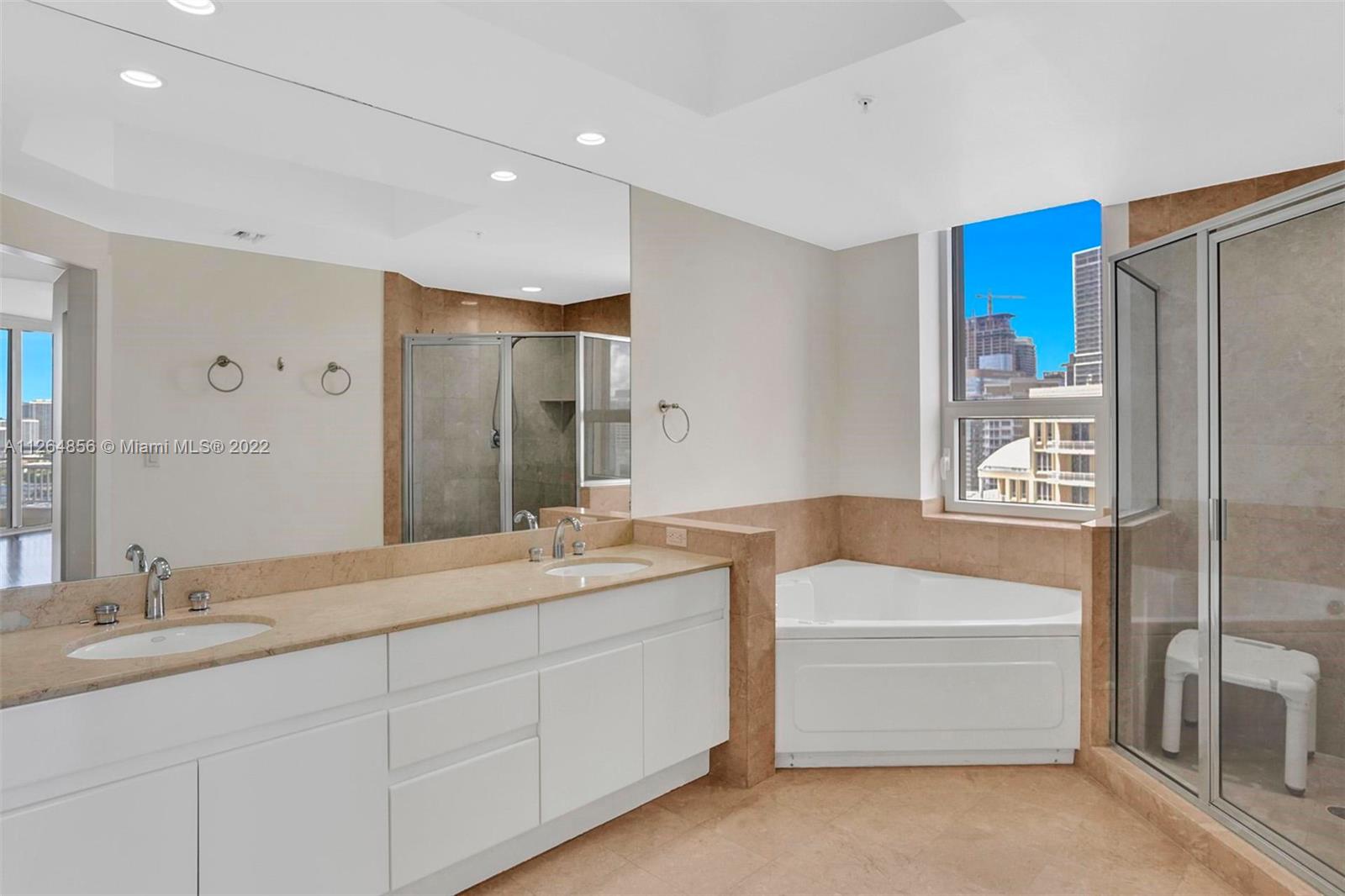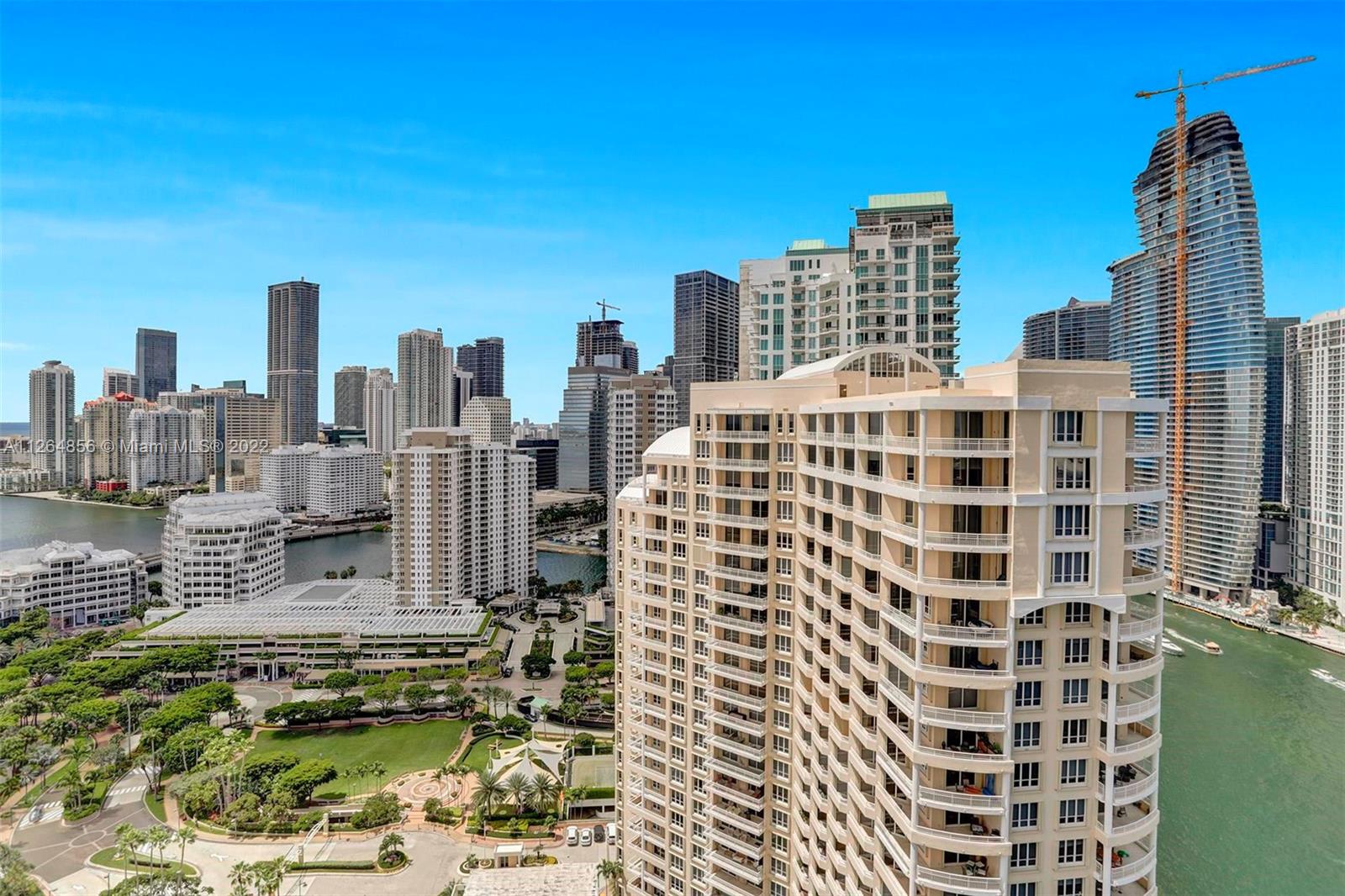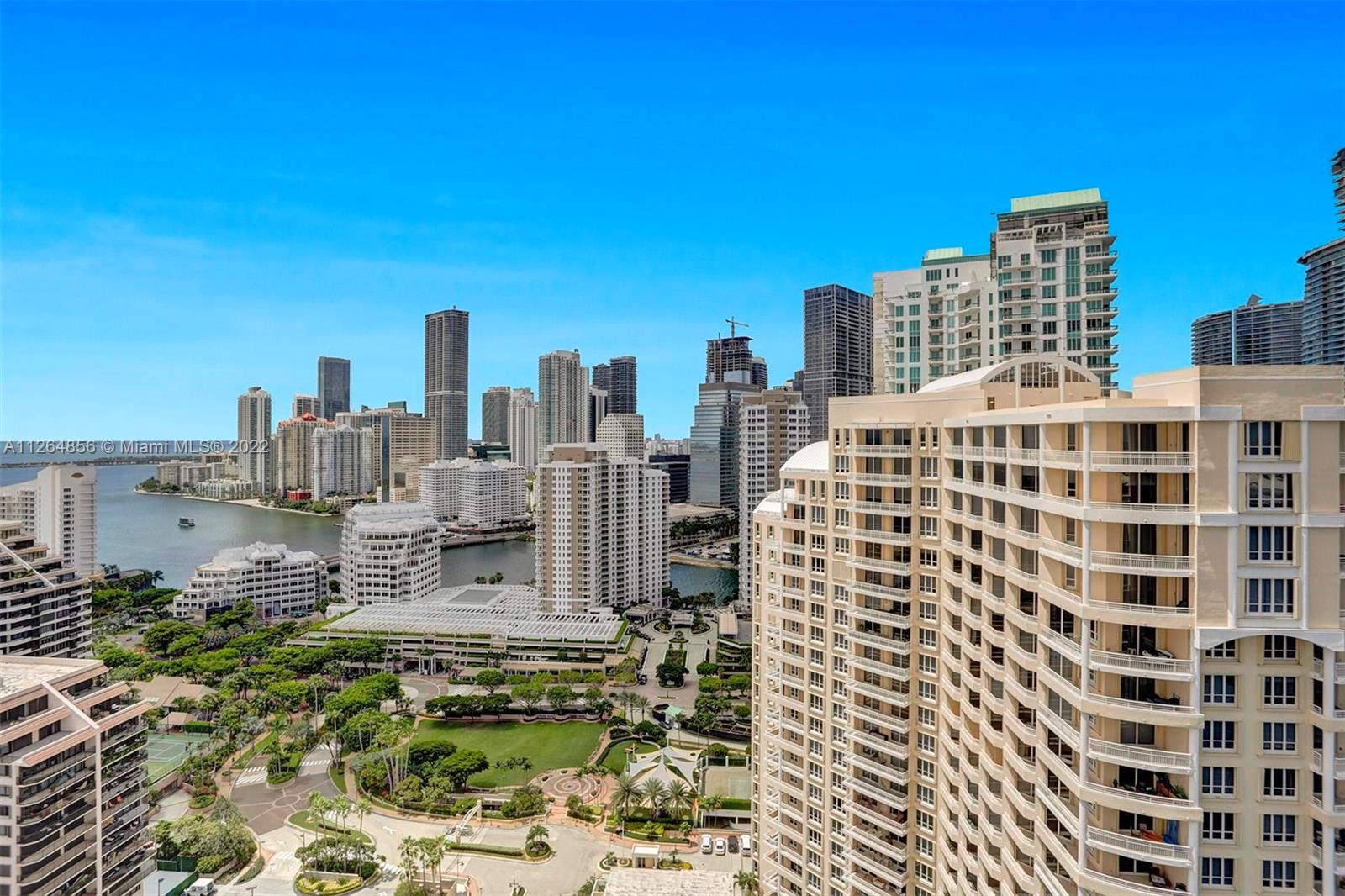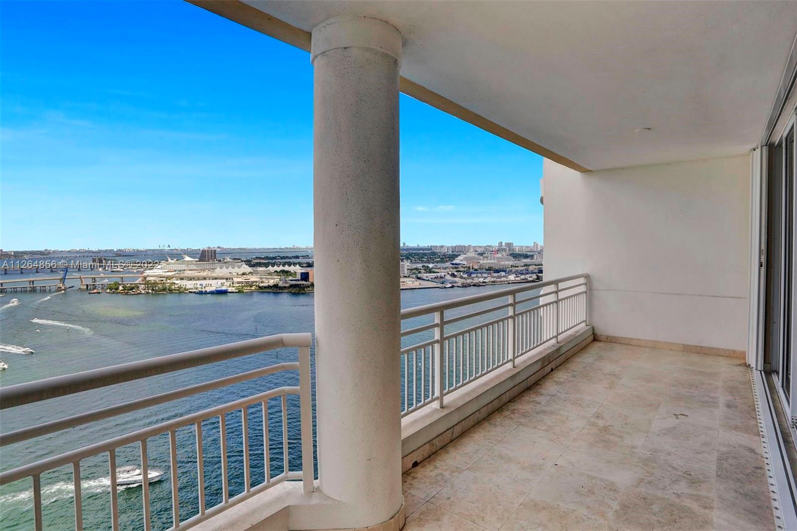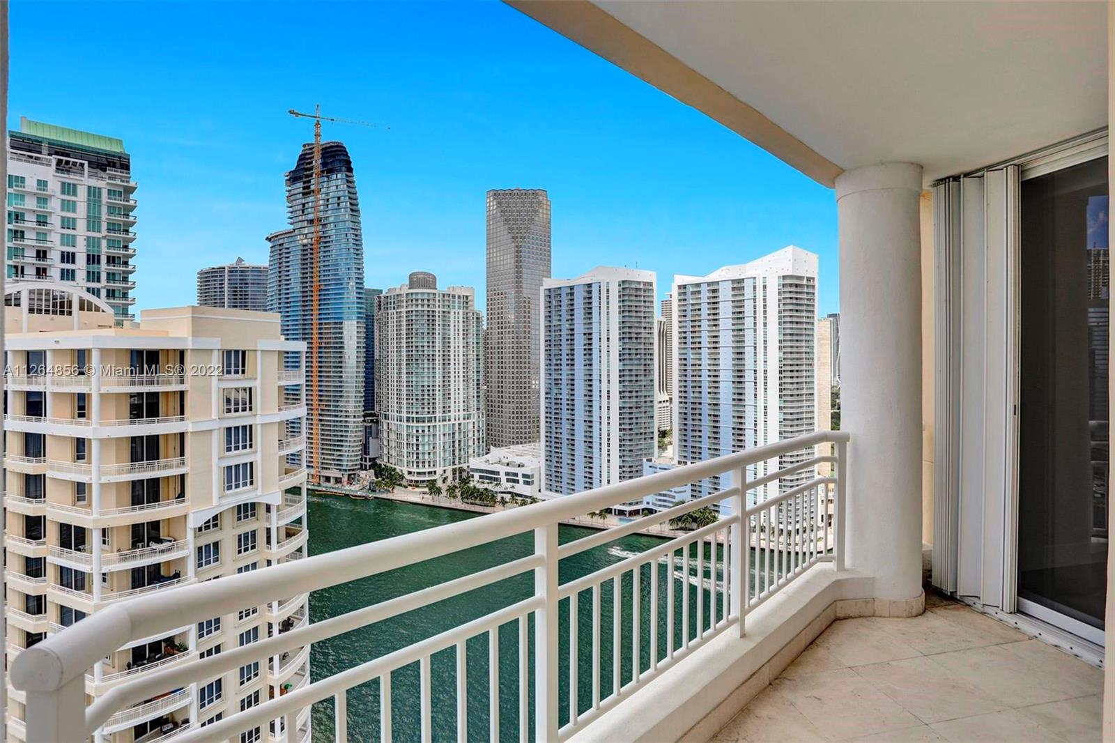 Extraordinary unobstructed views of the bay, river, and astonishing city lights from two wraparound huge balconies providing an 180 degree view. Do not miss out on this corner unit located at exclusive Brickell Key Island. With a well-designed split-floor plan and full of light, this unit provides a unique North and Southwest exposure. Only 6 apartments and 4 elevators per floor. Marble and wood floors, ss appliances, custom closets, laundry area, 2 side by side parking spaces and a storage area. Impact windows and shutters. Unit in excellent condition, ready to move in. Resort-style amenities, including a two-story, fully-equipped fitness center; a bay front pool; a bbq area; tennis, squash, and racquetball courts; a business center; concierge and valet parking services. Easy to show.