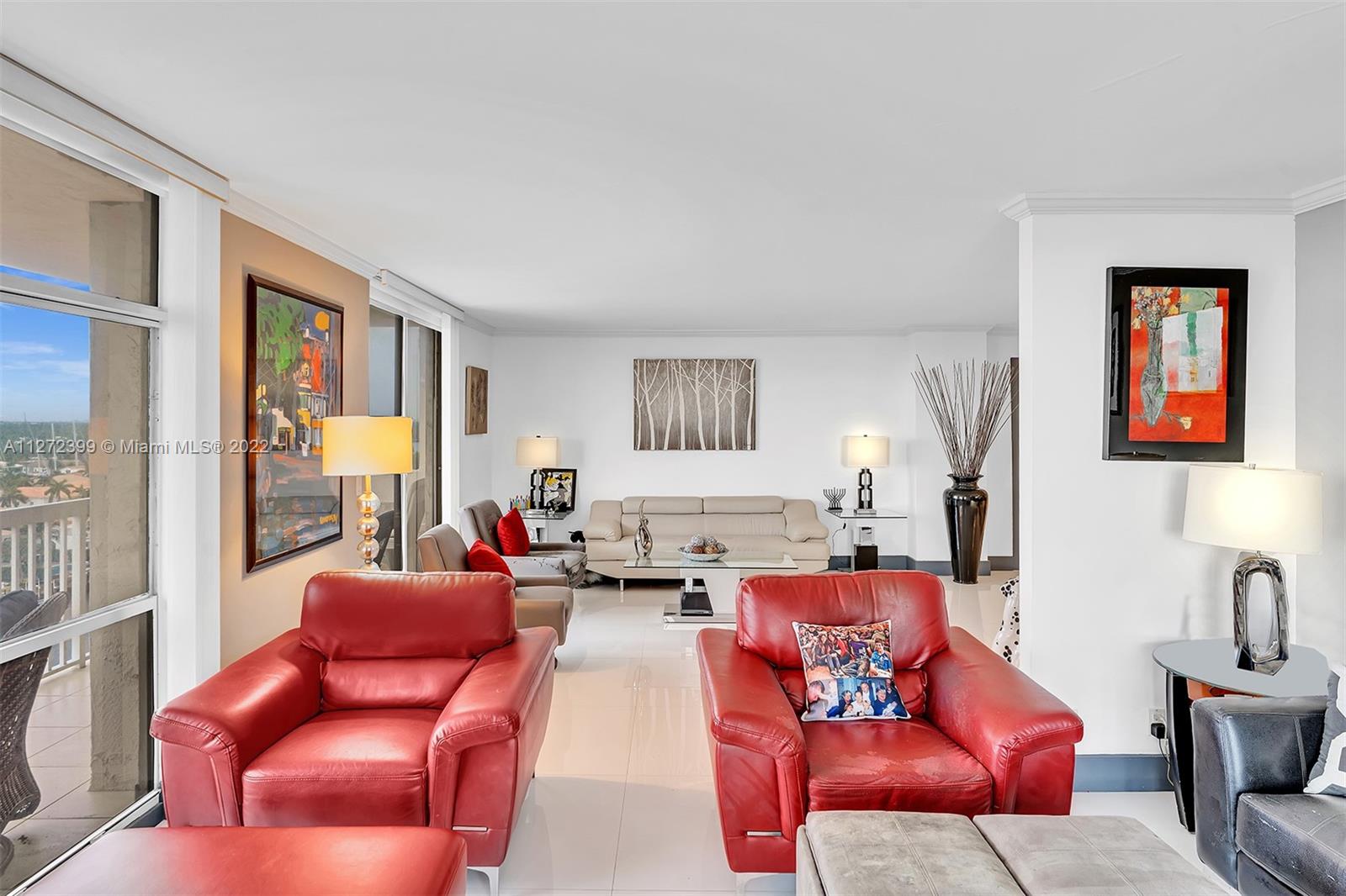 SPECTACULAR INTRACOASTAL & OCEAN VIEWS FROM THE WRAP AROUND BALCONY OF THIS REMODELED 2 BED/2 BATH SPACIOUS UNIT. NEW HURRICANE IMPACT WINDOWS WILL BE INSTALLED BY THE ASSOCIATION AT NO CHARGE. PORCELAIN TILE FLOORING, MODERN KITCHEN FEATURES JENN AIR APPLIANCES, GRANITE COUNTERS W/CONVENIENT COUNTER SEATING. LIVING ROOM IS AN “L” SHAPE DESIGNED TO BE OPEN BUT CAN EASILY BE CLOSED OFF AS THE SECOND BEDROOM. THE PRIMARY BEDROOM IS LARGE W/A BEAUTFUL REMODELED BATHROOM W/HUGE SPA LIKE SHOWER, SEPARATE ENCLOSED TOILET & LARGE WALK IN CLOSET. THE SECOND BATH WELL LOCATED NEAR THE SECOND BEDROOM IS REDONE AND HAS AN OVERSIZED SHOWER W/TWO SHOWER HEADS FOR TOTAL LUXURY. THE UNIT FEATURES MANY CLOSETS & THE BEST PARKING SPOT IN THE BUILDING! ENJOY EXERCISE ROOM, POOL, BILLIARDS, STORAGE, & MORE!
