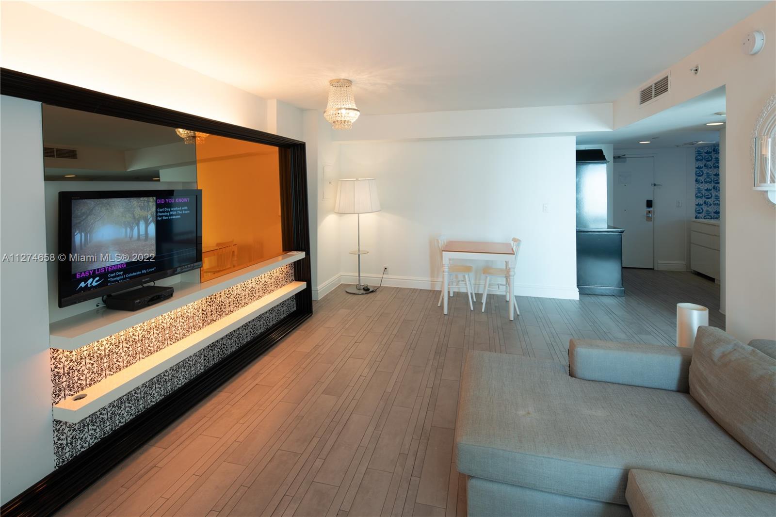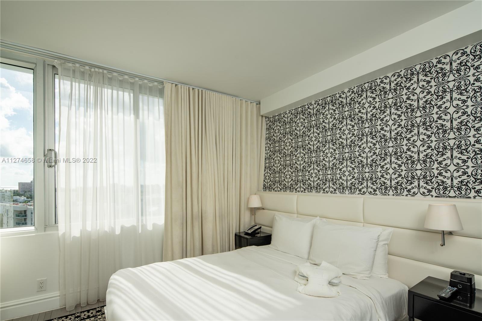 STUNNING BAY AND OCEAN VIEW APARTMENT. Furnished 1 bedroom with king size bed, wall kitchen, 1 bathroom, large living room with sofa bed. The recently renovated iconic condo hotel located in the hearth of South Beach allow the owner to use the unit as an Airbnb, or join the hotel program. This apartment can also be rented yearly or minimum 6 months. It is an excellent investment in Miami Beach. Owner and guest can enjoy the full amenities of a luxury hotel such as pool bar, restaurant with bay view, pool, gym, spa, valet parking.