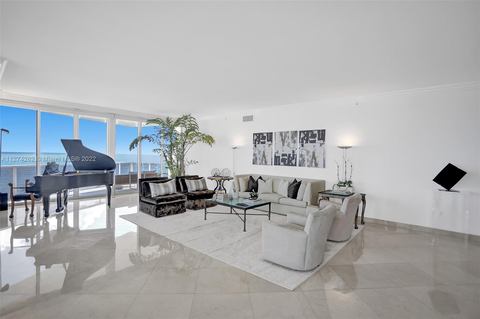 Stunning unobstructed direct ocean, oversized 3800 sq ft condo spanning the entire NE corner of the Prestigious Bellini Bal Harbour Tower. Private elevator entry. Large living & dining area with wraparound terrace on the ocean. Huge eat-in kitchen facing the ocean. Oversized direct ocean master bedroom with his & her baths & ample closet space facing the ocean. Open Den and second bedroom have partial ocean views. Maid's room w/ private bathroom. Property is being sold unfurnished. The building is one of the newer towers in Bal Harbour offering boutique privacy. 4 residences per floor. Full service including valet, concierge, doorman, pool, gym, restaurant, and beach service. Walking distance to Bal Harbour shops and houses of worship.