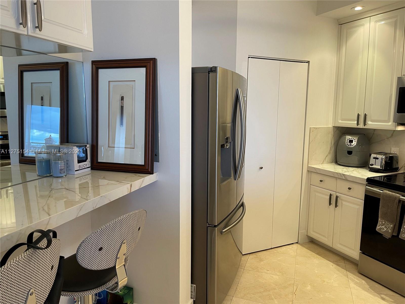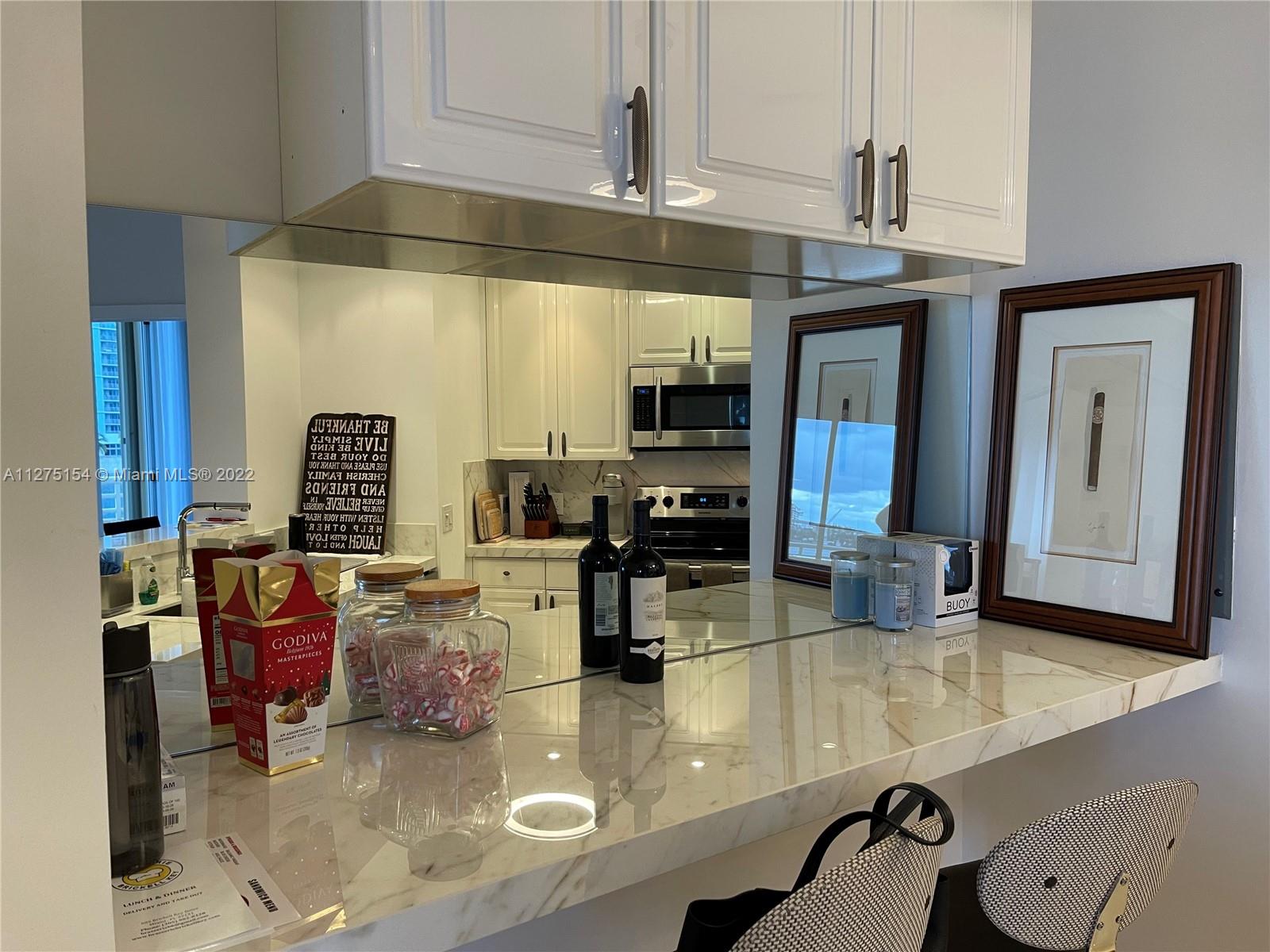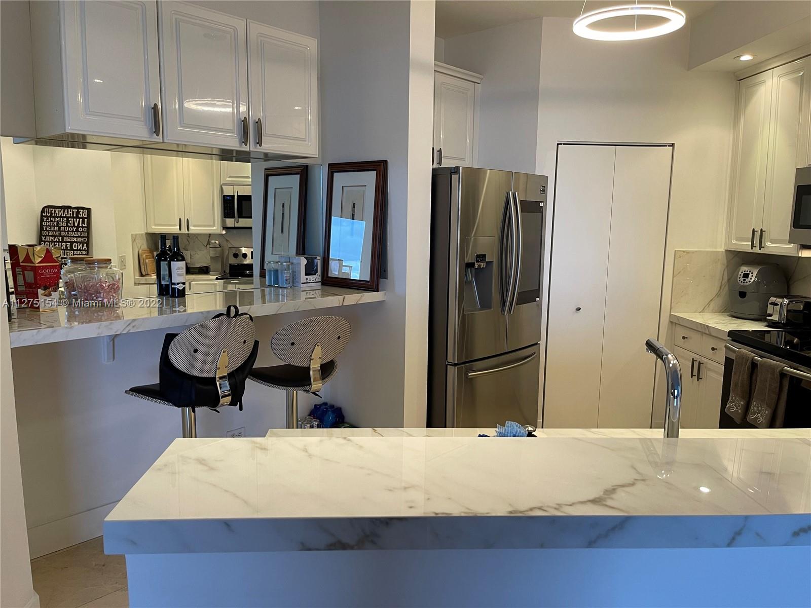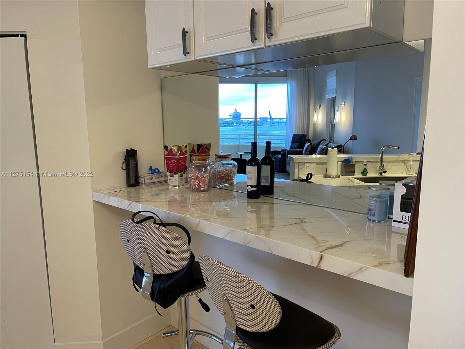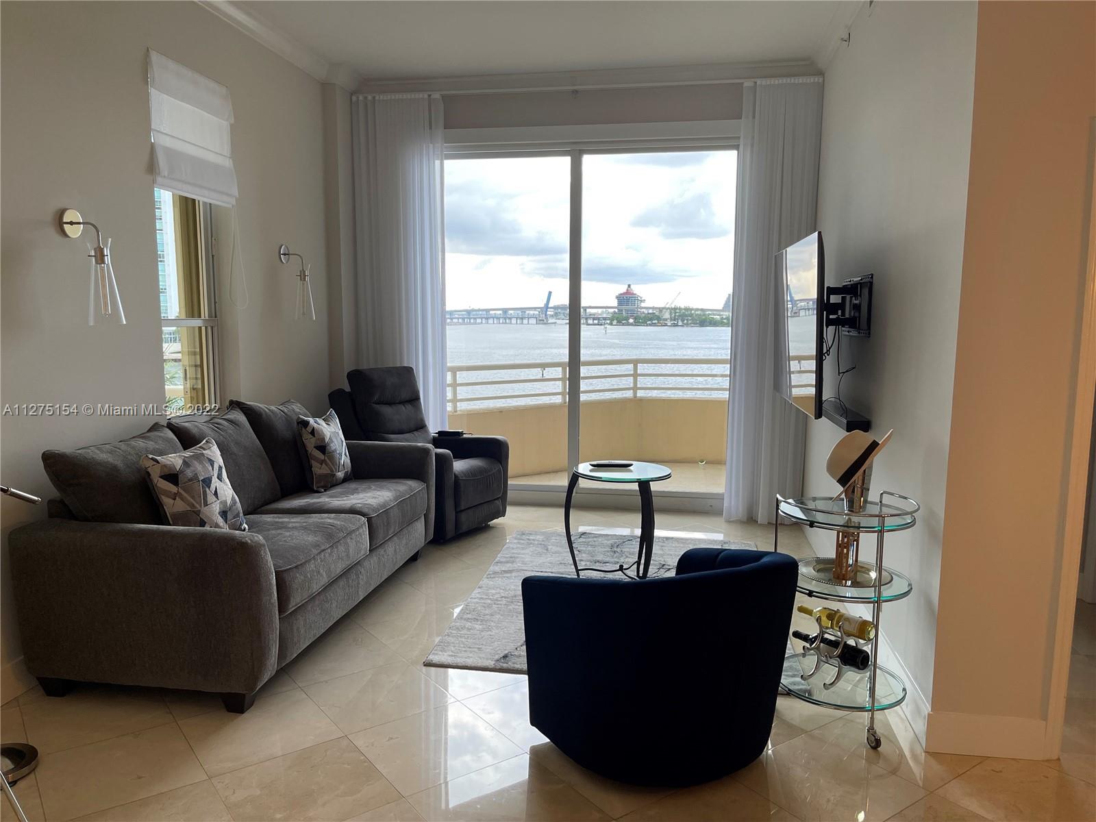 Unobstructed water views poised just above sea level, watch the parade of boats sail by from this 4 th floor newly renovated 2 bed/ 2 bath split floor plan unit. 10’ ceilings, newly upgraded, marble in living area, wood porcelain in both bedrooms. New open kitchen w/ new counter tops, all new appliances. All rooms have their own floor to ceiling sliding glass doors to balcony. 1 parking space & storage all on same floor of unit. Full service building with lots of amenities. New furniture may be included in sale.