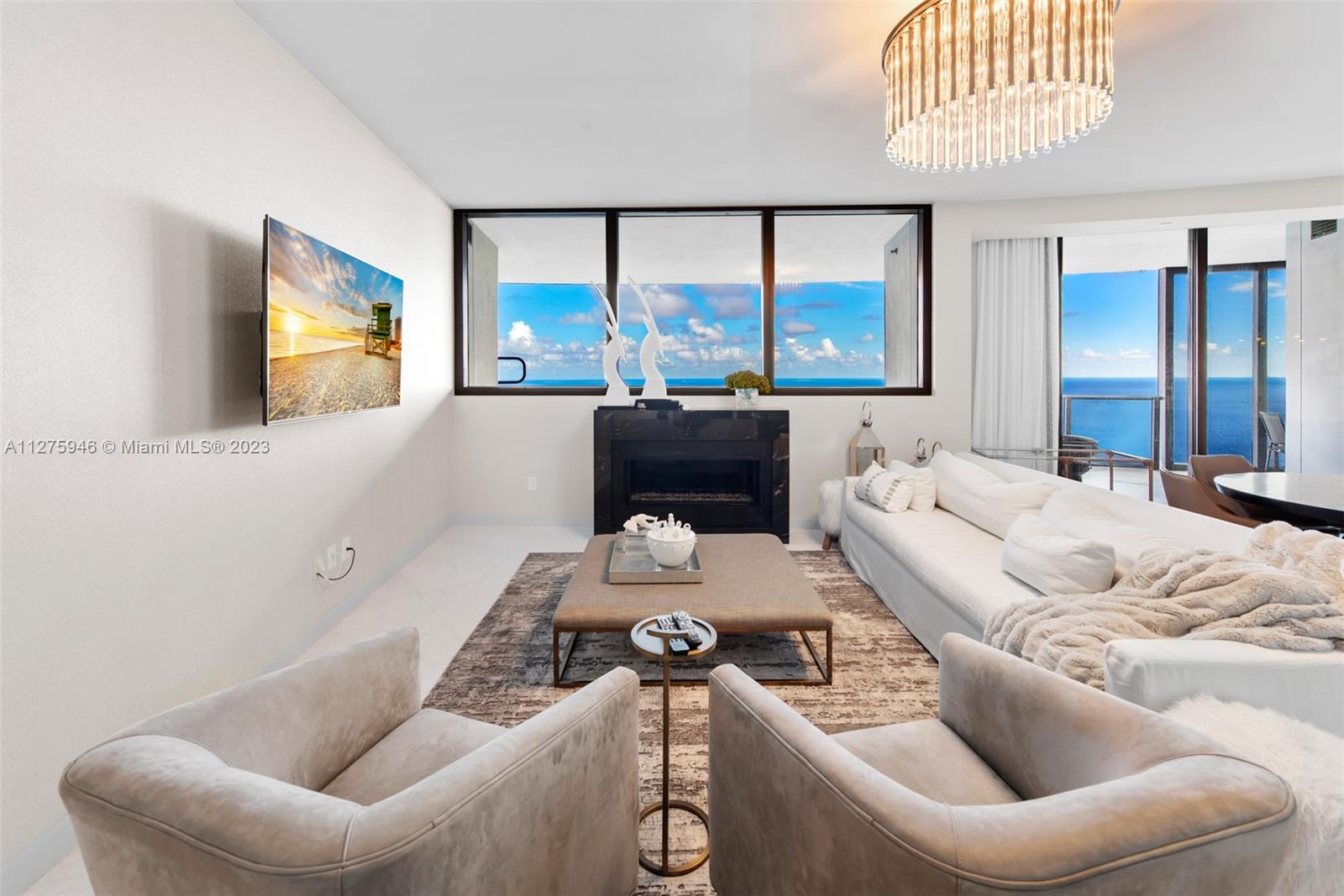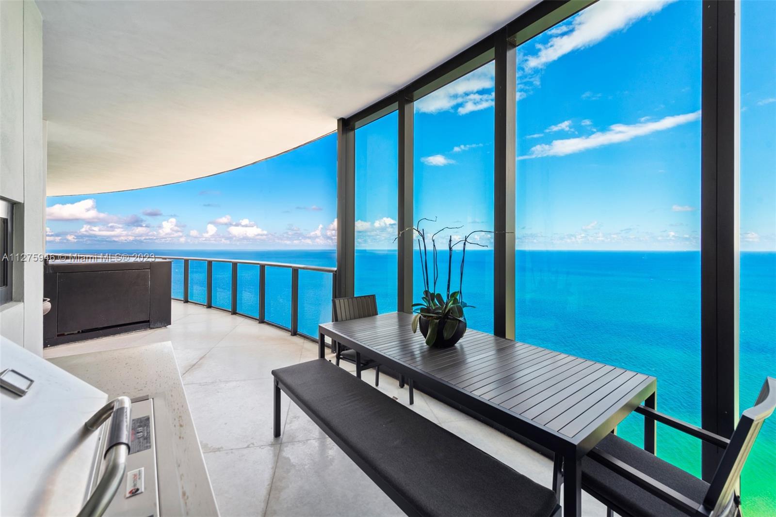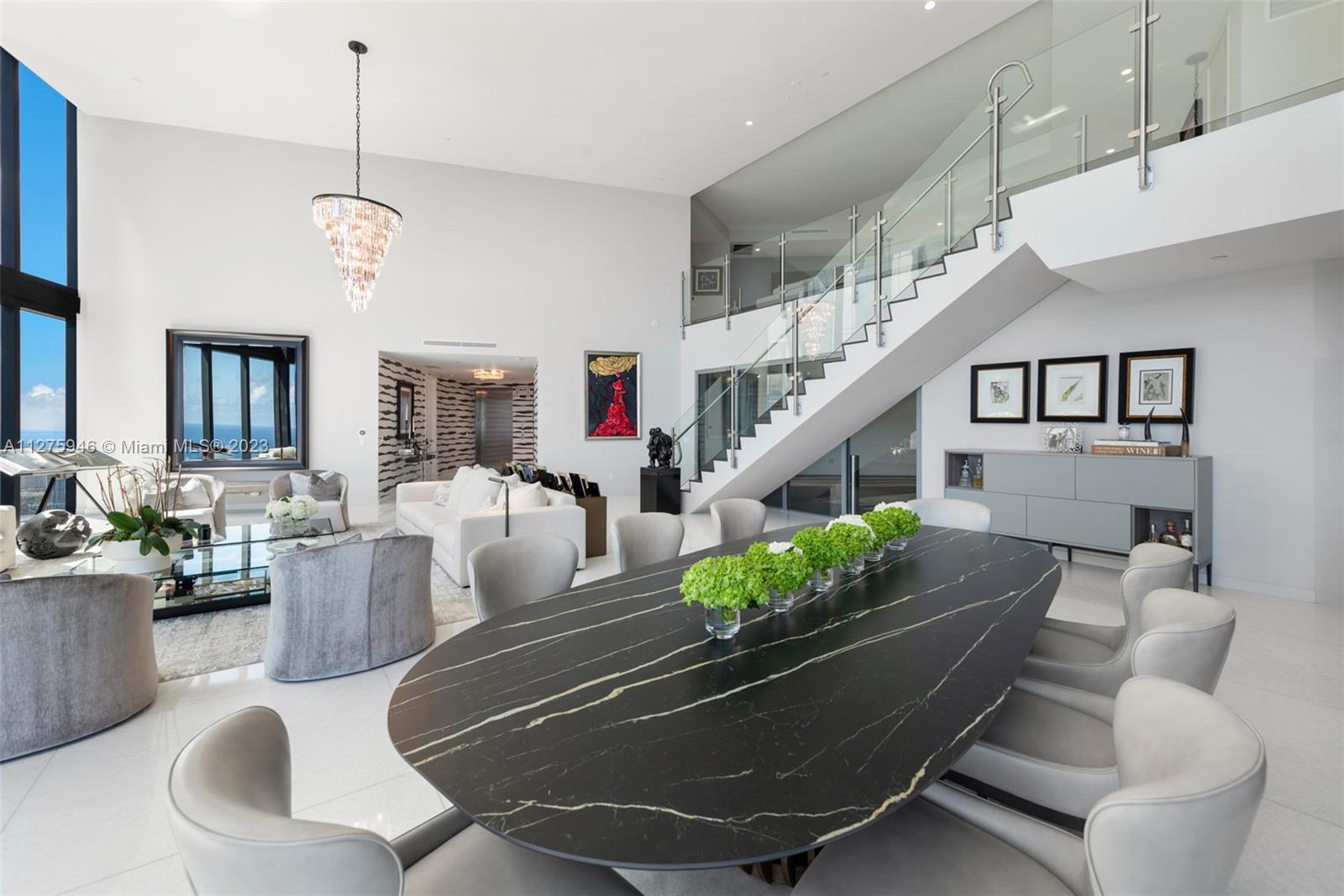 This is the last lower PH, a true high-end oceanfront residence, ( Double level floor plan with 22 foot windows in the living room ) 48x48 Italian marble floors flow throughout, two spectaculars master suites,2 impresive terraces equipped with a ultra modern pool, summer kitchen, lounging area as well a enclose terrace for a beautiful breakfast or a romantic dinner. One of the few units with 4 car garage and a private elevator inside the unit, private beach club for residents only, beautiful sunset pool, building amenities: Movie theater, private restaurant, state of the art gym, VRX motion Z-55 racing simulator.