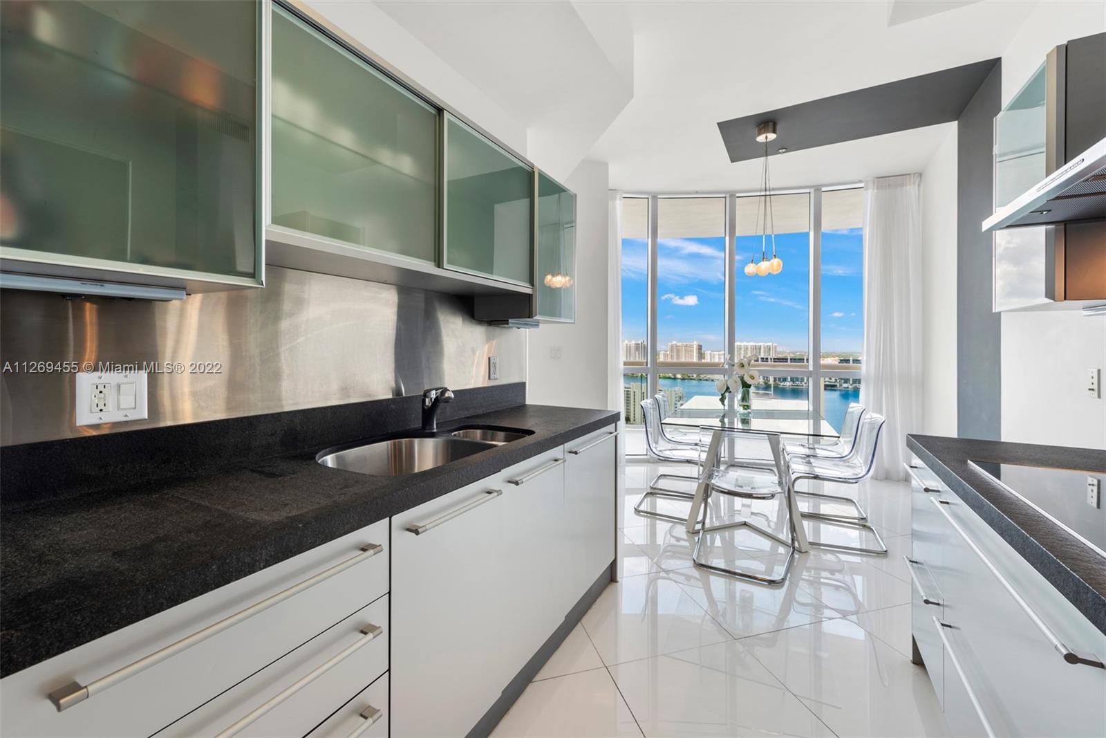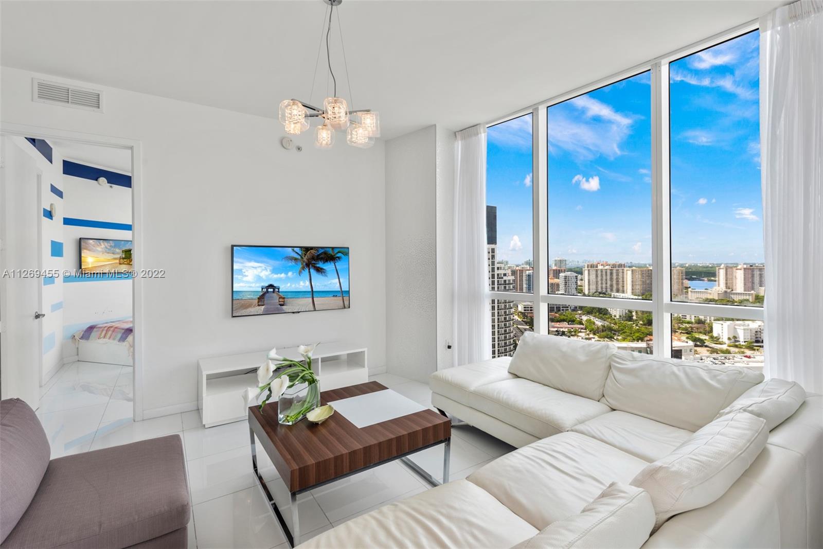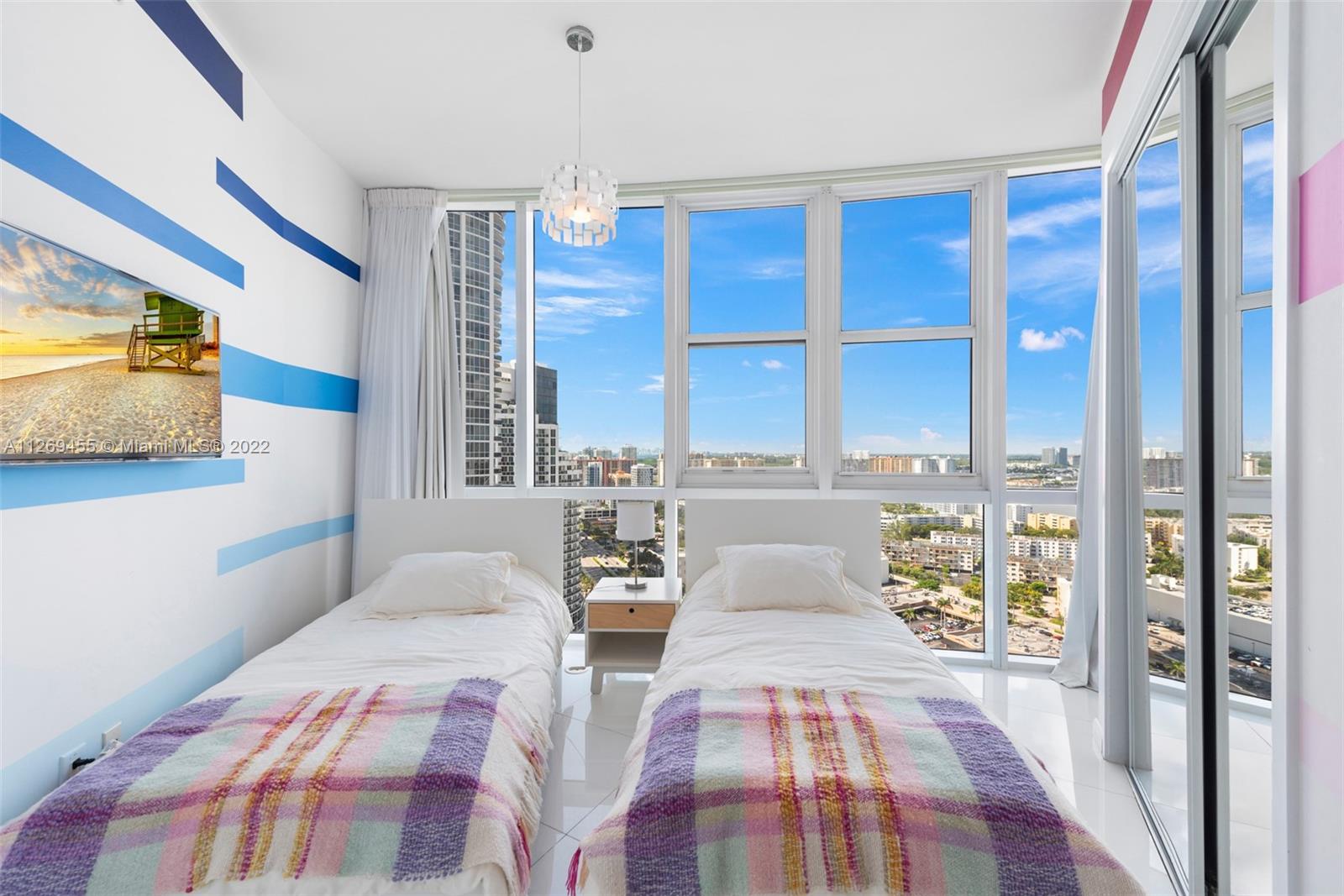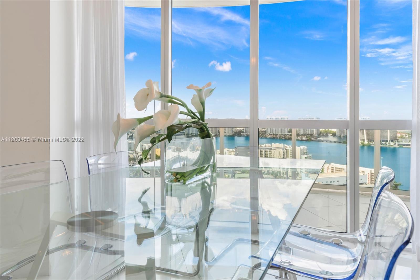 Enjoy the finest that Sunny Isles has to offer in this spacious corner unit at Trump Royale. Experience hushed privacy in your dedicated high-speed elevator as you walk into this natural light-filled 2/2 sanctuary on the 36th floor. West-facing floor to ceiling windows ensure that the splendor of Miami’s golden sunsets will always be at your fingertips. Simply imagine savoring your morning coffee on the palatial glass-enclosed terrace just off of the dining room. Kitchen is anchored by a Sub-Zero refrigerator and wall mounted appliances. Custom built Murphy bunk bed concealed in the living room for spontaneous guests. Residents have access to all of the indulgent amenities including the luxe lagoon-shaped pool, including the amenities of the Trump International Hotel.