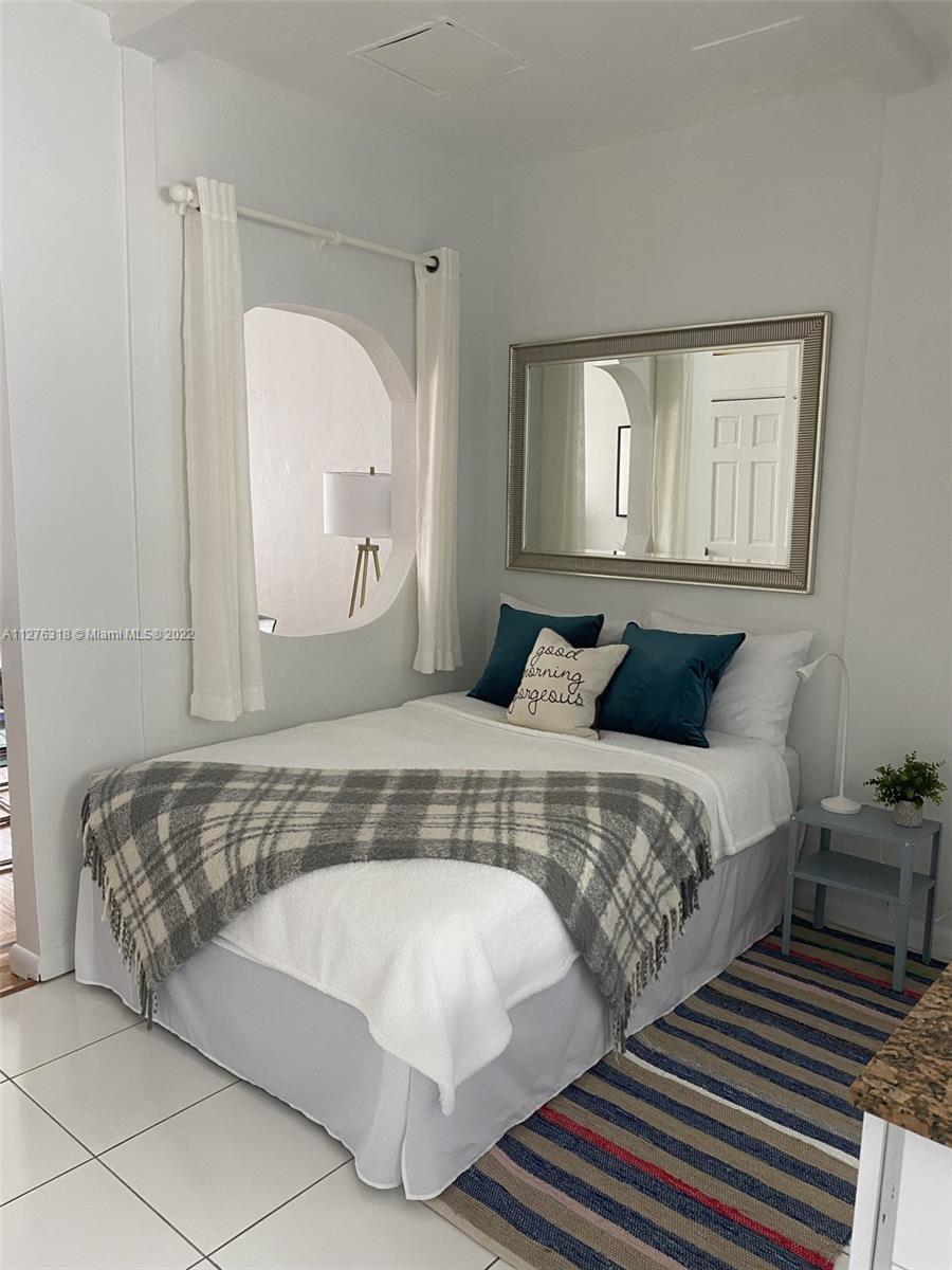 Furnished and fully equipped studio. Beautiful, spacious and bright, 2nd floor apt in a well maintained Art Deco building, building just passed the 10yr recertification. Located one block from Flamingo Park and a few blocks from the ocean. Recently updated with new fridge, new range, new a/c, new furniture, remodeled bathroom, restored wood floors and freshly painted. two large closets, washer/dryer inside the unit. Maintenance includes reserves and rentals are allowed twice a year, pets allowed.