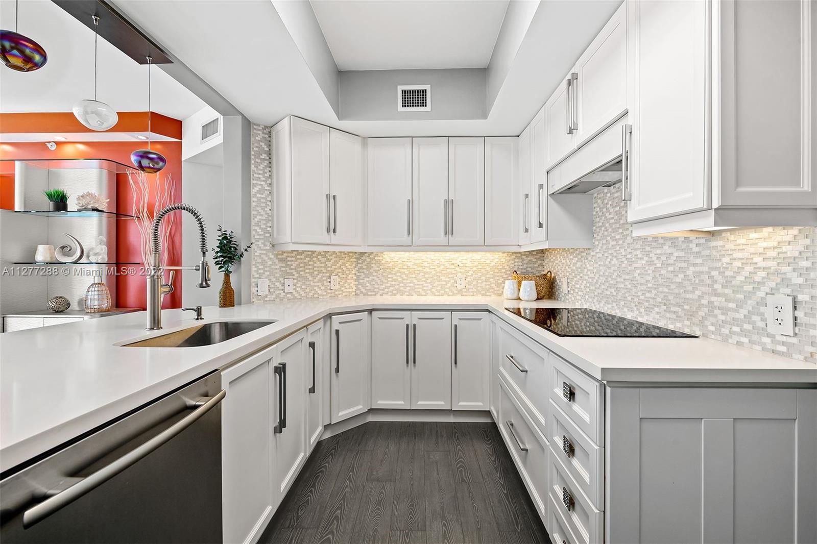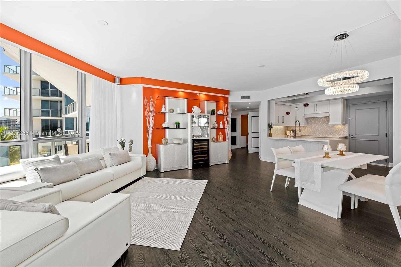 Best Price at Ocean Palms! Gorgeous, Furnished, Turn-Key, & move in ready! This 4th floor residence has been beautifully re-imagined & designed. Semi private elevator & Private Foyer entry. High end "Wood Grain" porcelain plank flooring throughout living areas. Spacious living/dining room. Completely remodeled kitchen w/custom cabinetry & high-end appliances. Massive master suite w/ huge walk in closet & spa like bath. Two spacious guest suites, each with their own private baths. Two very large private patios overlooking the gardens & some ocean views. Five star, resort style building with valet, concierge, Pool & Beach Attendants with Towel & Chair service, Two Story fitness center, Saunas, Tennis & Basketball courts, media room, social room, Grill Area, garage parking, & more!