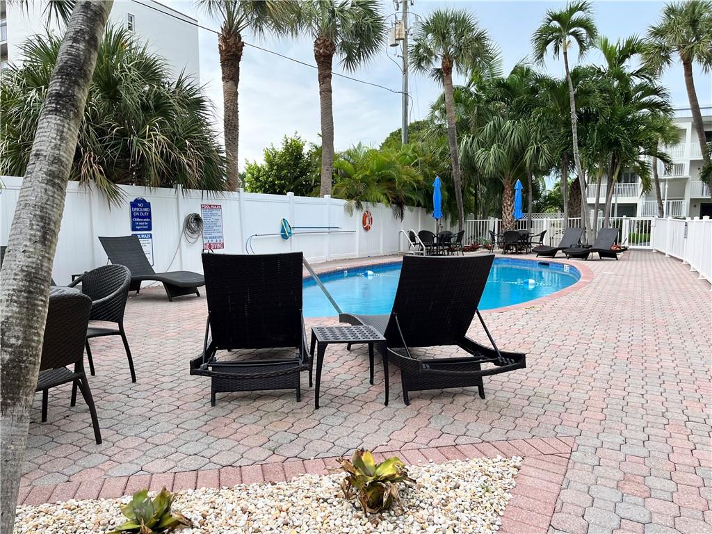 Enjoy this cozy beach getaway part-time or year-round in this small (50 unit) building. Don’t miss this great 1BR/BA co-op with carport. Best deal in the complex. Neutral tile throughout. All impact glass windows and doors. Nice pool view from your spacious balcony. Small complex across from the beach with private beach access. 40-year inspection complete. Boat dock slips for residents based on availability. Close to the action of Lauderdale by the Sea & Pompano Beach. Close to oceanfront restaurants, shopping, the new Pompano Beach Fishing village and pier, hotels and more. Heated community pool. Common laundry. Additional storage locker. Ok to lease twice per year after 1 year ownership. Maintenance fee includes land lease. Secure building with key and/or gate code access only. Furnished