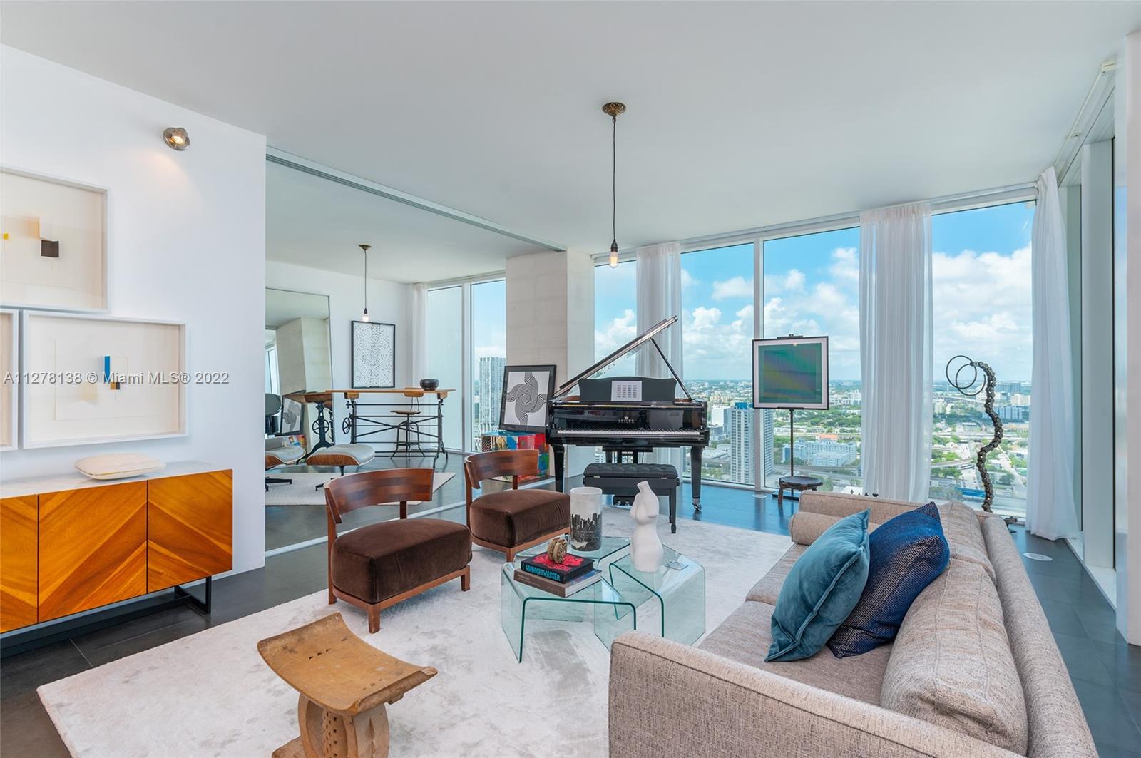 Stunning high-floor residence at Ten Museum Park has been completely renovated with modern high-end design and finishes. From the kitchen, bathrooms, and flooring, to the smallest touches, every detail has been thoughtfully executed. This is a one-of-a-kind property with large balcony featuring spectacular west views. Ten Museum Park is a full-service building with valet parking, fully staffed front desk, secure elevators and abundant amenities: gym, spa, sky terrace pools, and access to Bentley Beach Club in Miami Beach. Well managed, pet friendly, and rentals allowed. Minutes to Brickell, Wynwood, Miami Beach and MIA.