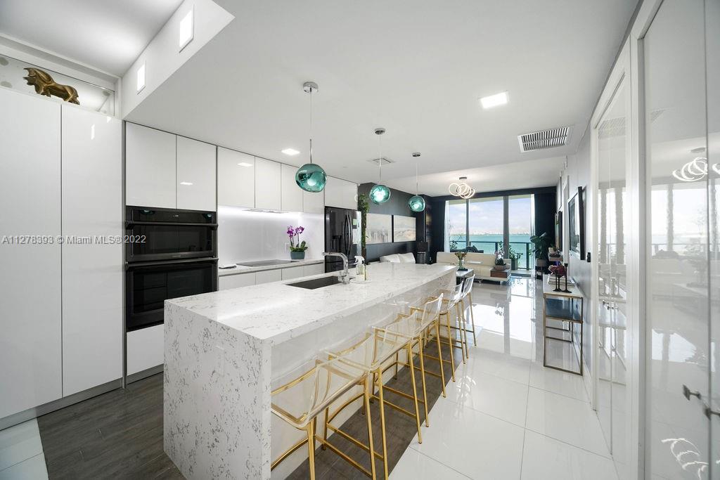 Spectacular direct bay views from this 2 bedroom, 2 bath condo. Unit has customized pieces, italian porcelanato and UPGRADED KITCHEN. This condo provides a private elevator and foyer, and 2 PARKING SPACES in the attached garage. State of the art building amenities include a gym, sauna, pool, tennis court, theater room, sky lounge, valet parking, and a club room. The building is conveniently located in the quiet area of Edgewater and close to the Design District, Midtown, Wynwood, and Downtown.