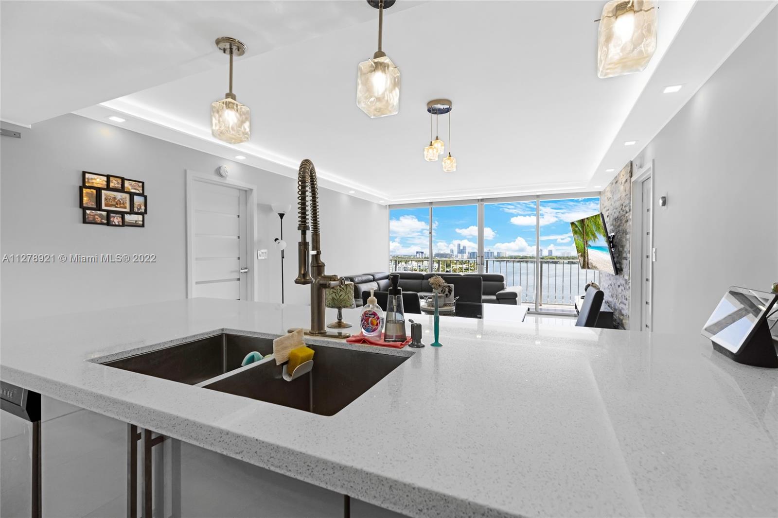 The most desirable line in the entire building has just hit the market. Breathtaking water views welcome you as you enter the unit. The unit has been completely remodeled with top of the line upgrades thru-out. No expense has been spared to bring you the best of the best. Unit features a split floor plan with 2 ensuite bathrooms, porcelain tile flooring thru-out, open style kitchen with quartz countertops with stainless steel appliances, linear A/C diffusers, new modern style doors, washer/dryer in unit, newer AC & the list goes on. This is truly a one of a kind unit that offers the best views you have ever seen. Unit comes with 2 parking spaces. Building has full reserves & qualifies for the lower down payment options. Come & Fall in love with this beauty. Call LA for showing instructions