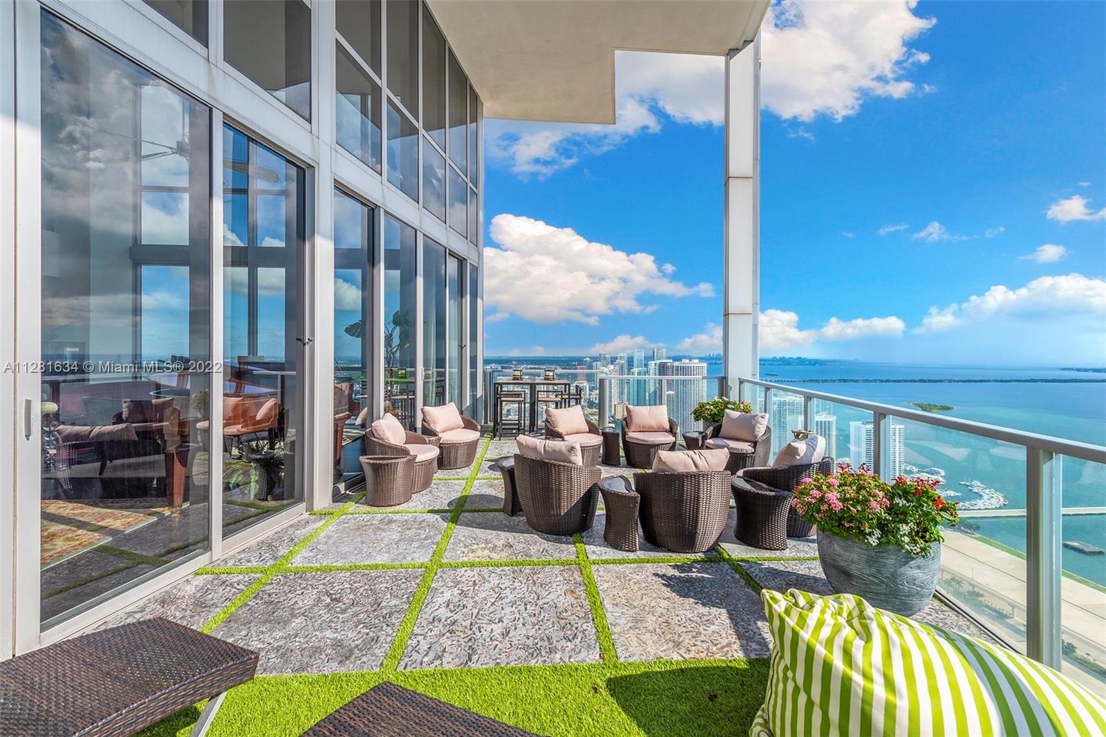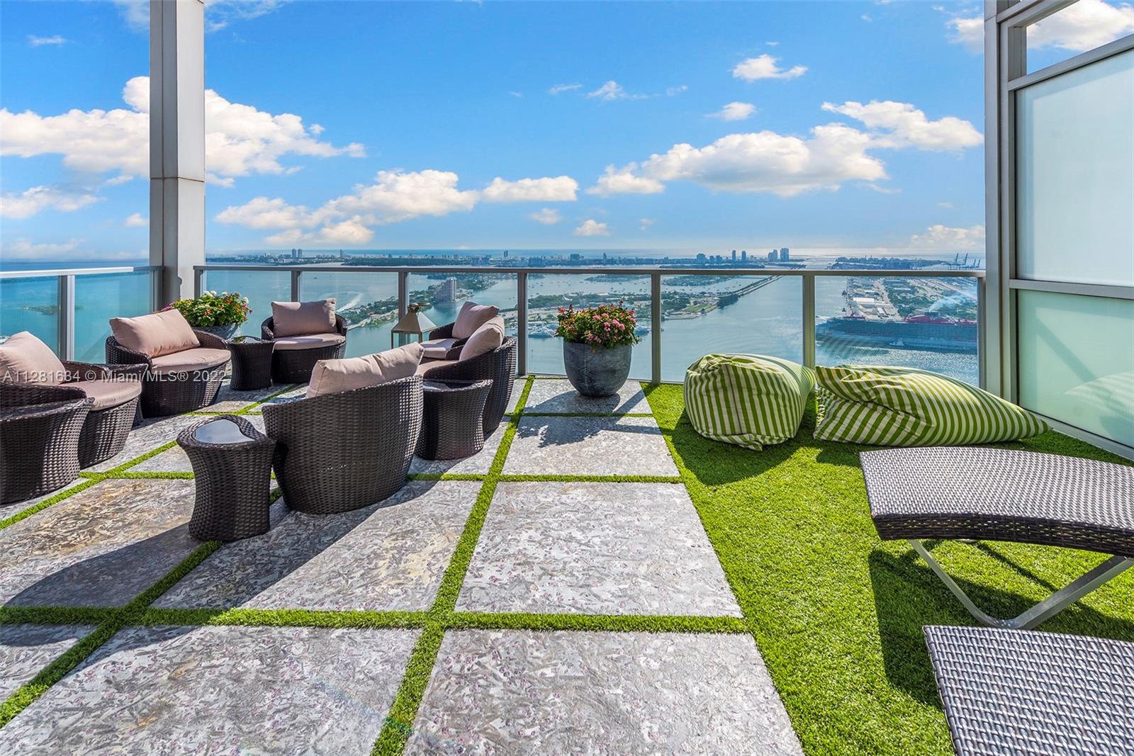 Best views in all of Miami from this corner 4bed/4bath masterpiece at Marquis Miami. PH level with 20' ceilings on 2 levels in a great layout. Direct water views overlooking Miami Beach and so much more. Warm and inviting with a massive balcony that was professionally designed for comfort and entertaining. Come see what it feels like to be above it all with stunning water views and proximity to Miami Beach and Brickell.