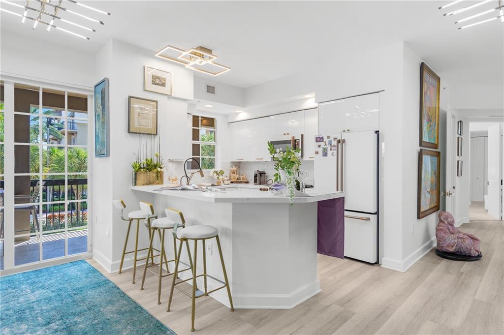 WOW - 3 Bedroom Corner with Palm Trees & Ocean View! Wraparound Balcony, Many Recent Upgrades include: Kitchen (Quartz Countertops & New Appliances), Bathrooms (Quartz Countertops), New Washer/Dryer, Main Living Area (Plank Style Floors), Stylish Lighting. Has extra “Optional Room” in addition to the 3 Bedrooms. Plus 3 full Baths, 10' Ceiling & 2 GARAGE SPACES. Villas by the Sea is the NEWEST CONDO COMPLEX in this Beach Area. ONLY 45 RESIDENCES IN THIS LOWRISE BOUTIQUE BUILDING. Private Beach Club overlooking Beach & Atlantic Ocean with Beach Access. Club has Poolside Cabanas, Kitchen Facilities, BBQ, Spa & Exercise Room. Located on El Mar Drive (Signature Oceanfront Street of Lauderdale by the Sea) & just steps from Tennis, Restaurants, Entertainment, Shops, Fishing Pier etc *2 PETS OKAY*