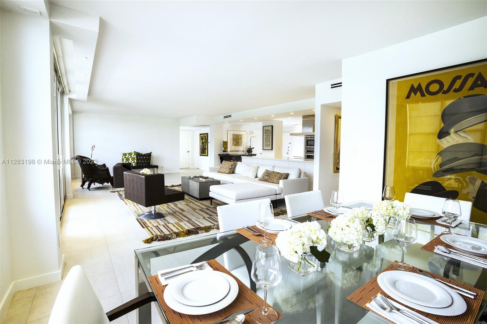 Direct Intracoastal water views from every room welcome you in this impeccably remodeled waterfront residence. Open floor plan integrates spacious kitchen for entertaining & breathtaking sunsets. Oversized 2,120 sq.ft combined unit originally 3 bedrooms, 3.5 baths. Owner converted 3rd bedroom into formal dining area, which can easily revert to 3rd bedroom ensuite. Steps from the ocean, this residence is flawless. Contemporary kitchen, Thermador appliances, wine cooler, a chef's dream. Custom cabinetry, spacious countertops and Smart Integrated Home technology. Impeccable Master Suite with waterfront terrace, spa inspired Master Bath, dual sinks, wall-mounted handheld spray, and large rain showers. Second bedroom with large windows affords the best water views. Pet friendly.