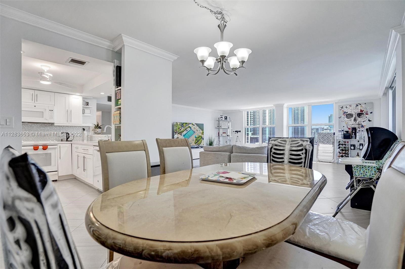 BEAUTIFUL RENOVATED CORNER UNIT 2 BEDROOM 2 BATHROOM WITH SPECTACULAR, MILLION DOLLAR VIEWS FACING THE INERCOASTAL. THE PROPERTY IS LOCATED DIRECTLY ACCROSS FROM THE BEACH. THE DISTRIBUTION OF THE 1553 SQFT UNIT IS INVITING WITH LOTS OF CLOSET SPACE. THE NEWLEY TILE FLOORS BRINGS THE RIGHT TONE COLOR TO THE UNIT. THE KITCHEN HAS A PRETTY QUARTZ COUNTER WITH THE COMBO BACKSPLASH. PLENTY OF CLOSET AND DRAWS FOR KITCHEN USE. COMPLETE FINSHED BASBOARDS AND CEILING MOLDINGS THROUGHOUT. BUILDING OFFERS FULL RESORT AMENTIES AND VALET PARKING, 24HR SECURITY, CAMERAS, CABLE, COURTESY SHUTTLE BUS TO GO TO THE MALL AND STORES.