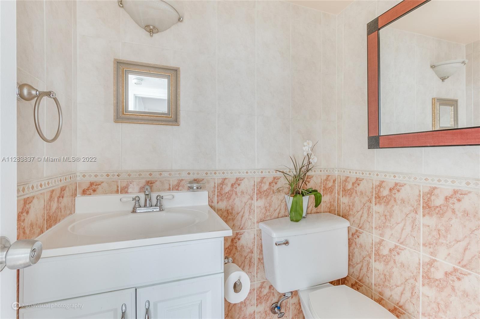 Bright, corner 1 bedroom, 1.5 bathroom with tile flooring throughout. New kitchen, new AC. Spacious floor plan with 920 sq ft. Extra large walk-in closet. Large balcony with views of the Miami Beach skyline and the bay. Resort-style living at this full service building with 24-hour concierge, bay front pool deck, a stunning open air lobby, gym, and more. Assigned covered parking, internet and cable included. Boat slips available through the association. Rentals allowed (2 times per year). Dog ok up to 26 pounds.