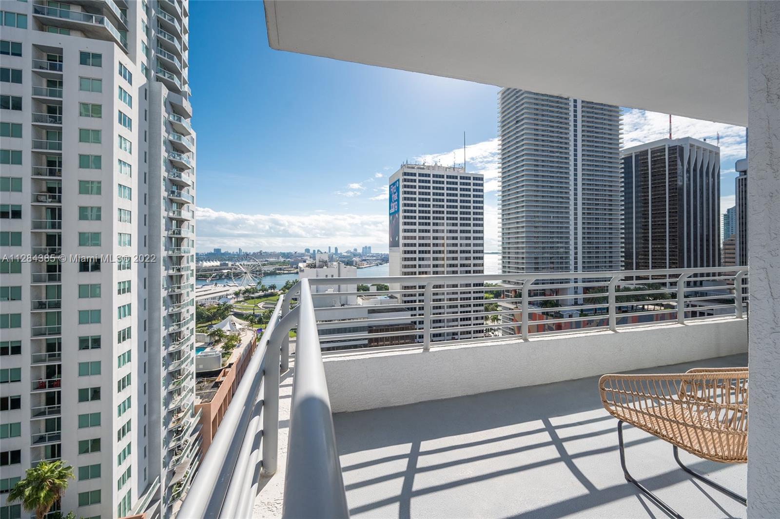 Corner unit on the 20th floor, 2 bedrooms/ 2 full bathrooms / split floor plan. Spectacular bay and city views from an oversized wrap around balcony. The building offers a luxurious lifestyle, 24hrs front desk, 2 pools, social room and a rooftop gym. Located in the heart of Downtown. Walking distance to Whole Foods, Brickell, Bay Front Park and American Airlines Arena. Apartment can be sold furnished or unfurnished.