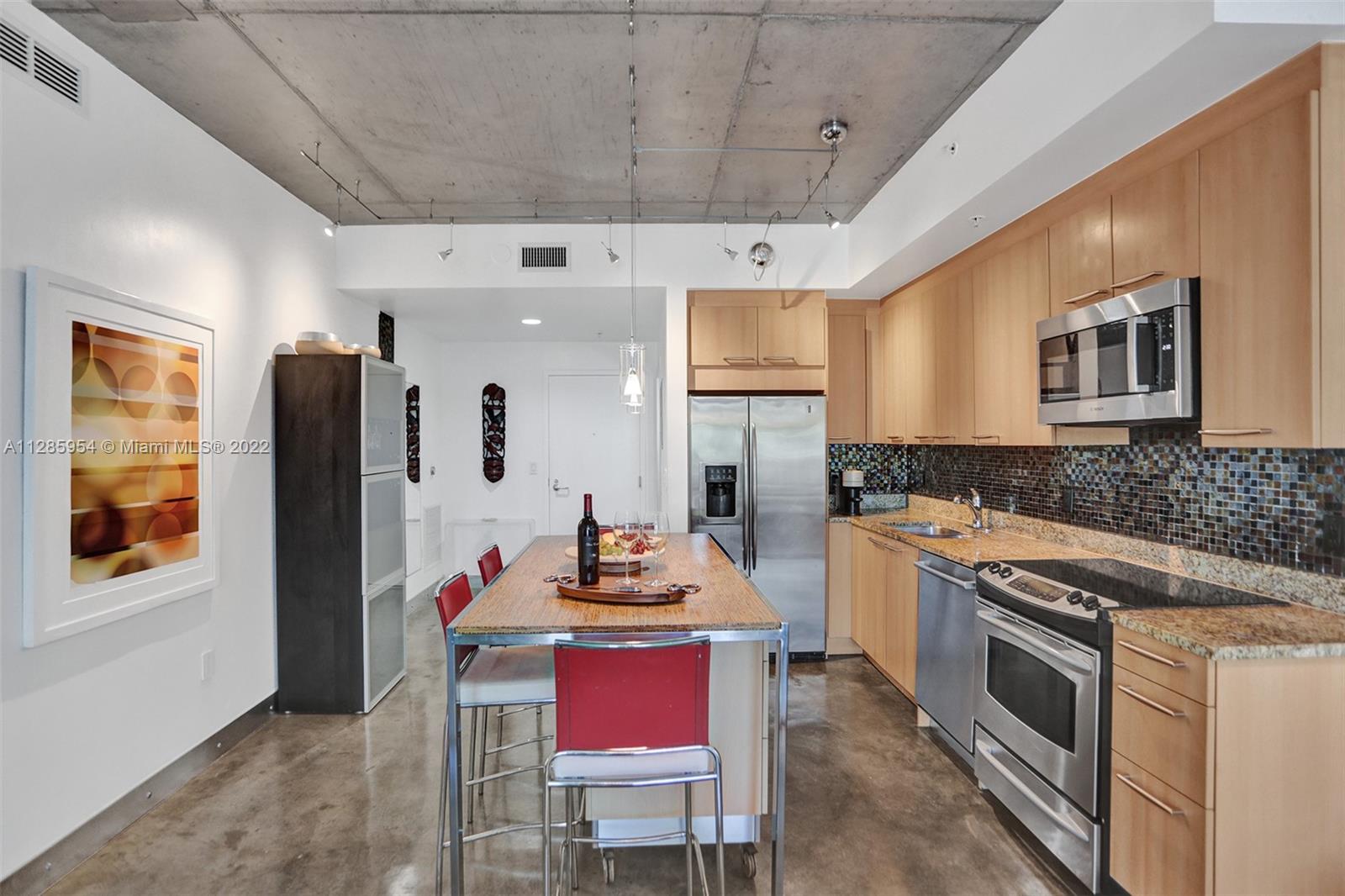 LUXURIOUS LOFT TYPE APARTMENT WITH 700 SQ FT OF OPEN TERRACE. ENJOY THE INDOOR AND OUTDOOR IN MIAMI BEACH WITHIN WALKING DISTANCE TO CONVENTION CENTER, LINCOLN ROAD, HOUSES OF WORSHIP, GREAT RESTAURANTS AND SHOPPING. ONE BEDROOM, 1.5 BATHS. 9.5 FT CEILINGS, CUSTOM ITALIAN FROSTED GLASS DOORS, CUSTOM ITALIAN CLOSETS AND OFFICE ALL BY GLOTTMAN DESIGN. MASTER BATH REMODELED 2016, BUILT-IN IRONING BOARD W/IRON PLUG & LIGHT. WASHER AND DRYER INSIDE UNIT, CENTRAL A/C REPLACED 2014, SEALED CONCRETE FLOOR & CEILING. STAINLESS STEEL APPLIANCES WITH GRANITE COUNTERTOPS AND POGGENPOHL CABINETS. AMPLE PARKING SPACE CLOSE TO ENTRANCE TO ELEVATOR, WITH EXTRA ROOM ON ALL SIDES. SELLING UNIT UNFURNISHED BUT SOME PIECES ARE NEGOTIABLE. $73.09 EXTRA CONDO FEE PER MONTH ENDING DEC 2022. EASY TO SHOW.