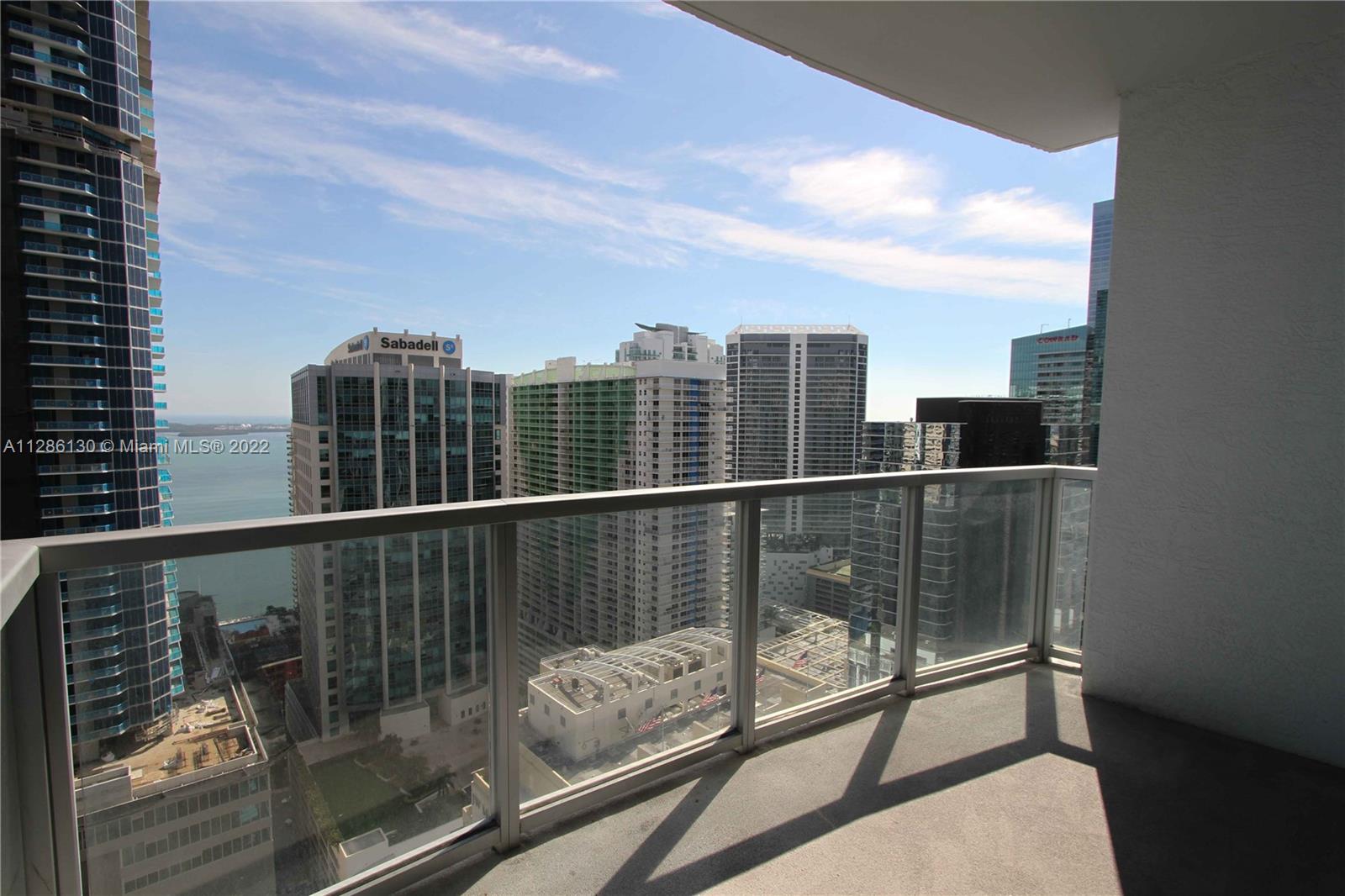Live in the heart of Miami! If location is what you want, this is your place! Spectacular 963 sq ft space on 34th floor overlooking Brickell Avenue, Biscayne Bay and the Port of Miami. Huge balcony. Washer/dryer in unit. Fantastic pool deck overlooking the city located on the 12 floor. Spa/sauna/showers; billiard, cigar, wine, virtual golf rooms. Yoga, cardio & weight rooms. 1 assigned parking space plus valet. Pet friendly up to 25 lbs for 1 dog, 50 lbs. for 2. VERY WALKABLE NEIGHBORHOOD, WalkScore is 99. Transit Score is 96. Walk to MetroMover (< 1 blk), dining, cafes, bistros and entertainment. Take MetroMover/MetroRail to: University of Miami, Brickell City Center, Hospital District, Arts and Entertainment District, Civic center, Miami International Airport, TriRail Service and more.