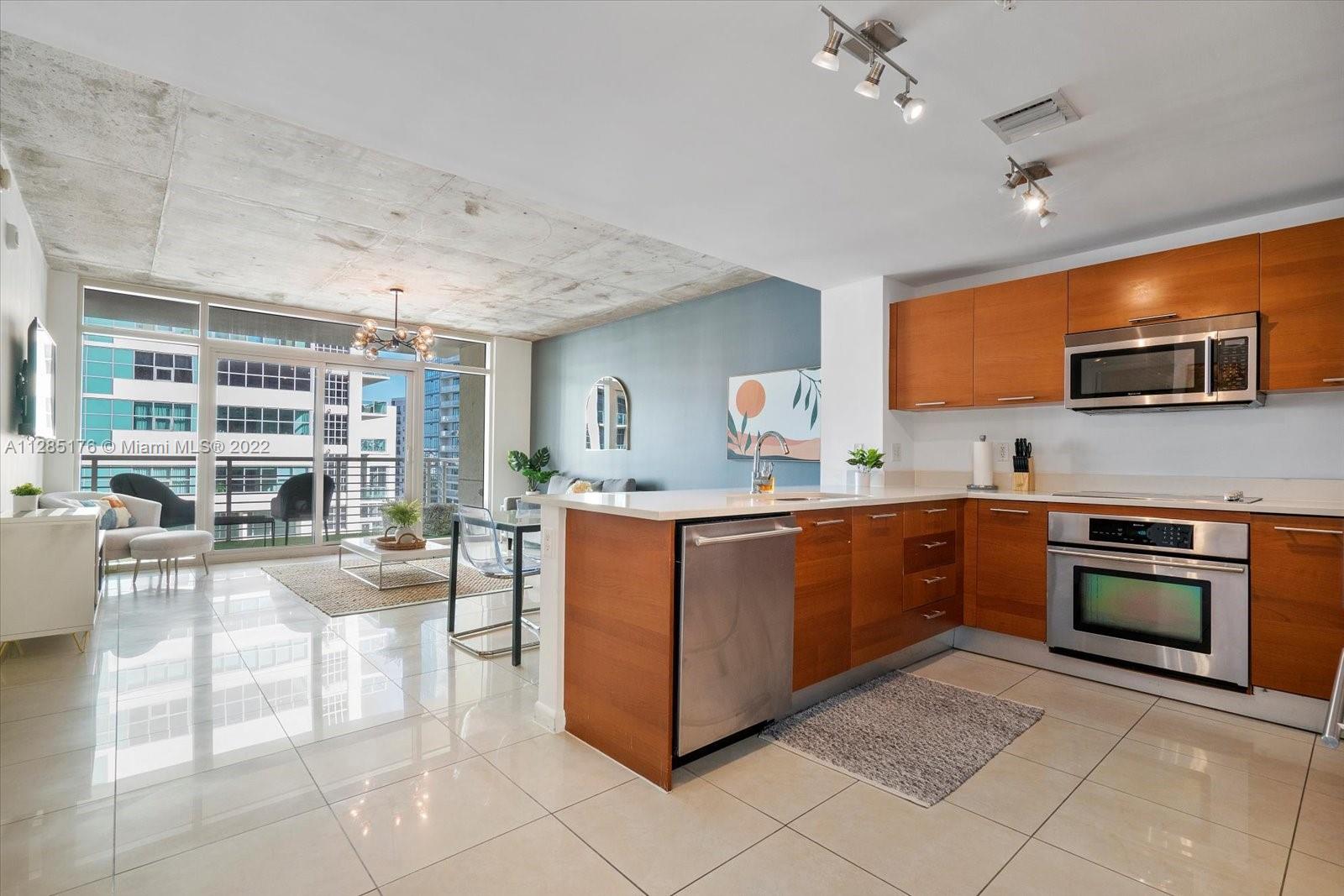 Looking for a hot deal in a high interest rate environment? Come see this spectacular 1 bed/1 bath apartment with amazing city views, balcony, high ceilings, lots of space and light. Unit has Italian kitchen cabinetry, stainless steel appliances, full size washer and dryer inside and more! This unit is tastefully updated and is GREAT FOR INVESTORS. Building approves short-term rentals. Apartment is currently generating 10% CAP rate. Midblock is a pet friendly building located in the center of Midtown, and features a large rooftop pool, large outdoor entertaining area with a built-in grill, green area, gym, concierge and more! Very close to Wynwood, Design District, the beach and Miami airport.
