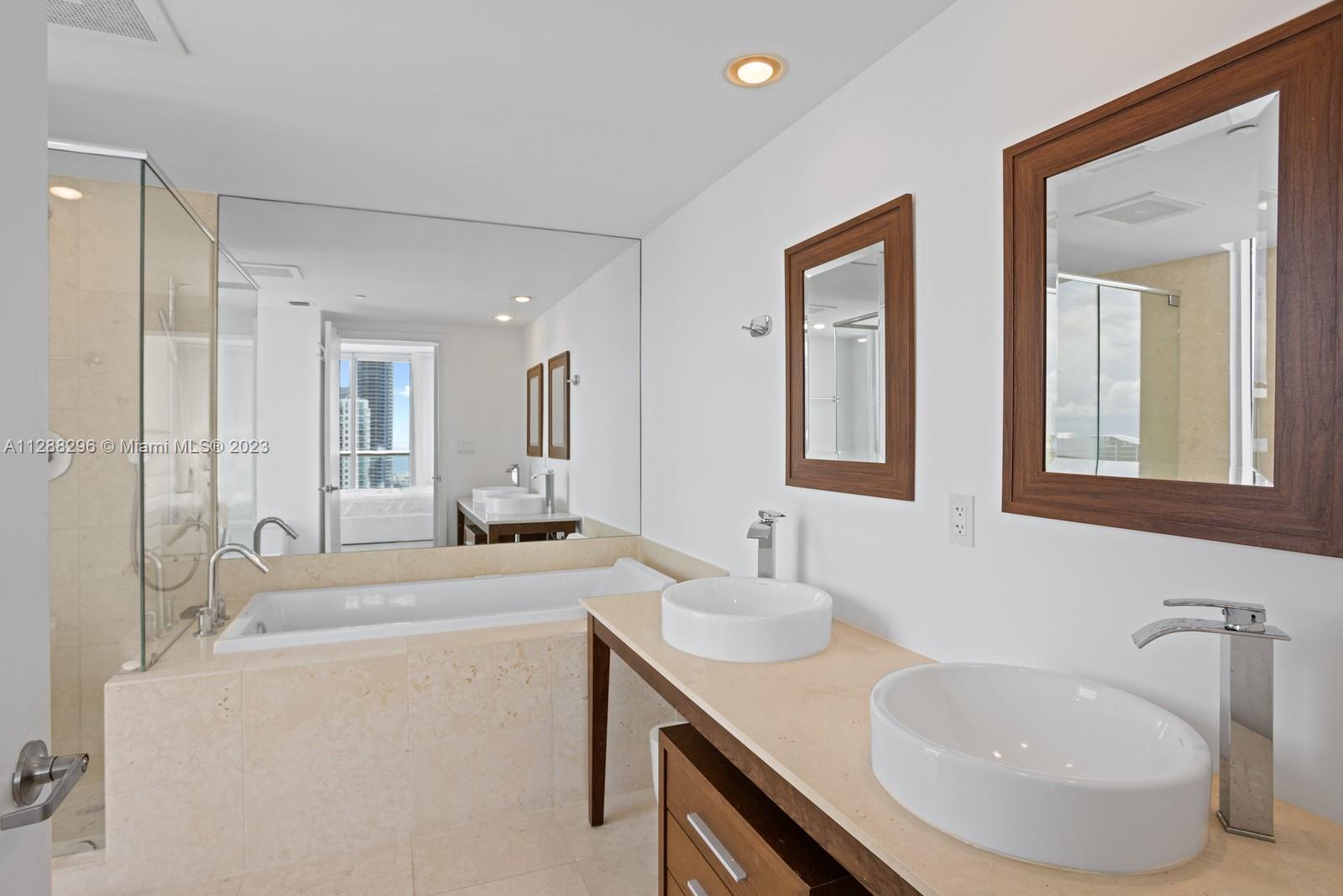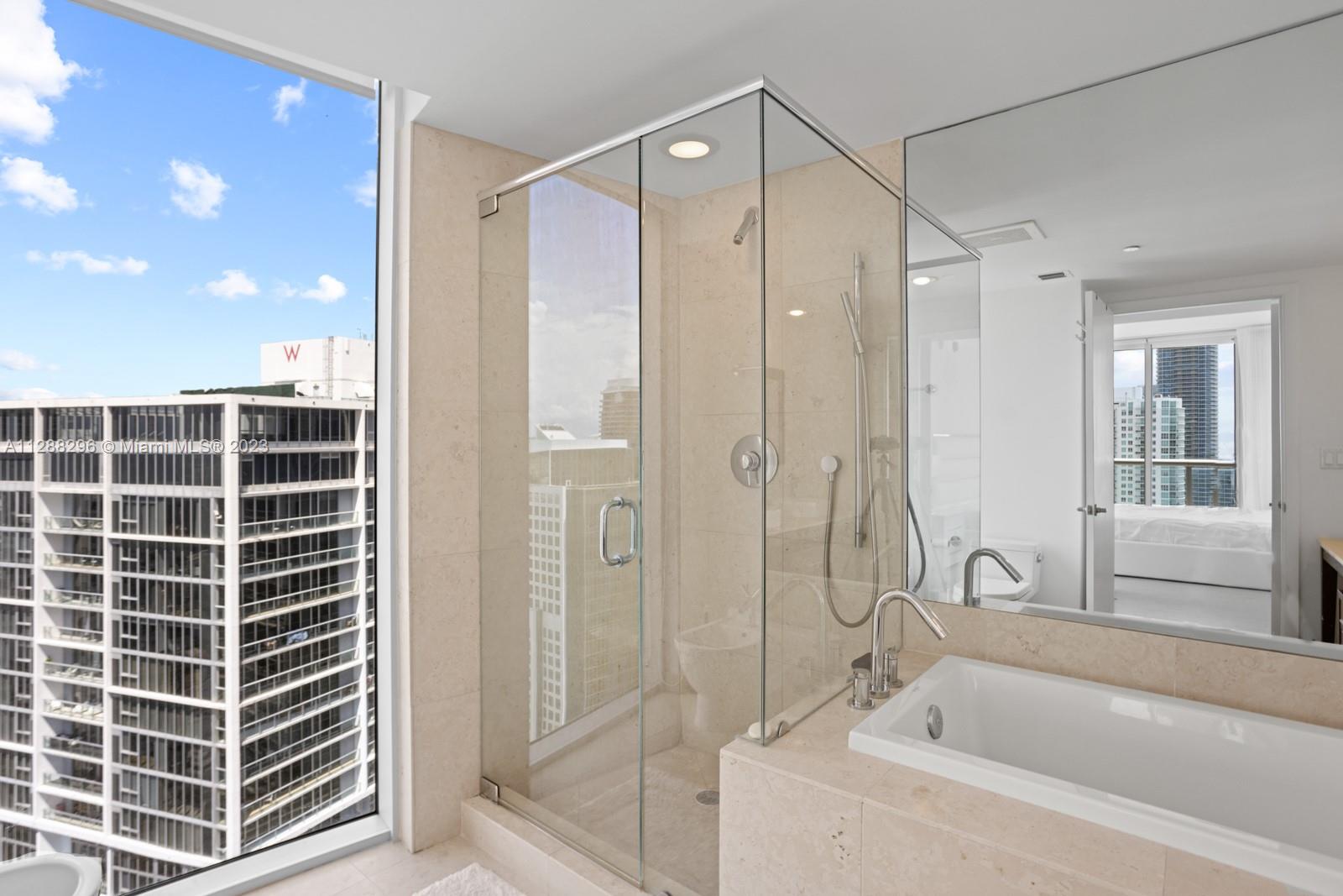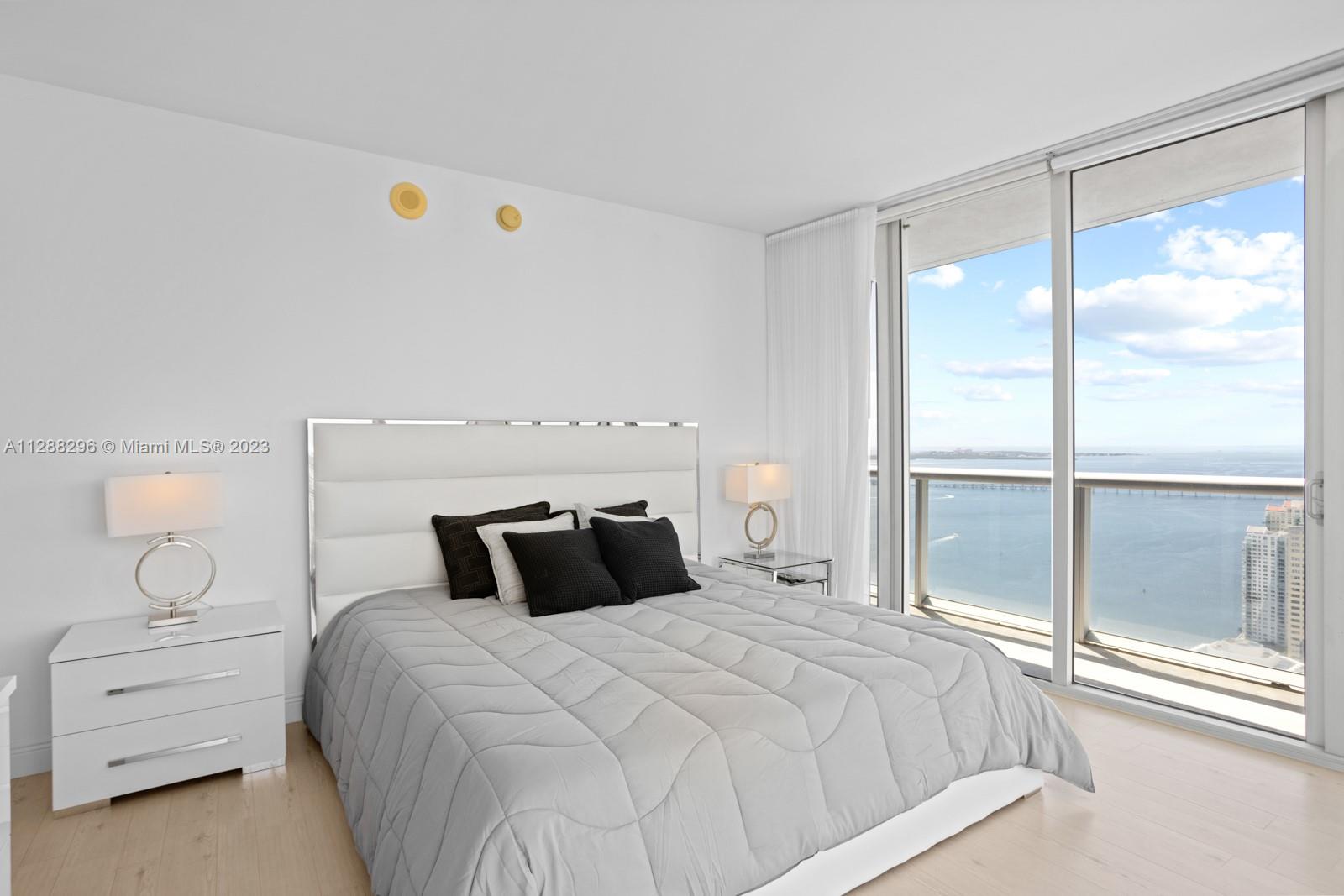 Gorgeous Water and City View a 2 bedrooms & 2 bathrooms corner unit. Amazing views from this 2 bed 2 bath corner unit. Floor to ceiling direct panoramic views of Biscayne Bay and Ocean. State of the art Italian kitchen cabinetry and counter-tops with Sub-Zero Refrigerator. Porcelain floor and 1st class finishes in the whole unit. Elite Spa and fitness center . Unique 300 FT long pool with infinity edge olympic sized pool, jacuzzi, super movie theatre, 4 on site restaurants, dog park and much more! Walking. This is tower II, so you can rent it for a minimum of 6 months!