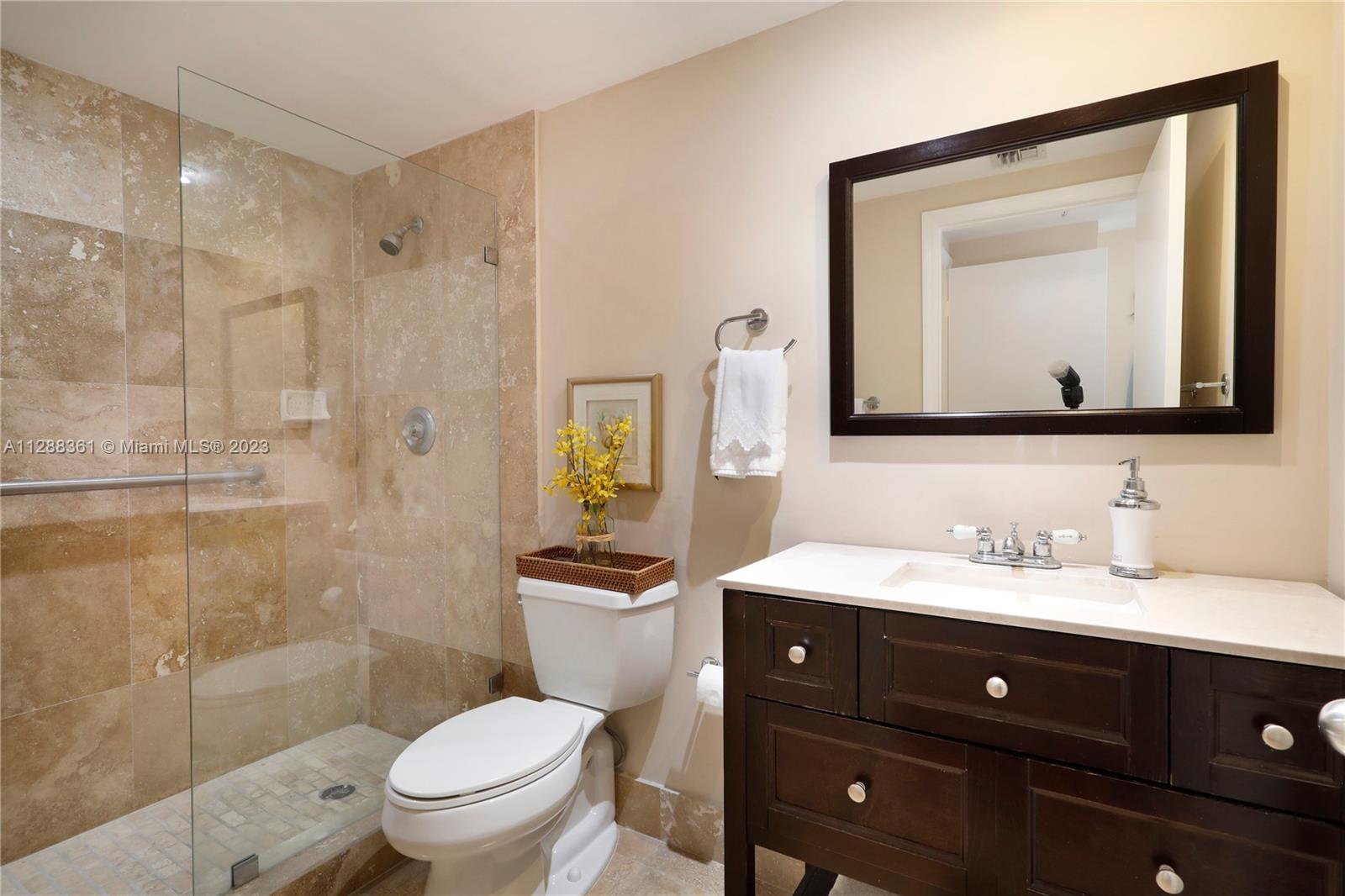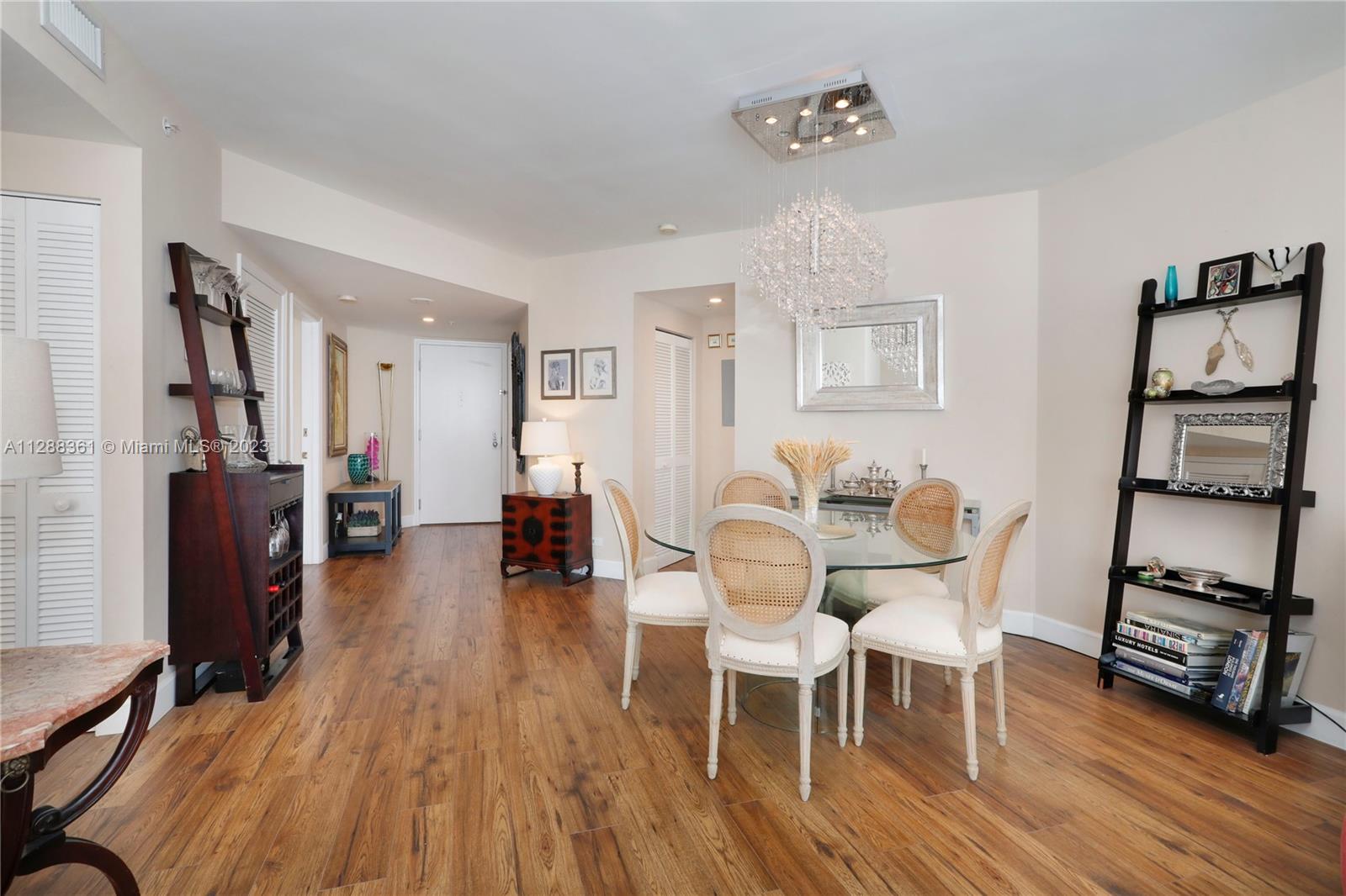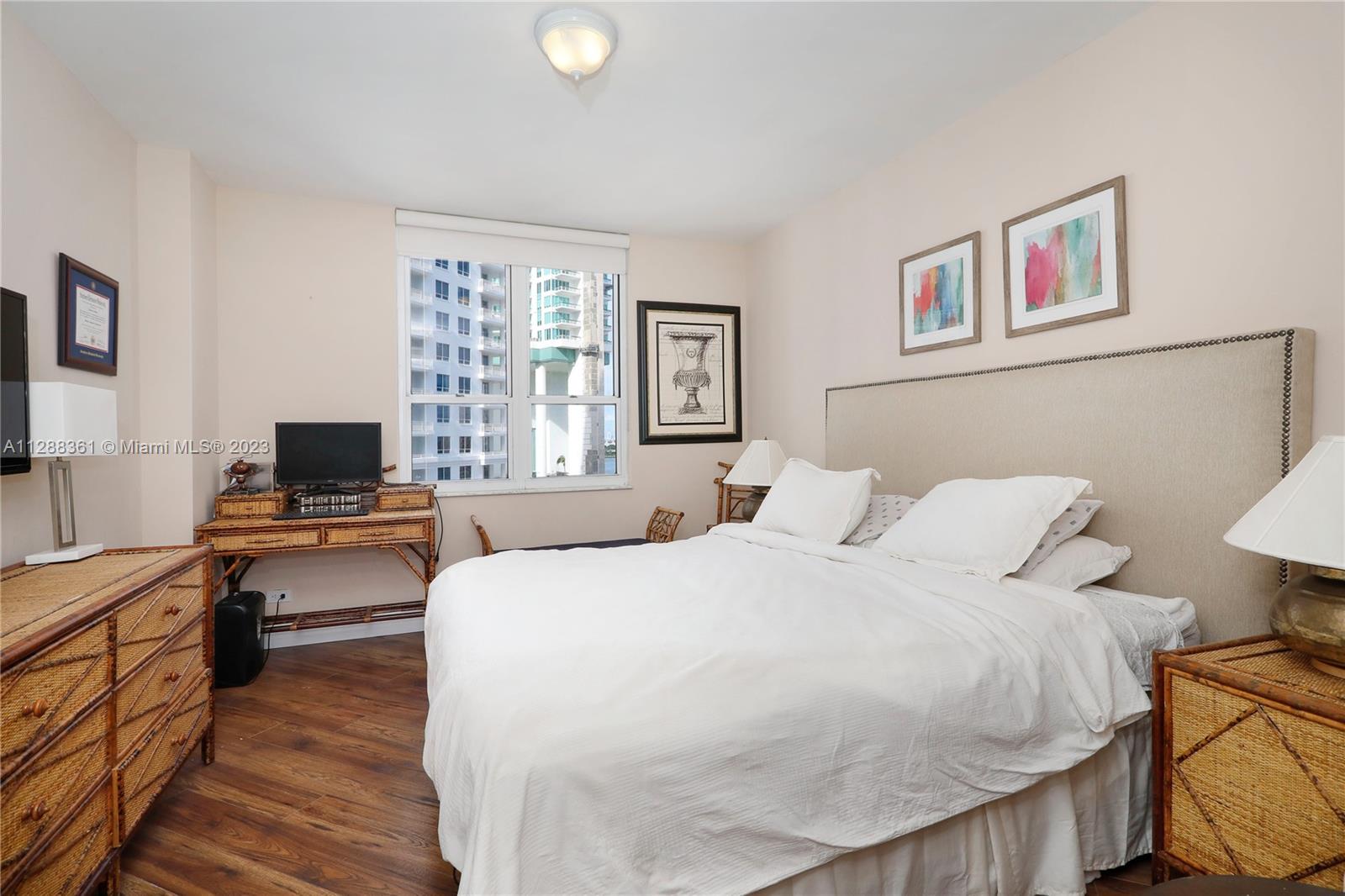 Absolutely lovely 2 bedroom, 2.5 bathroom unit in Courvoisier Courts, a full-service building on beautiful Brickell Key. The spacious floor plan includes a large, open living and dining room that steps out to the deep balcony with wonderful water and city views! The bright, white kitchen receives abundant natural light and features a charming eat-in area. The primary bedroom includes a renovated bathroom and walk-in closet, and the spacious secondary bedroom has 2 closets and its own updated bathroom! Other features include in-unit washer and dryer, 1 parking space, and upgraded flooring. Enjoy the building’s waterfront pool, large gym, sports courts, billiards room, and much more right in the heart of Miami!