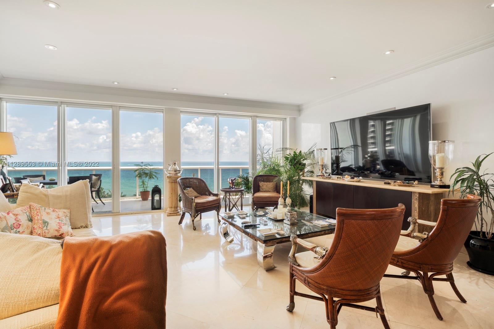 Breathtaking views from this completely remodeled 2-bedroom residence. Enjoy unobstructed direct ocean and coastline views from the privacy of your balcony. Mia Cucina upgraded kitchen with Italian stone countertop and Subzero/wolf appliances. Upgraded bathrooms. Building offers a restaurant, tennis court, club room, gym, beach & pool service. Across from Bal Harbour mall and within walking distance to Bay Harbour commercial district.