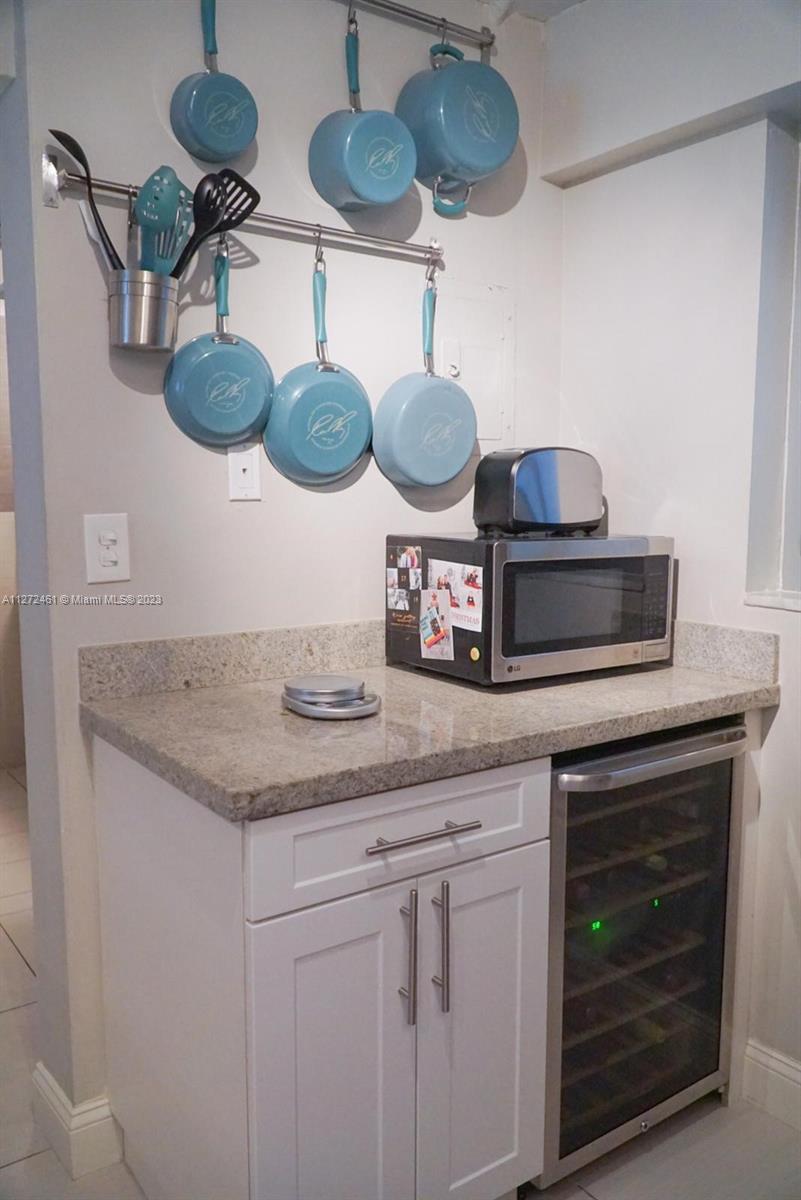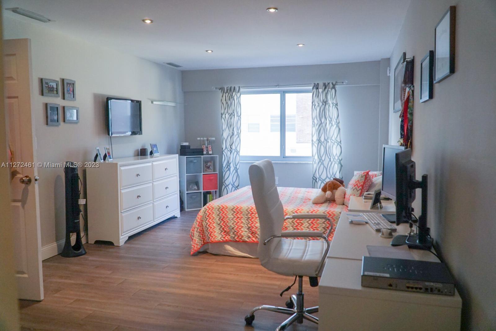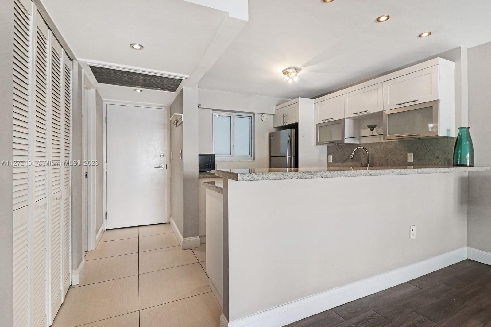 Move right into completely renovated South Beach condo: work from a large bedroom (+ a sitting area/office space) with 2 closets & en suite bathroom. Guests use 1/2 bath across from open kitchen equipped with tankless water heater; stainless steel appliances, a wine fridge where you can grab a bottle to enjoy at your eat-in counter, built in bar or on the ample balcony. Impact balcony door & windows guarantee natural light, security & quiet, even right next to the Lincoln Road; 24-hr Walgreens; Whole Foods; Target; many retail, fun & food establishments; park; spaces for activity & relaxation, including the beach. Don’t want ocean? Enjoy the building pool. Park your car in gated & assigned garage space or put bike in the storage. Secure building, lobby, laundry on each floor & 2022 roof.