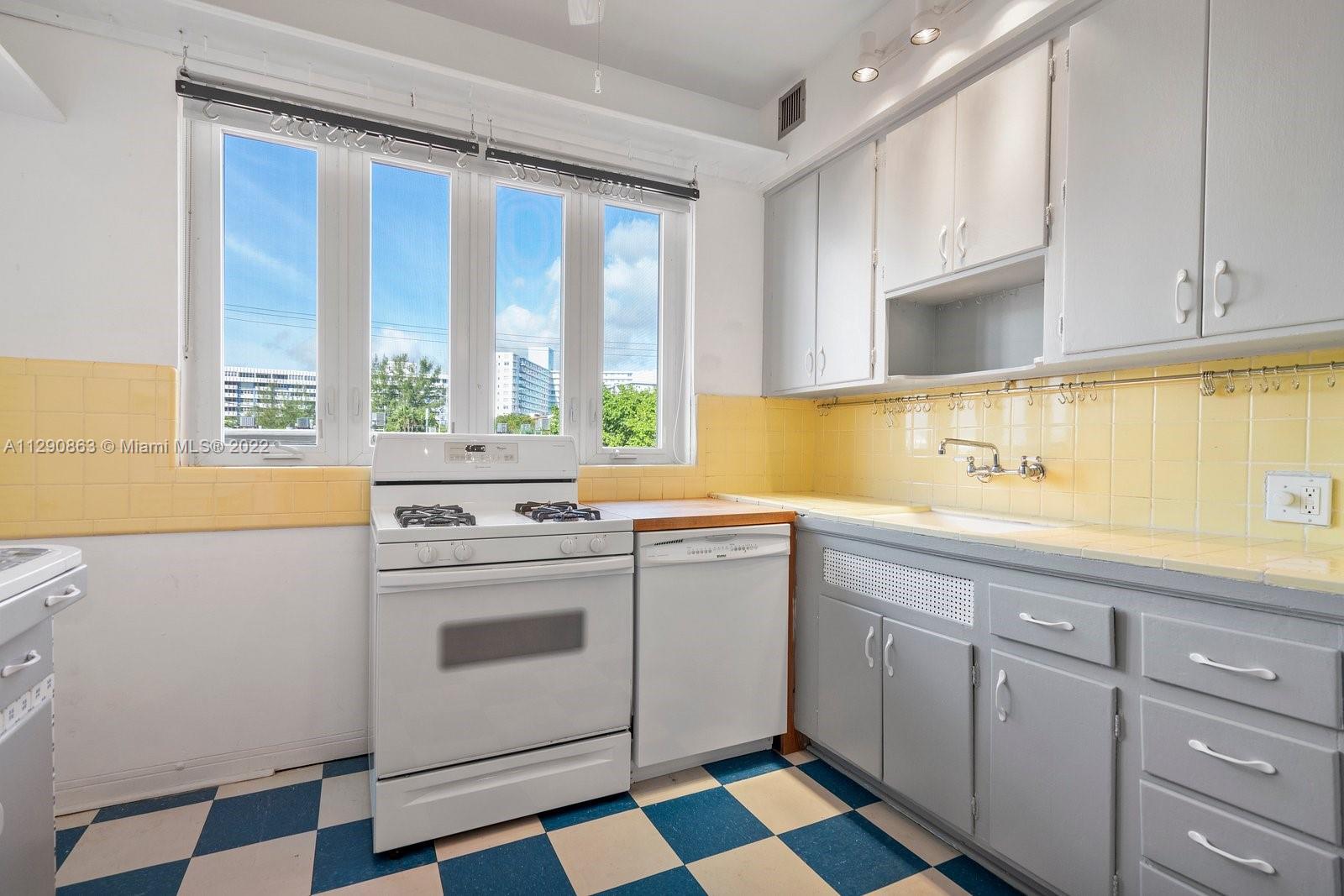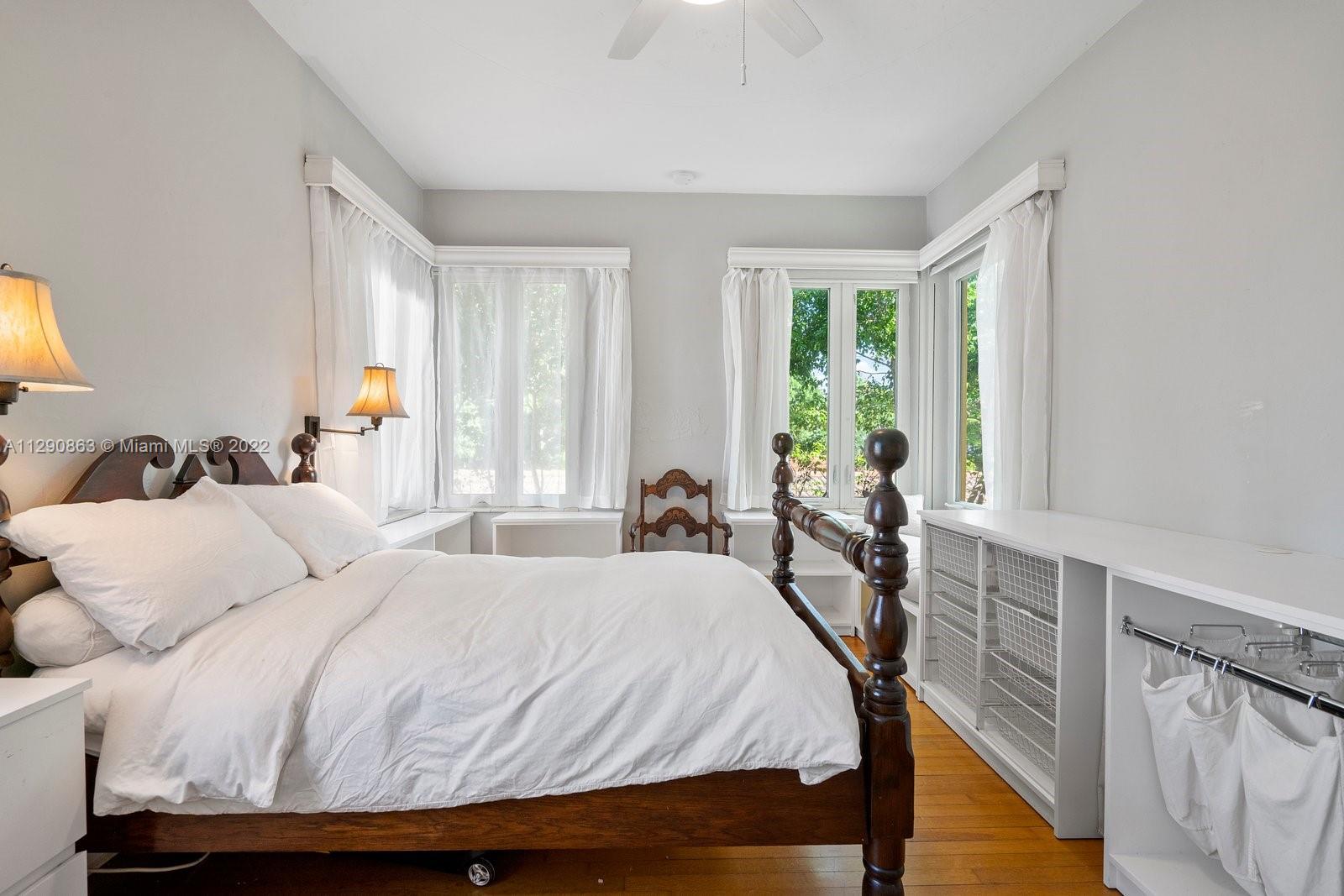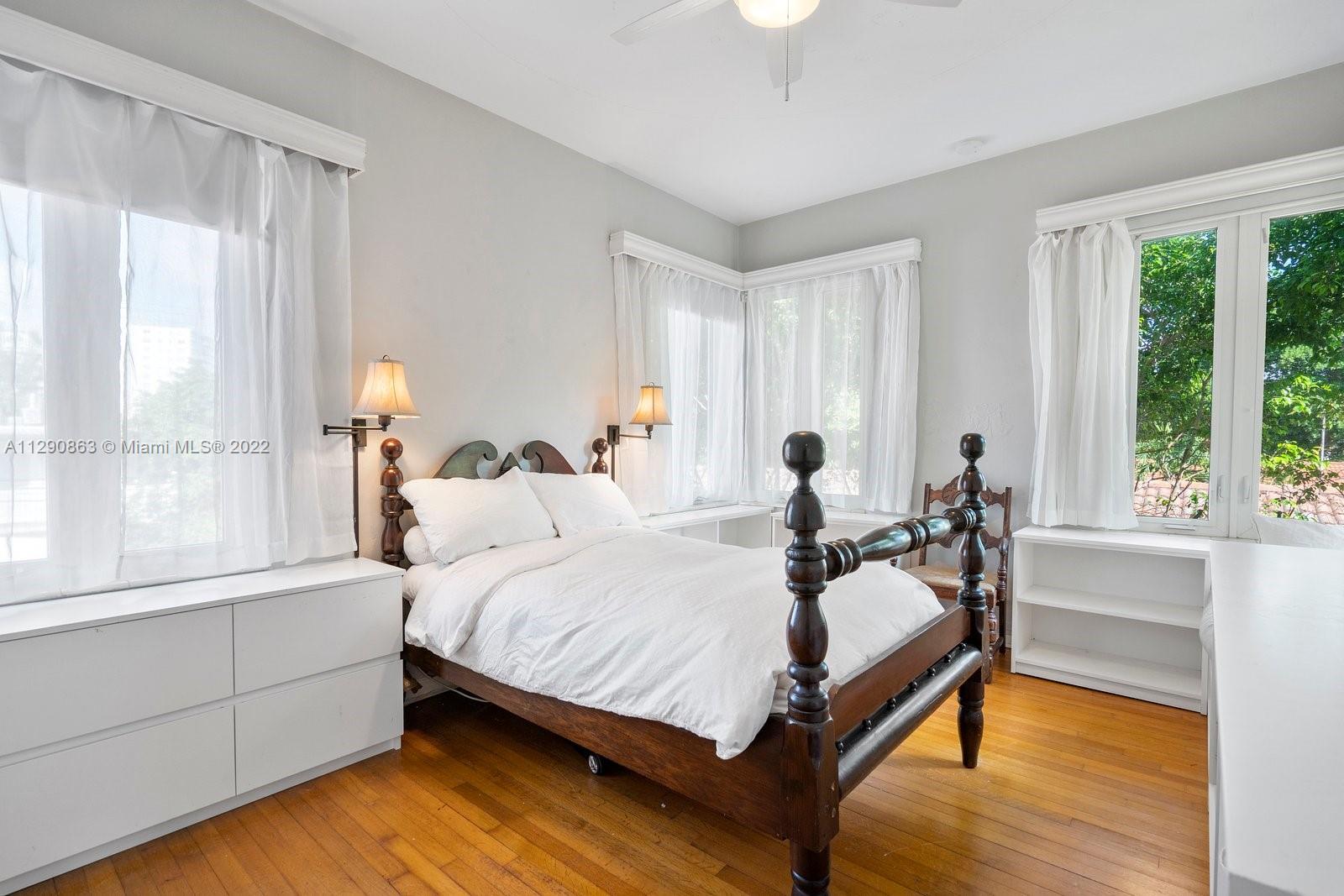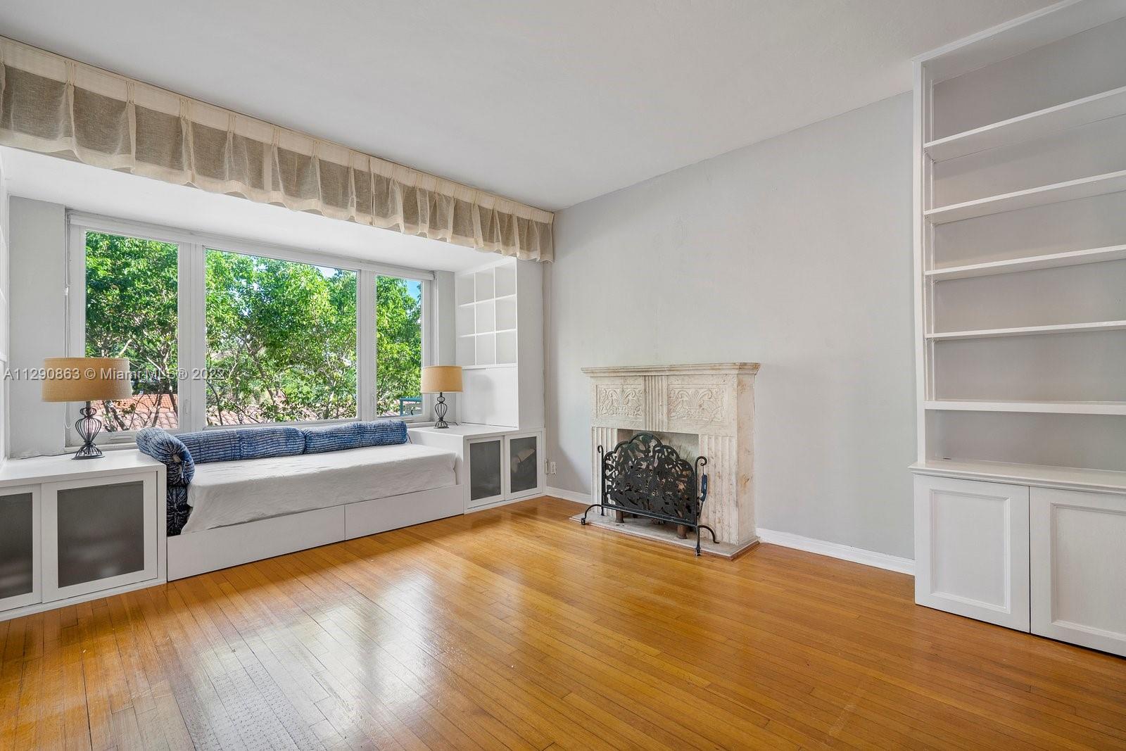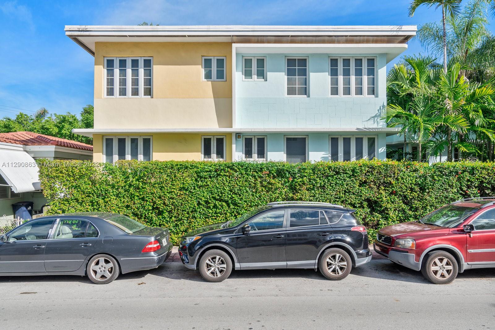 This mid-century deco building set back in lush, private garden was built by H.L Glasser. This charming spacious unit has treehouse views facing north and east, lots of natural light, 9 ft ceilings, red oak floors, gas fireplace & stove, 2 window side daybeds with one that pulls out into a queen bed, custom storage, built in bookcases & hurricane impact windows. This historic Art Deco building has 6 units and is well maintained by long term owners. Relax in the flourishing garden with BBQ-area. Building has a shared W/D plus W/D hook-up in the unit. A quiet neighborhood with just a short walk to Target, Publix and Whole Foods, Baptist Hospital’s Urgent Care Center and Archetectoninica’s new Canopy Park, 8 minute walk to the Beach & 15 minute walk to Lincoln Road.