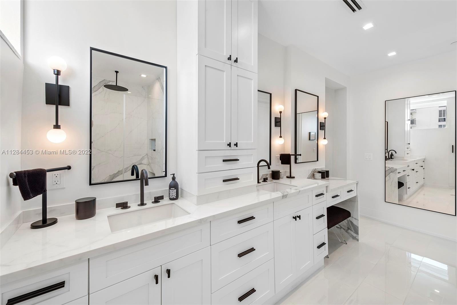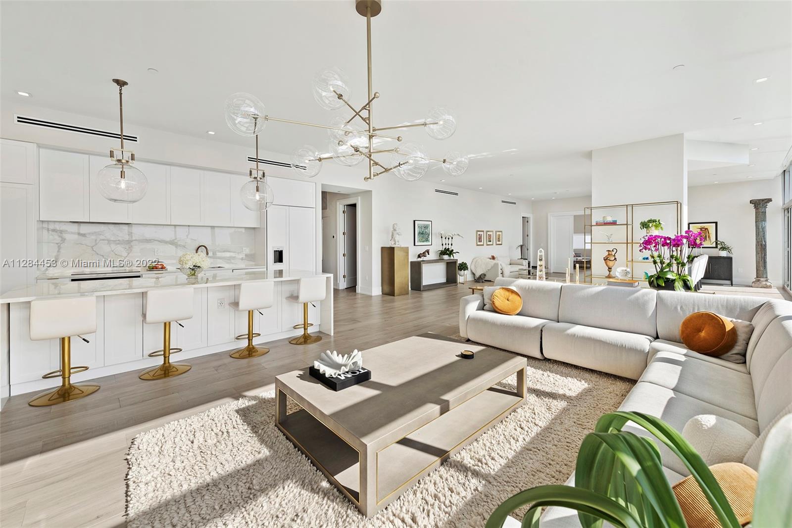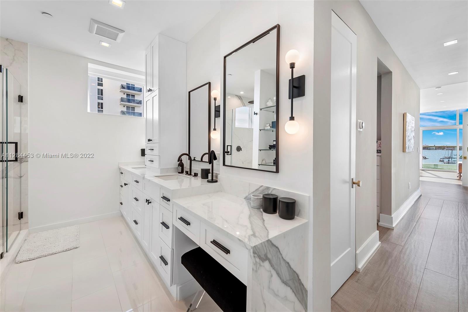 Rarely available, 4/3.5 corner, double-unit of 3,721 sq ft with amazing panoramic waterfront views in the idyllic islands of North Bay Village. Unit boasts open floor plan, with floor-to-ceiling and wall-to-wall impact glass windows and doors leading to an additional 350 sq ft of balcony overlooking the water. Impeccably and elegantly designed; no expense was spared. Features: large bedrooms (three en-suite) solid interior 8-ft doors, Miele and Wolf appliances, 10' kitchen island and high end lighting throughout. Building amenities include 24-hour security entrance, gated parking, private waterfront boardwalk with BBQ area, lush rooftop heated pool, and well-equipped fitness center. Four parking spaces, big dogs welcome. This peaceful waterfront home enjoys amazing sunsets.
