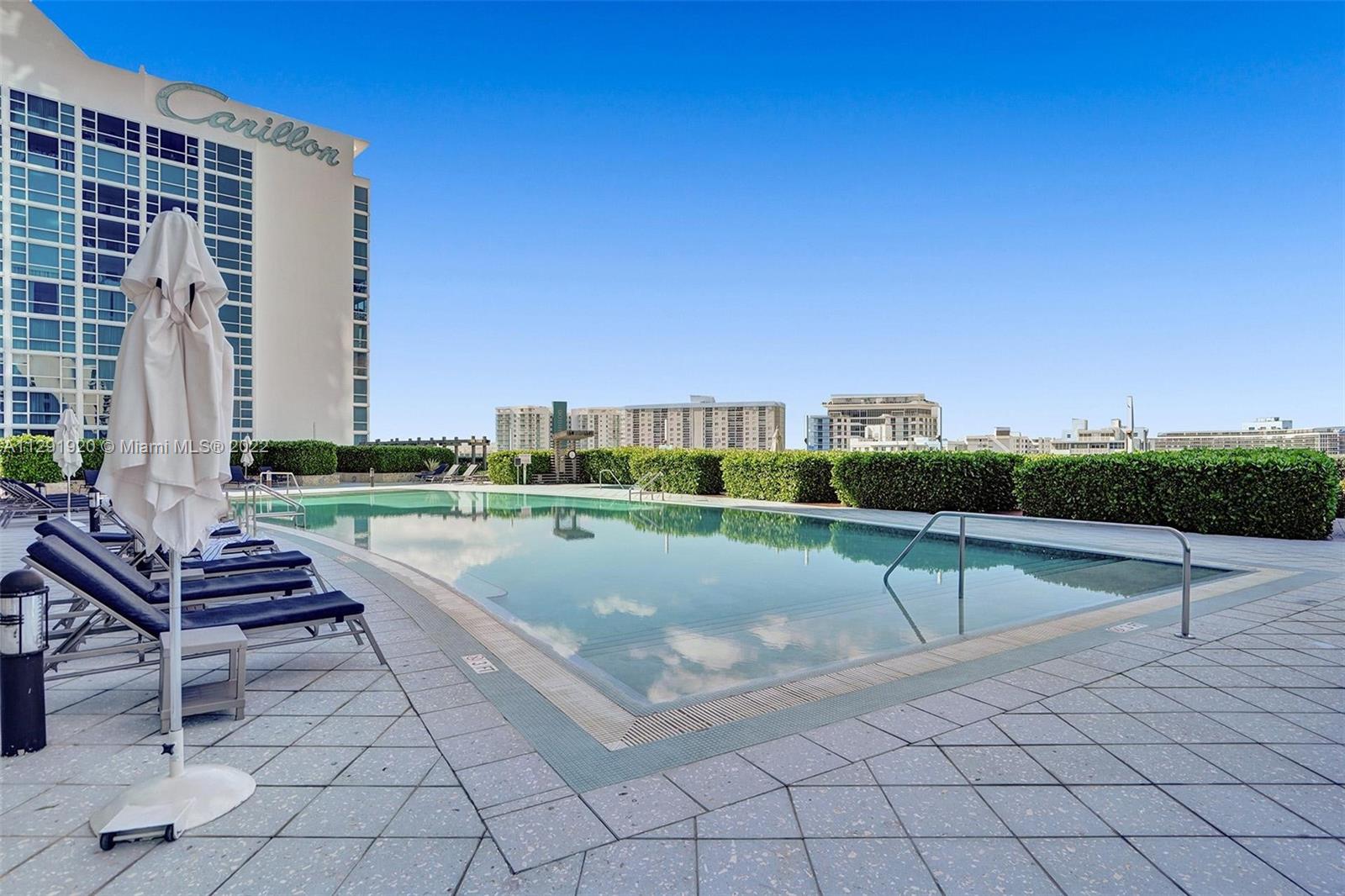 Luxury oceanfront living at the Carillon Wellness resort-North Tower. This 2bed/2baths unit is offered "Turn Key". Beautiful mid-century furniture compliments the modern light filled interiors with porcelain flrs/European kitchen cabinets/Quartz countertops/spa like baths/customs closets/ and your own private outdoor terrace for al fresco dining/lounging! Access west pool from your unit-only one like this. Rents easily. Don't miss out on this excellent opportunity to enjoy unparalleled amenities with a 70,000 sq.ft health/wellness center offering a multitude of classes. Concierge,valet parking,security offered 24/7.