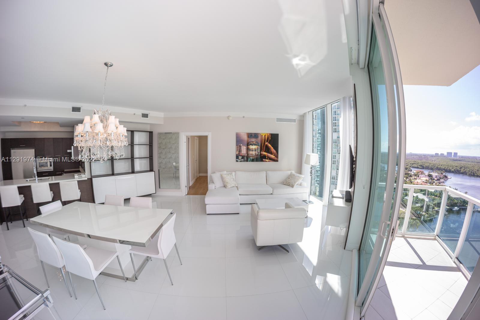 Elegant Tower Suite - 3Bdr/2Bth spacious split floor plan with beautiful views on the highest floor of Tower 3. Professionally decorated and fully furnished. Countless upgrades throughout including custom cabinetry, lighting, flooring, etc. This amazing unit was remodeled in 2021. All new doors and shower doors. Top floor 10F ceilings. Parking: THE UNIT COMES WITH 2 ASSIGNED PARKINGS plus 1 Valet parking. Furniture is negotiable. 5-Star Amenities including complimentary shuttle to and from private Beach Club in Sunny Isles Beach. Great location in Sunny Isles, shops, cafes & restaurants on ground level, That's a MUST SEE!!