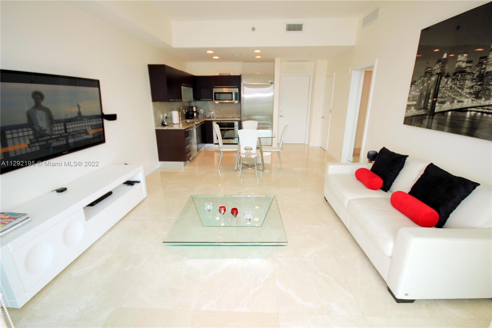 AMAZING OPPORTUNITY TO PURCHASE A HIGH FLOOR UNIT WITH GREAT WATER VIEWS. 10 FEET HIGH CEILINGS GIVE A GREAT VOLUME. MARBLE FLOOR THROUGHOUT. NICELY FURNISHED. TURN-KEY FURNITURE INCLUDED. OPEN KITCHEN WITH ITALIAN CABINETS. LARGE BALCONY. LARGE BEDROOM. FLEXIBLE RENTAL POLICY WITH 30 DAYS MINIMUM PER CONDO DOCS. CURRENTLY RENTED TO A GREAT TENANT FOR $3,200 UNTIL JANUARY 2023. LUXURY BUILDING CENTRALLY LOCATED. 5 MINUTES WALK TO BRICKELL CITY CENTER AND MARY BRICKELL VILLAGE. 2 INFINITY HEATED POOLS. JACCUZZI. BARBECUE AREA. 24/7 UPSCALE MODERN GYM. BUSINESS CENTER. CHILDREN PLAYROOM. CLUB ROOM FOR EVENTS. 24/7 FRONTDESK, SECURITY AND VALET PARKING. 1 ASSIGNED PARKING SPACE. THE BUILDING IS VERY WELL MANAGED AND HAS AN EXCELLENT REPUTATION, WELL DESERVED.
